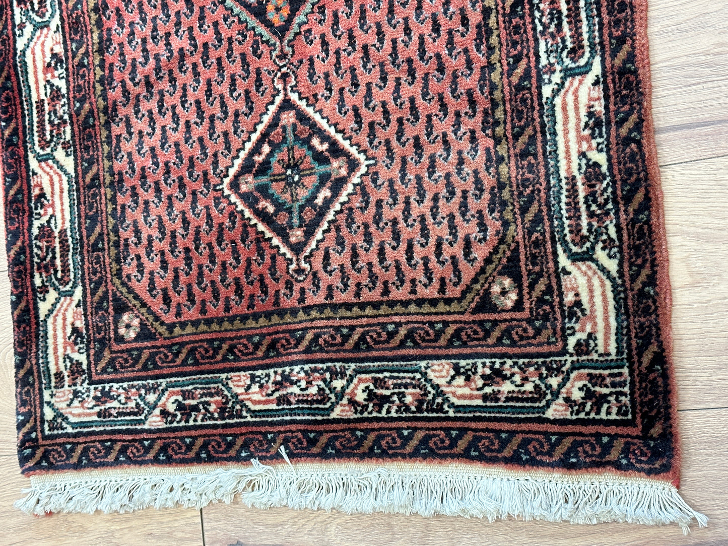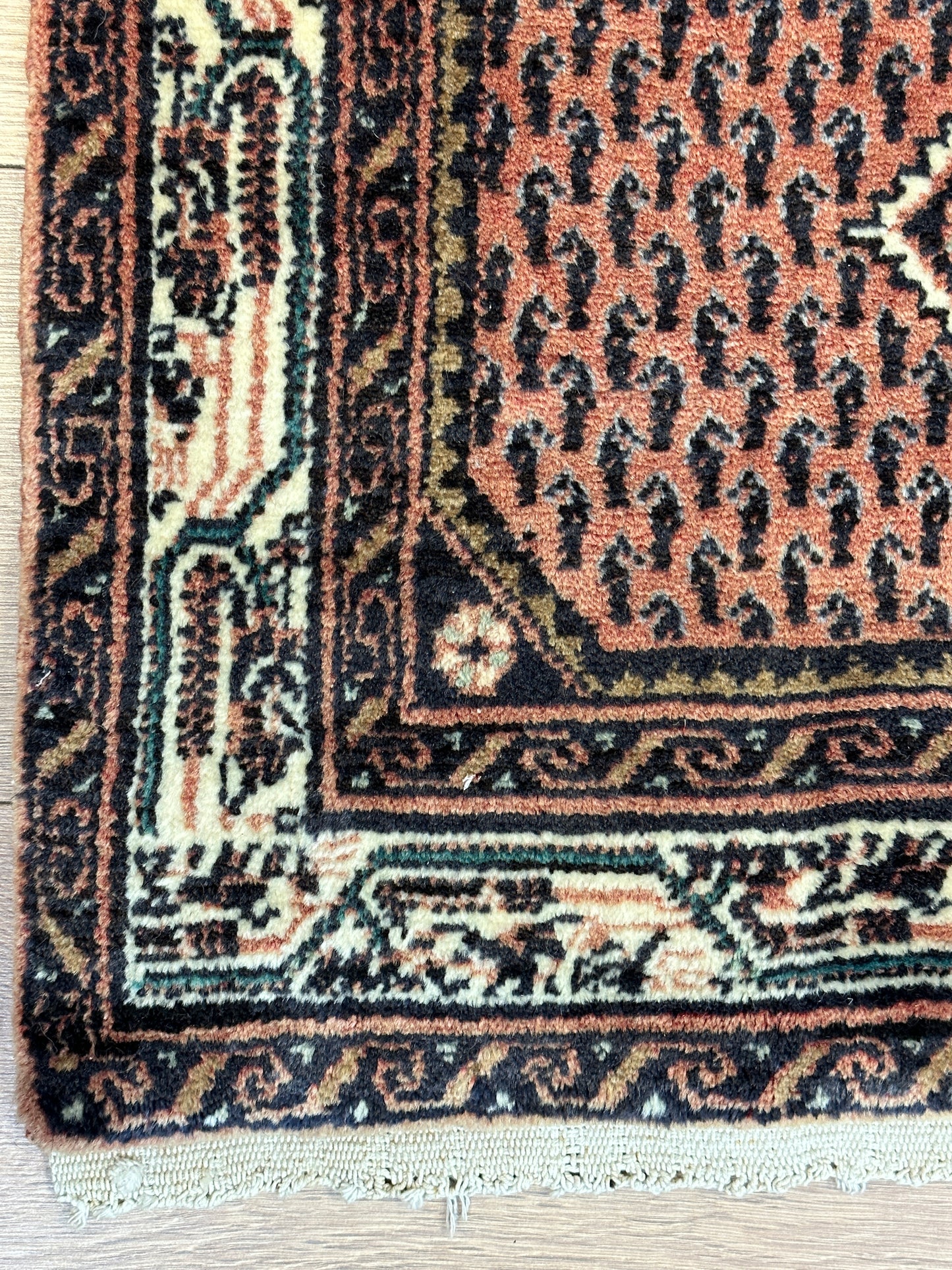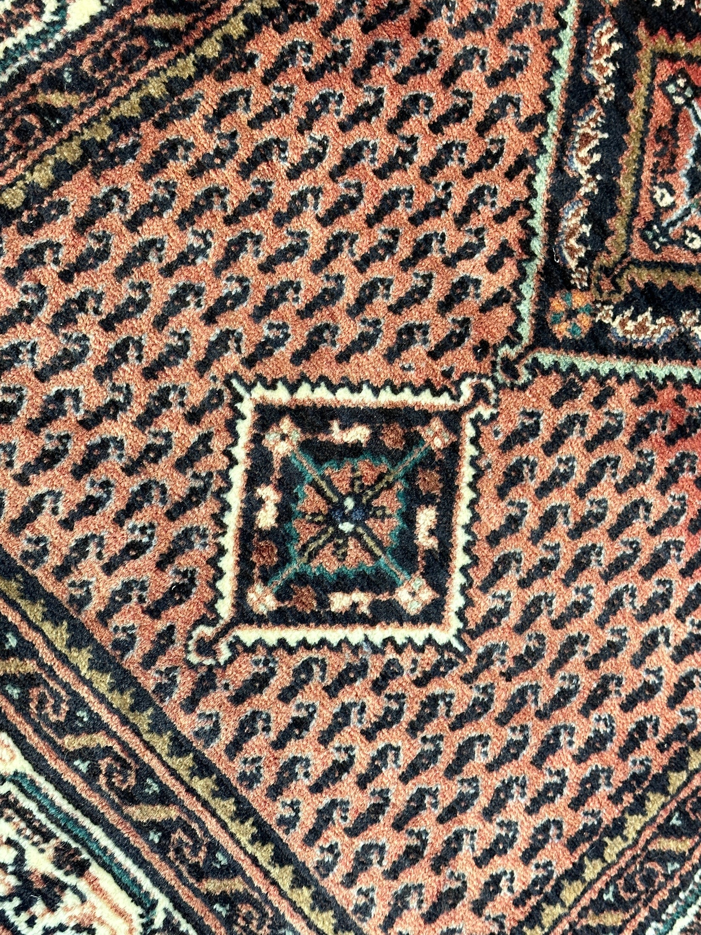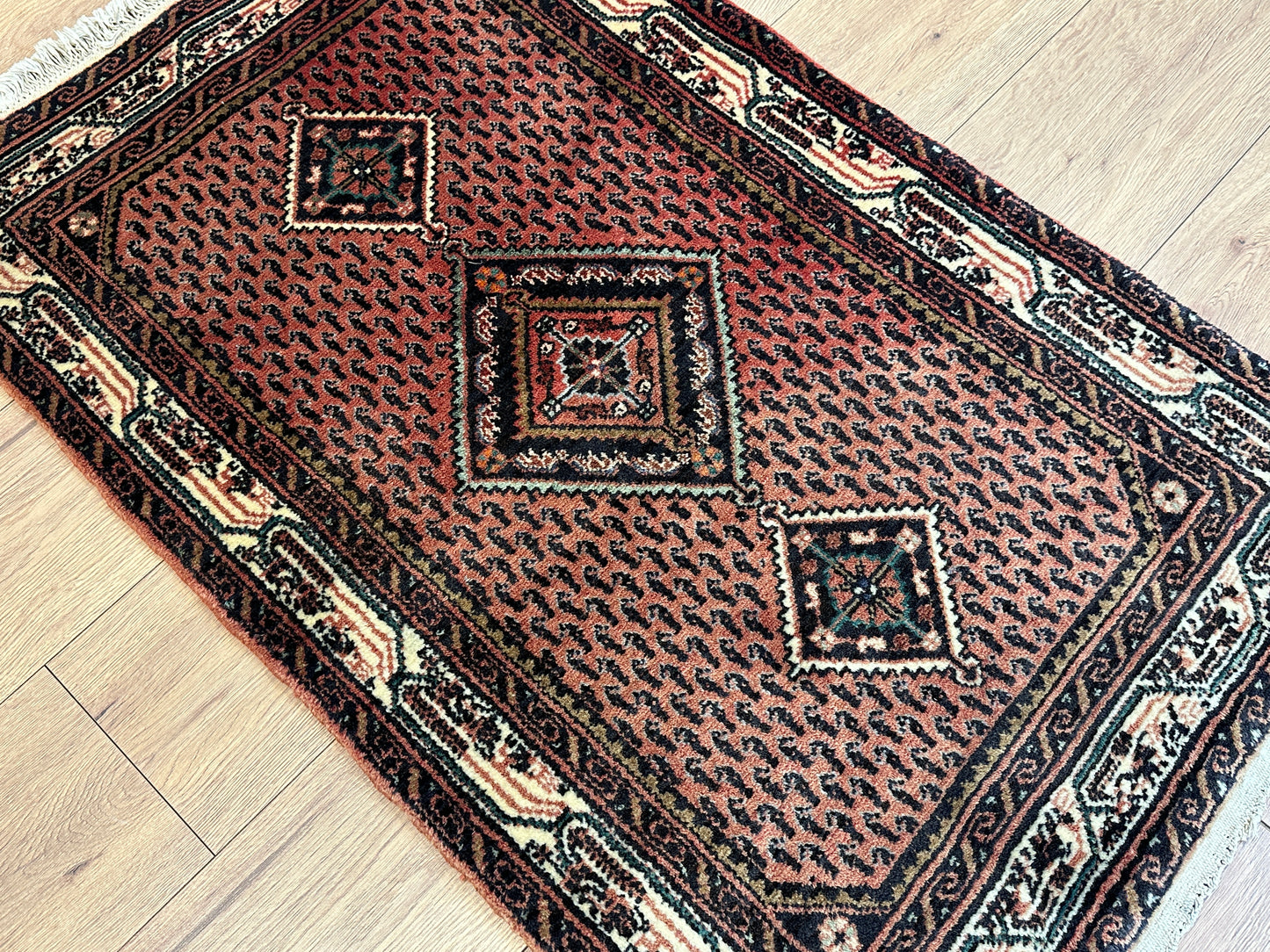 Hinweis: Aufgrund der Handarbeit kann es zu minimalen Variationen in Farbe und Muster kommen, was die Einzigartigkeit jedes Teppichs unterstreicht.