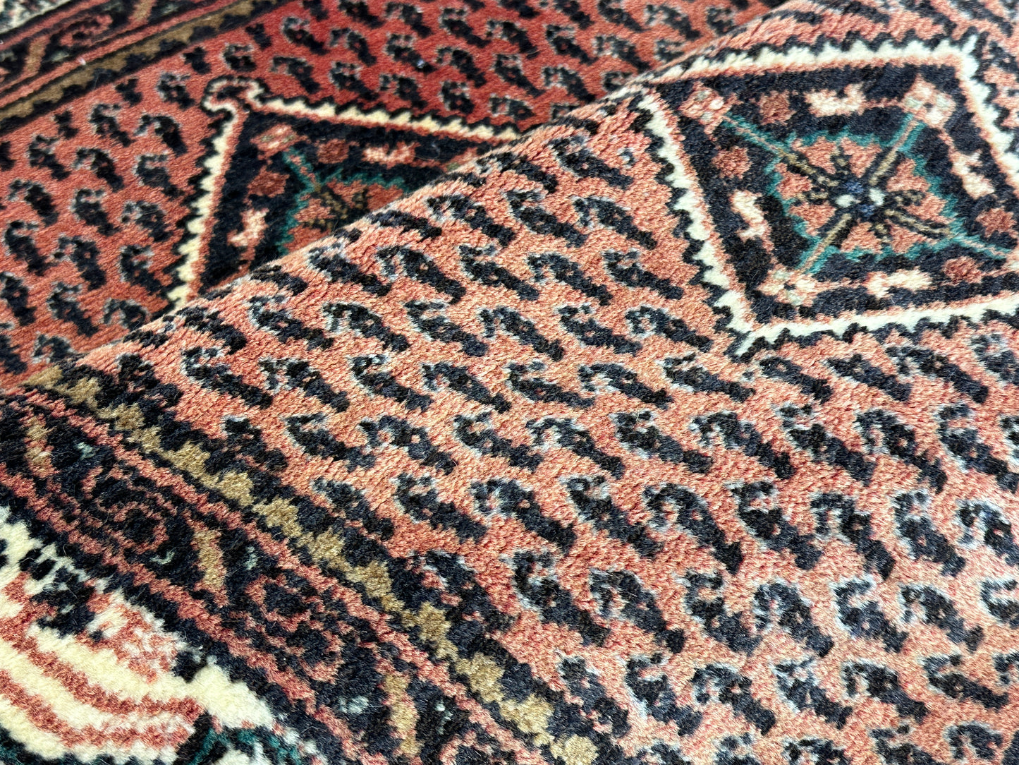 • Handgeknüpfte Präzision: Jeder Knoten dieses Teppichs wurde von erfahrenen Kunsthandwerkern in aufwendiger Handarbeit gefertigt, was seine Einzigartigkeit und Qualität unterstreicht.