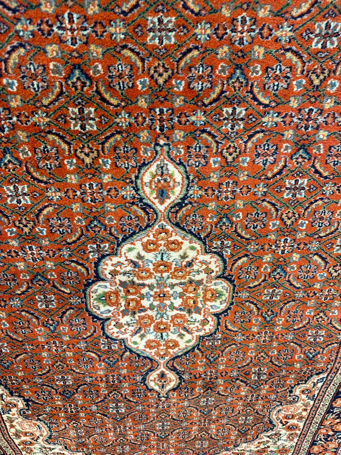 • Feines Bidjar-Medallion: Das Teppichmuster besticht durch ein aufwendiges Medaillon-Design, das dem Teppich eine königliche Eleganz verleiht.