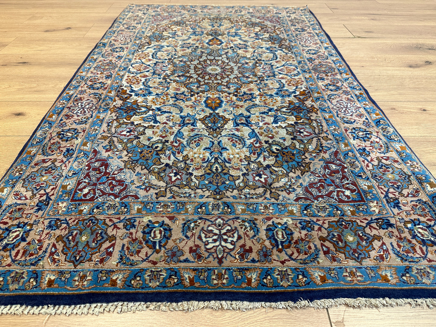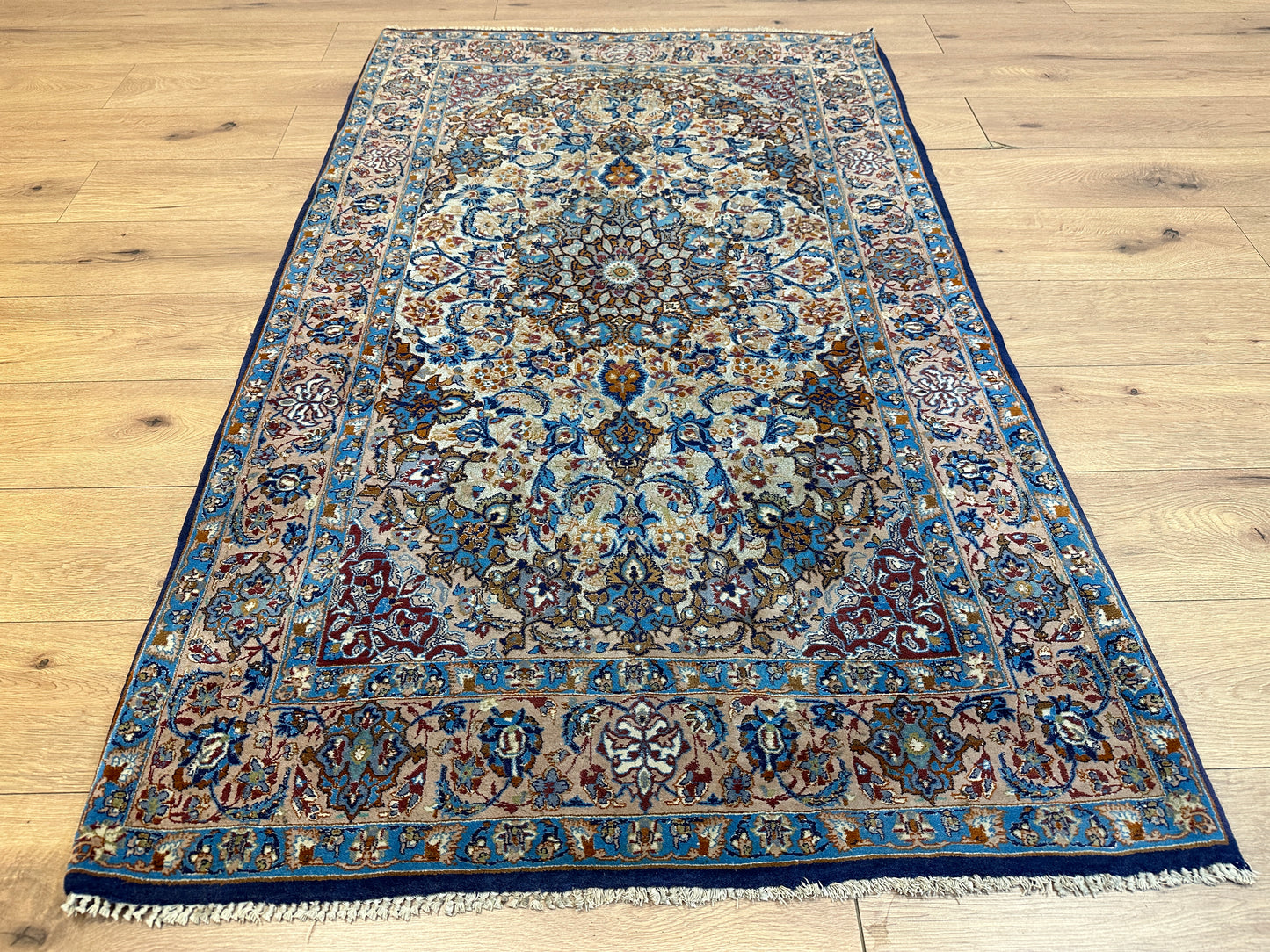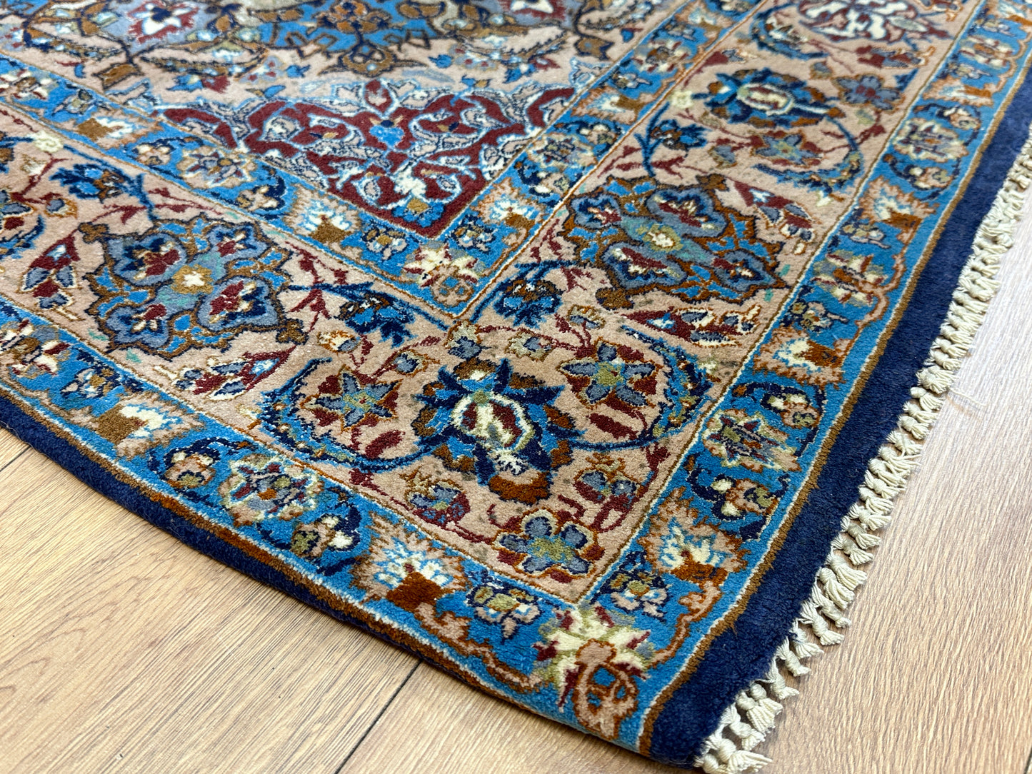 Exquisites Isfahan-Design: Mit einem kunstvollen Muster und einer filigranen Handwerkskunst verkörpert dieser Teppich die traditionelle Schönheit des Isfahan-Stils in höchster Form.