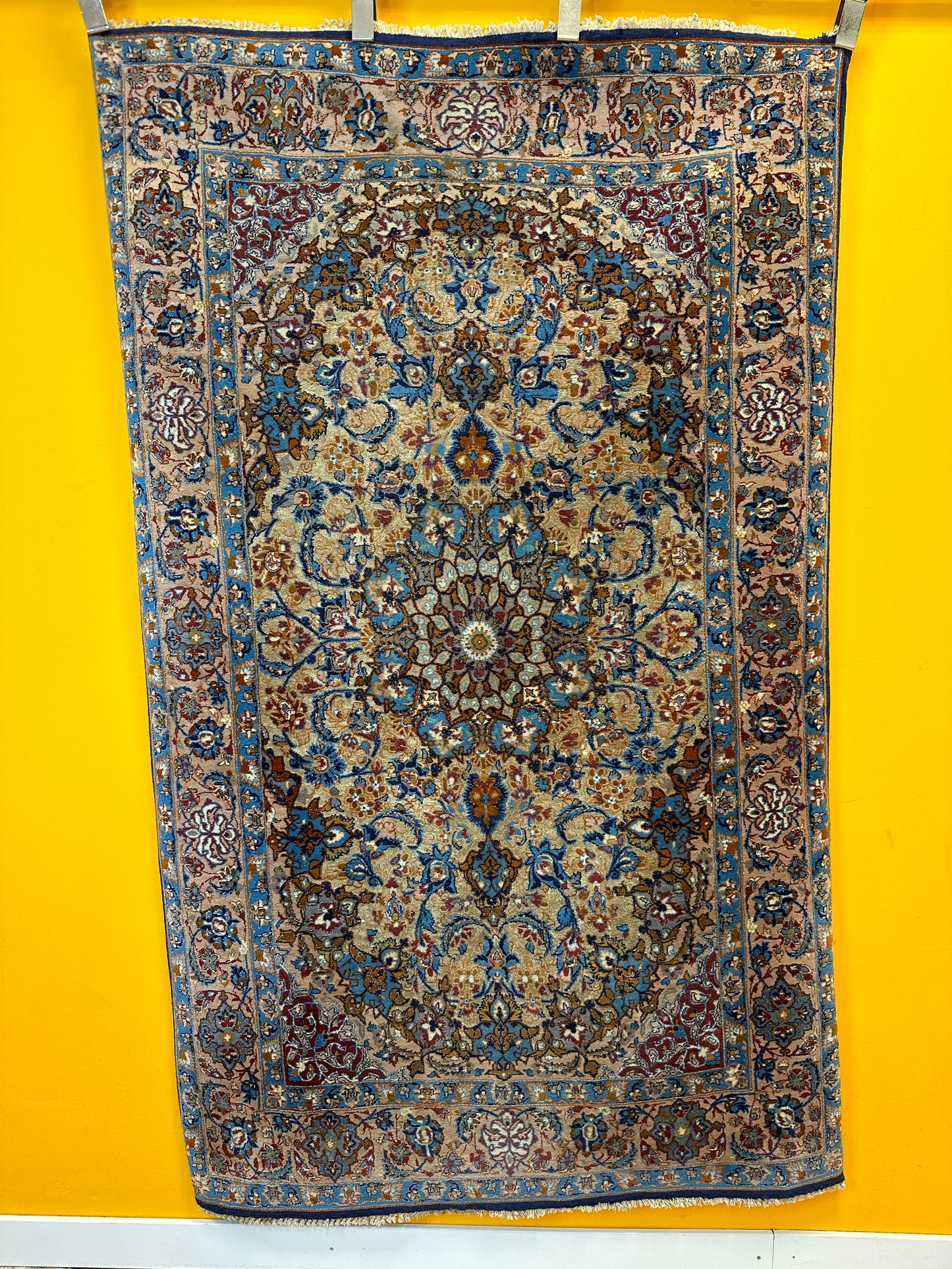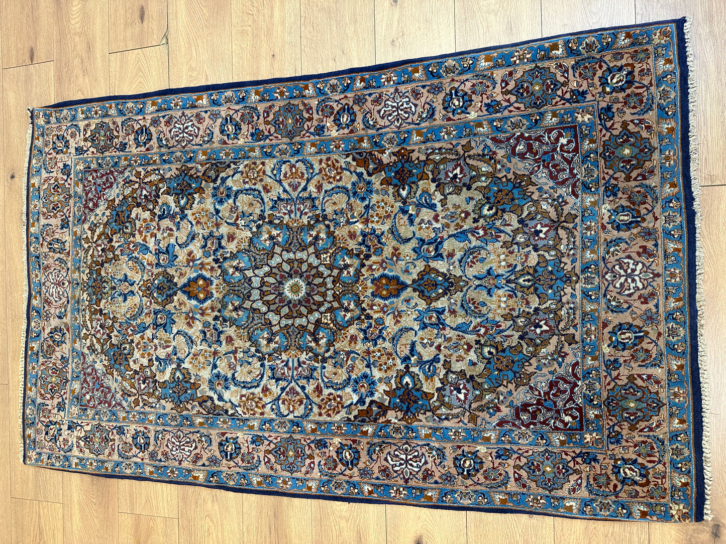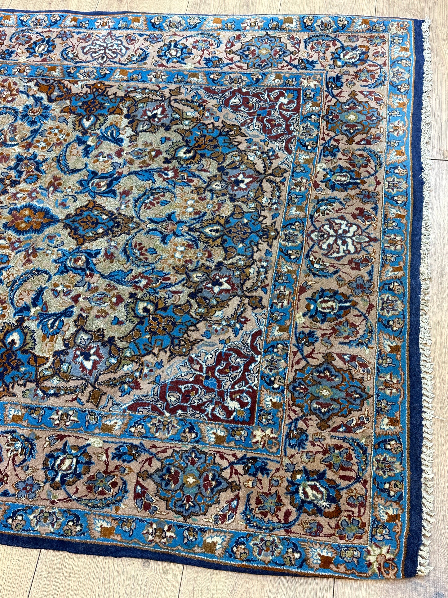 Exquisites Isfahan-Design: Mit einem kunstvollen Muster und einer filigranen Handwerkskunst verkörpert dieser Teppich die traditionelle Schönheit des Isfahan-Stils in höchster Form.