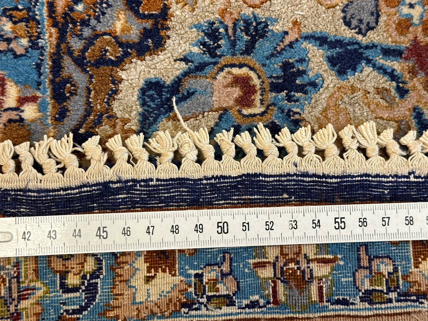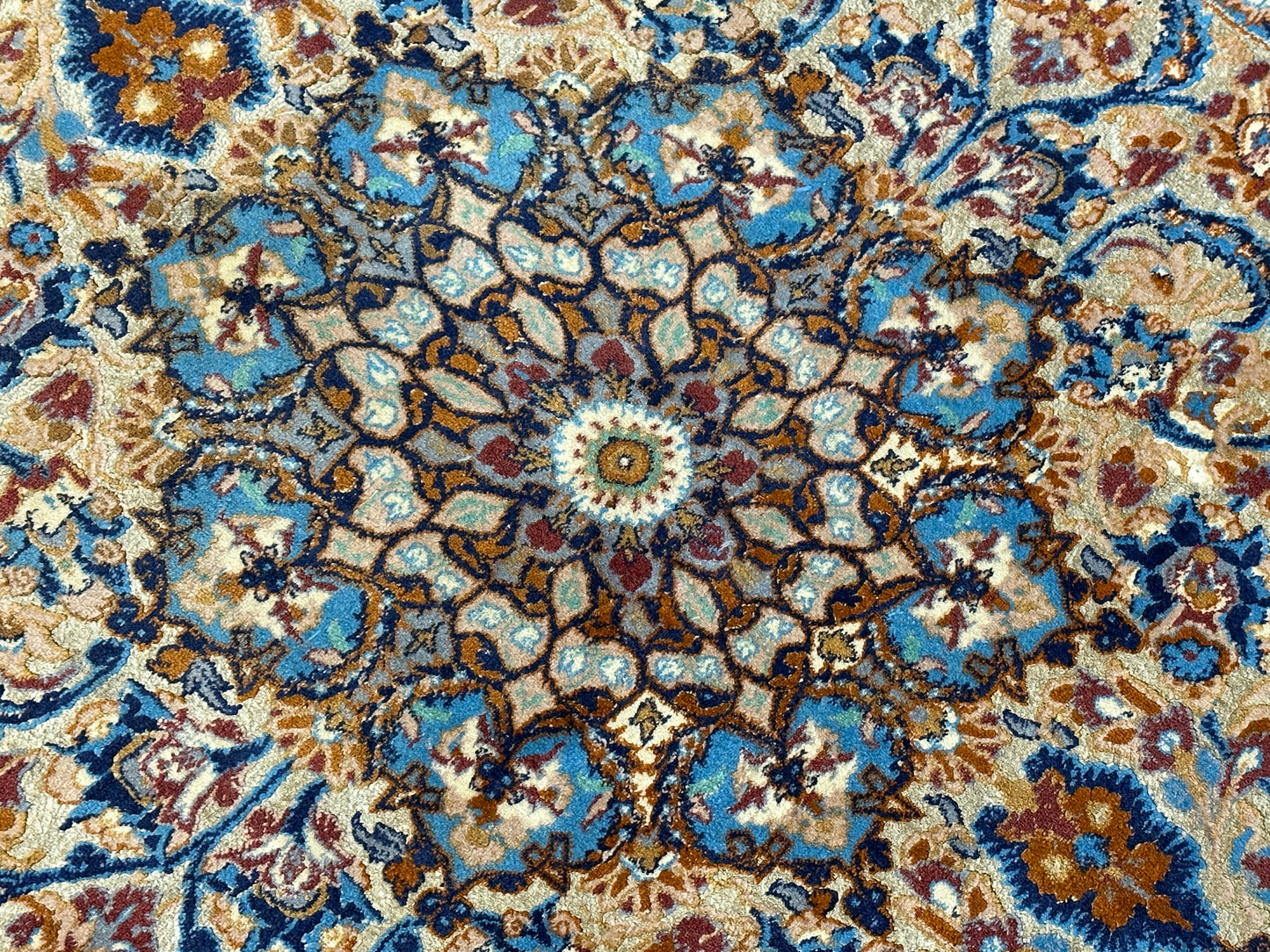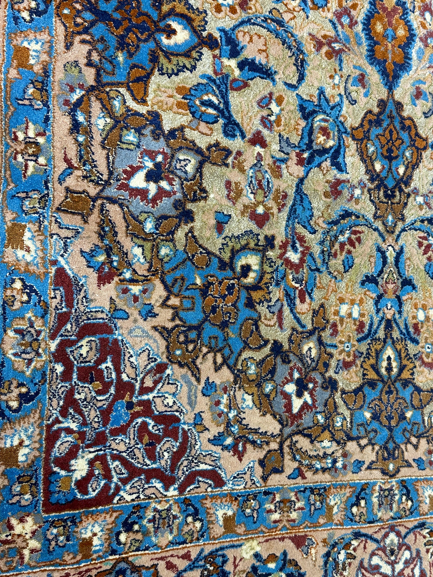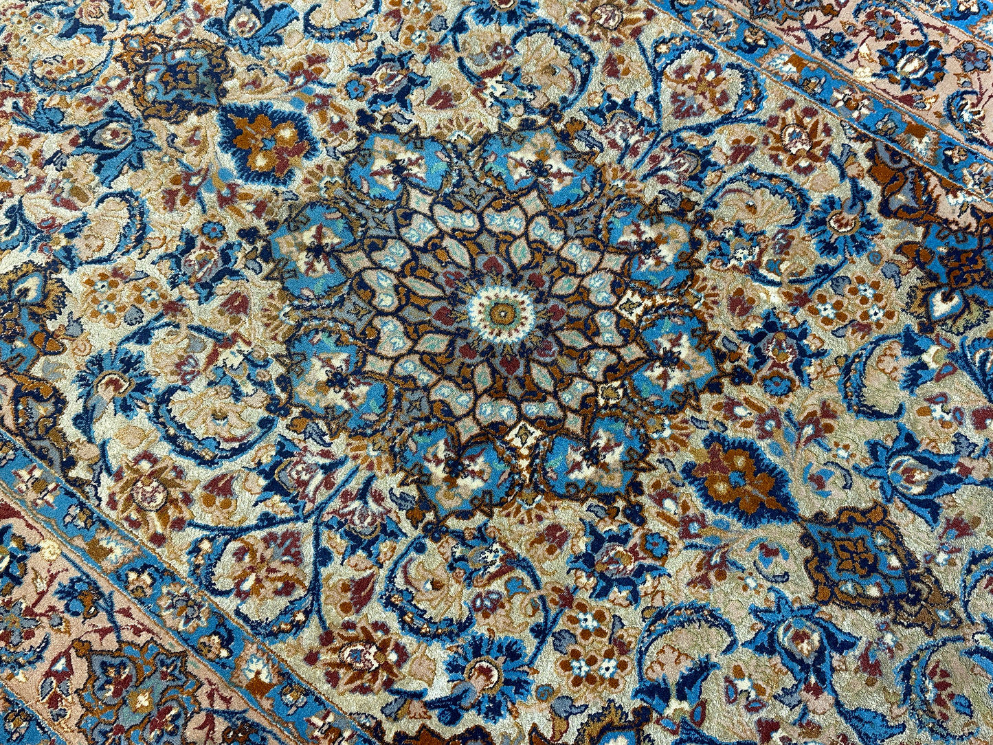 Feinste Korkwolle auf Seide: Dieser Teppich ist aus hochwertiger Korkwolle auf Seide handgeknüpft, was seine herausragende Qualität und luxuriöse Beschaffenheit betont.