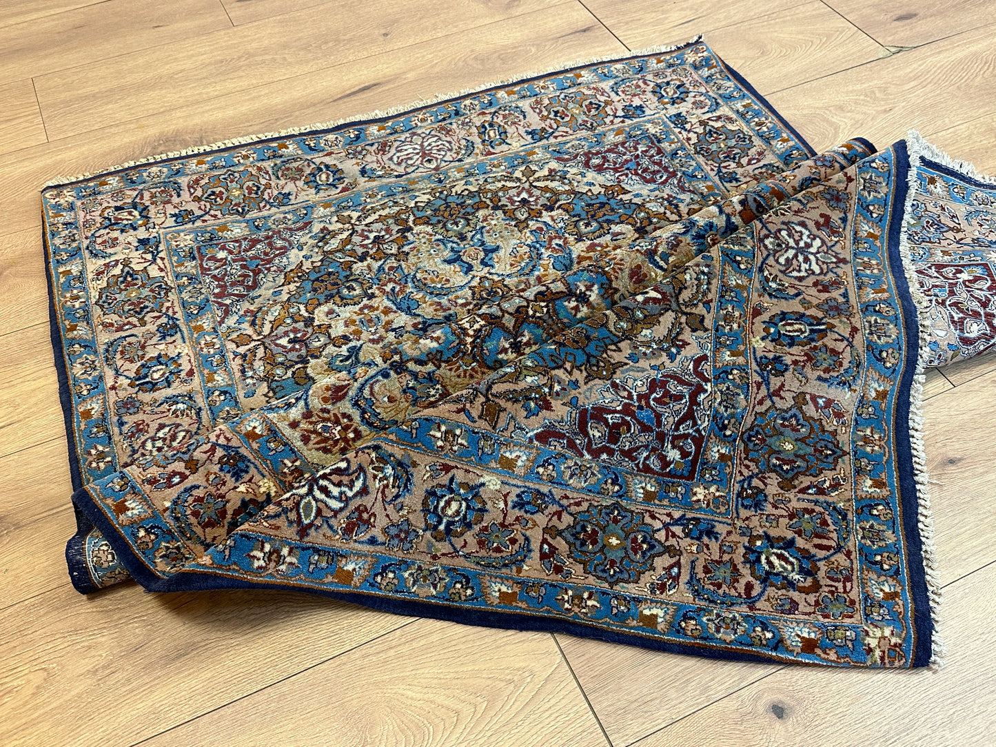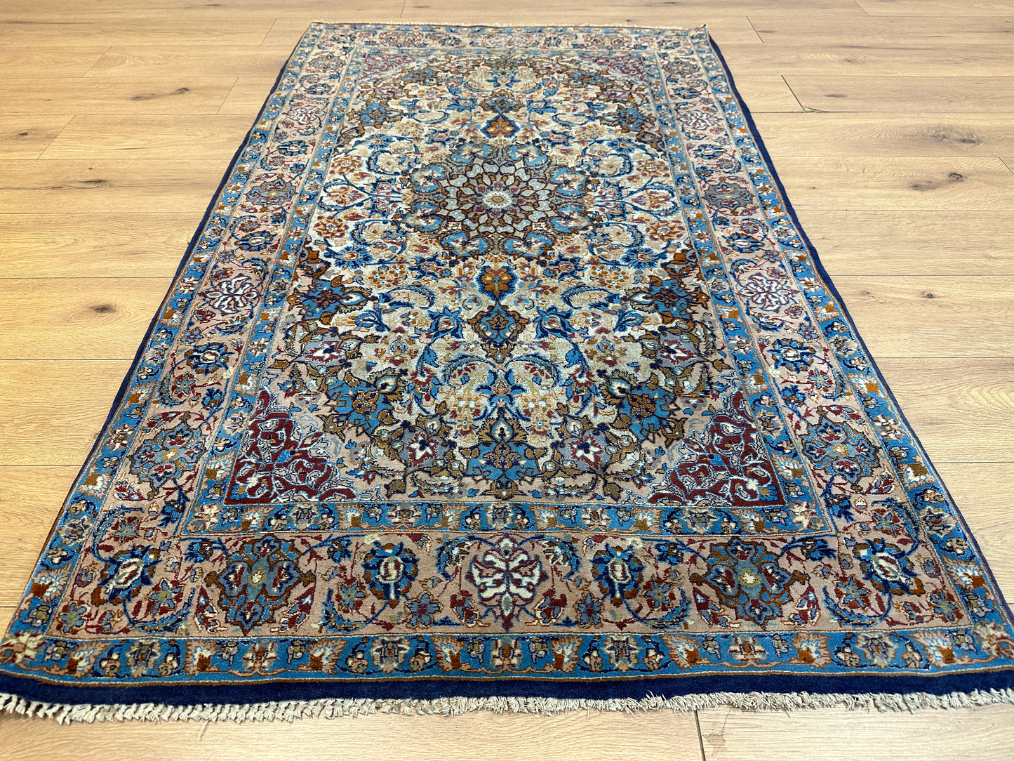 Handgeknüpfter Perser Orientteppich Feiner Isfahan Korkwolle Auf Seide 176x107 cm