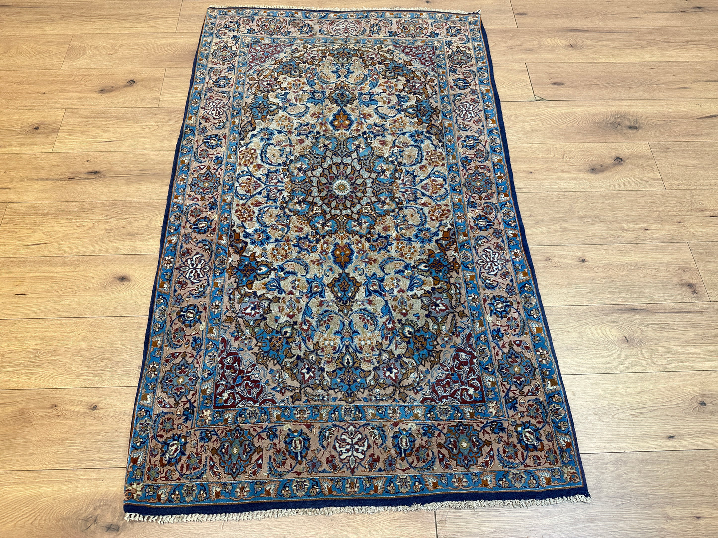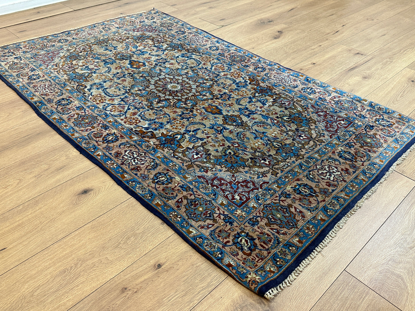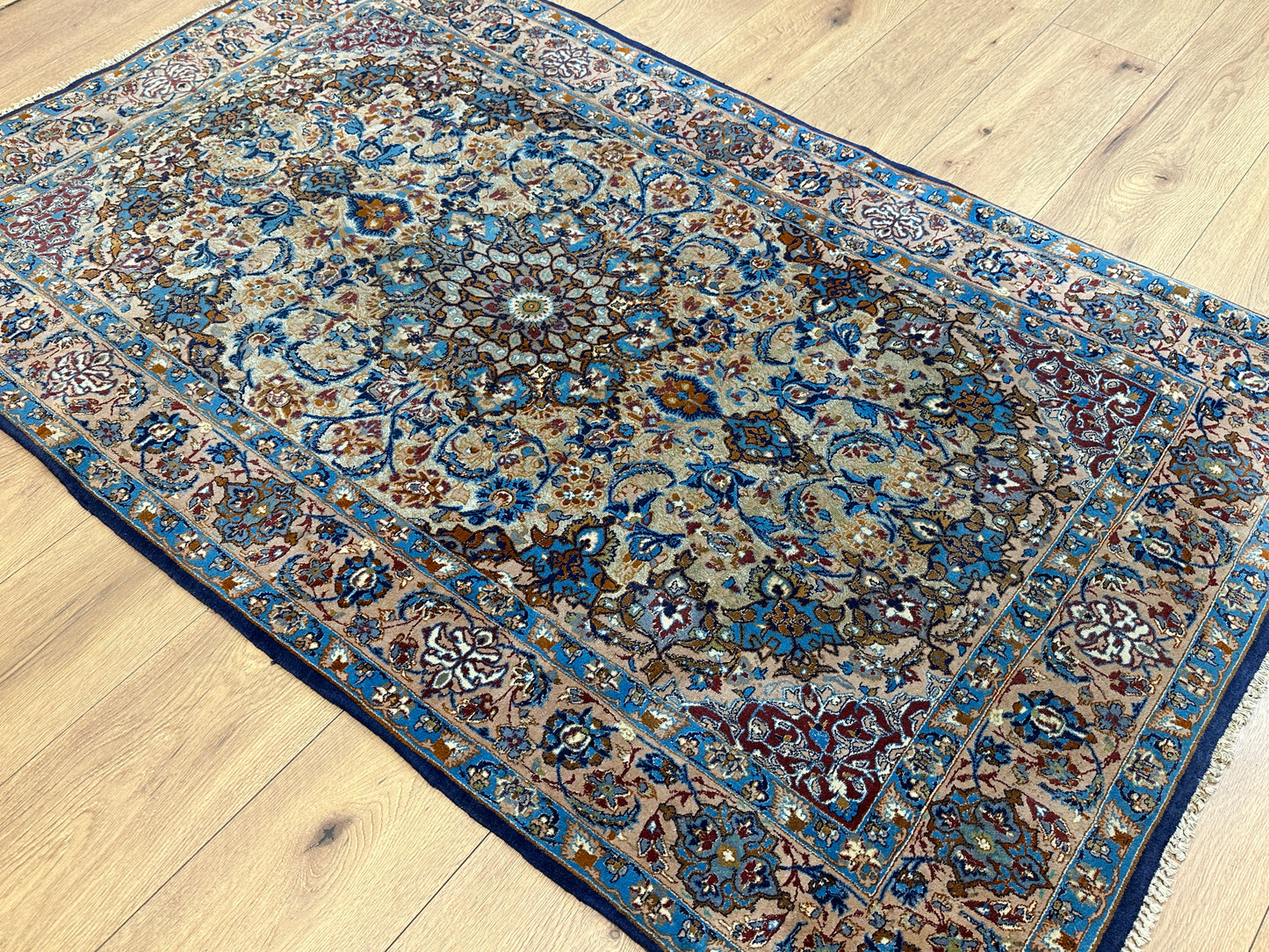 Titel: Handgeknüpfter Perser Orientteppich "Feiner Isfahan Korkwolle Auf Seide" - Neu (176x107 cm)