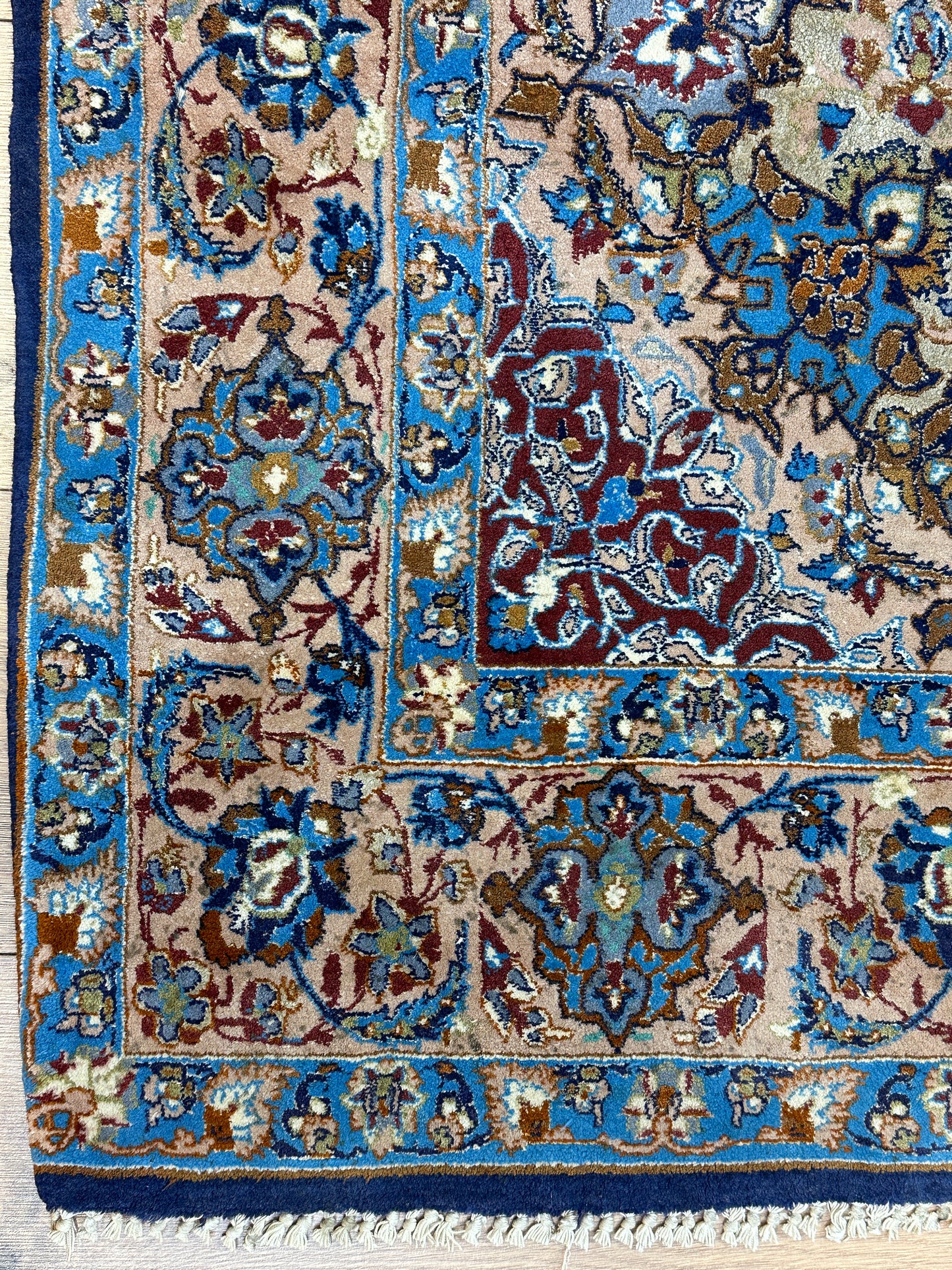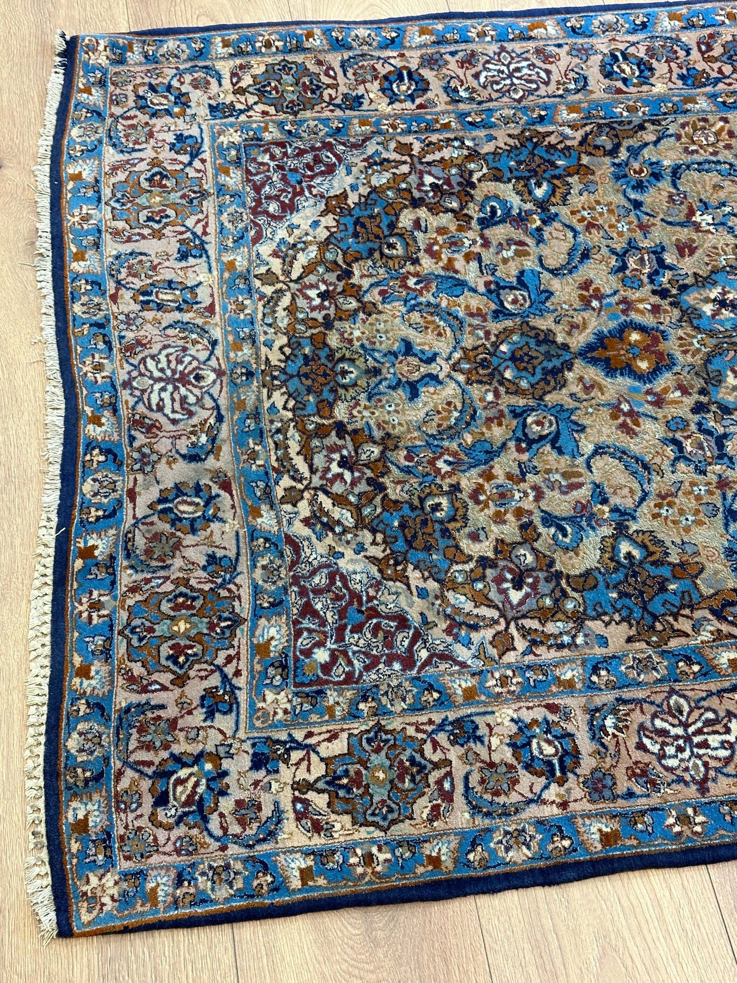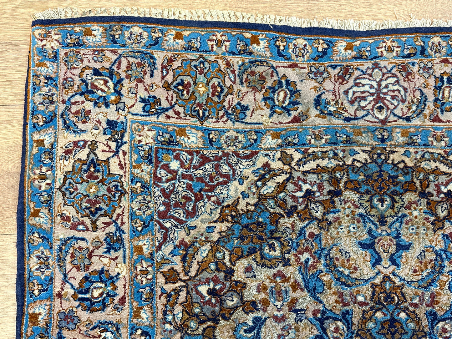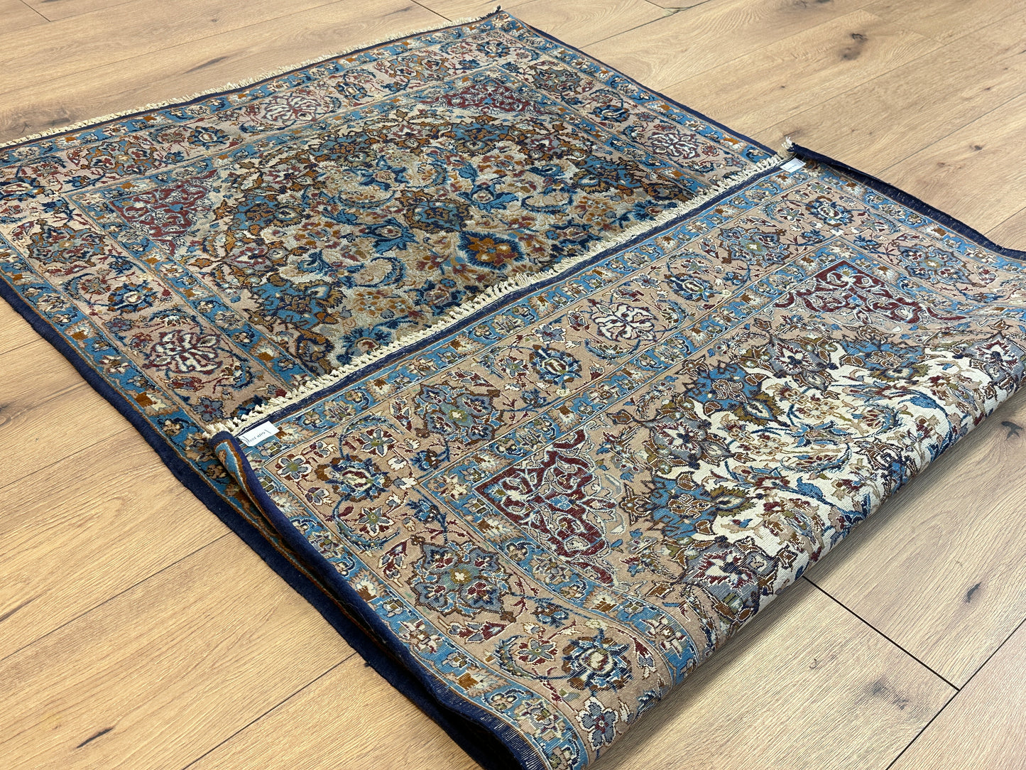 Harmonische Größe: Mit Maßen von 176x107 cm passt der "Feiner Isfahan Korkwolle Auf Seide" in verschiedene Räume und verleiht jedem Bereich eine erhabene Atmosphäre.