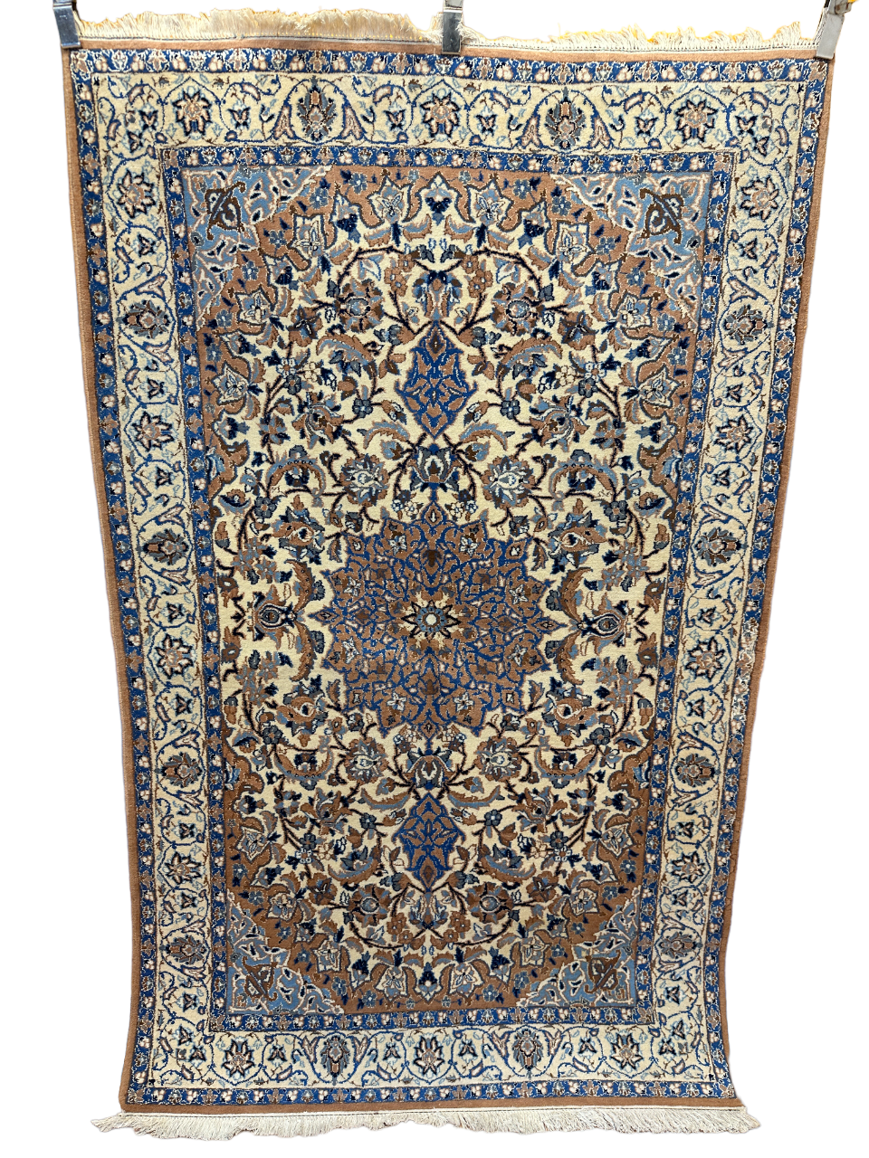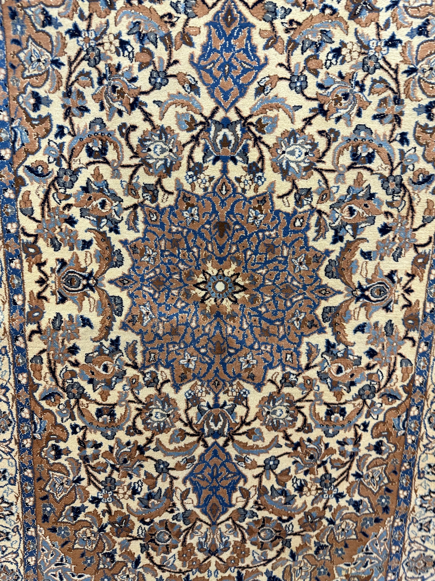 • Natürliche Farbpracht: Dieser Nain-Teppich zeigt die Schönheit der Natur mit seiner Palette von warmen Naturfarben, die aus Pflanzen gewonnen werden. Diese Farben sind ein Zeichen für die Authentizität dieses handgeknüpften Teppichs.