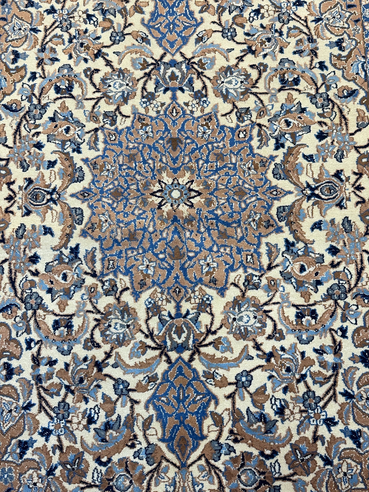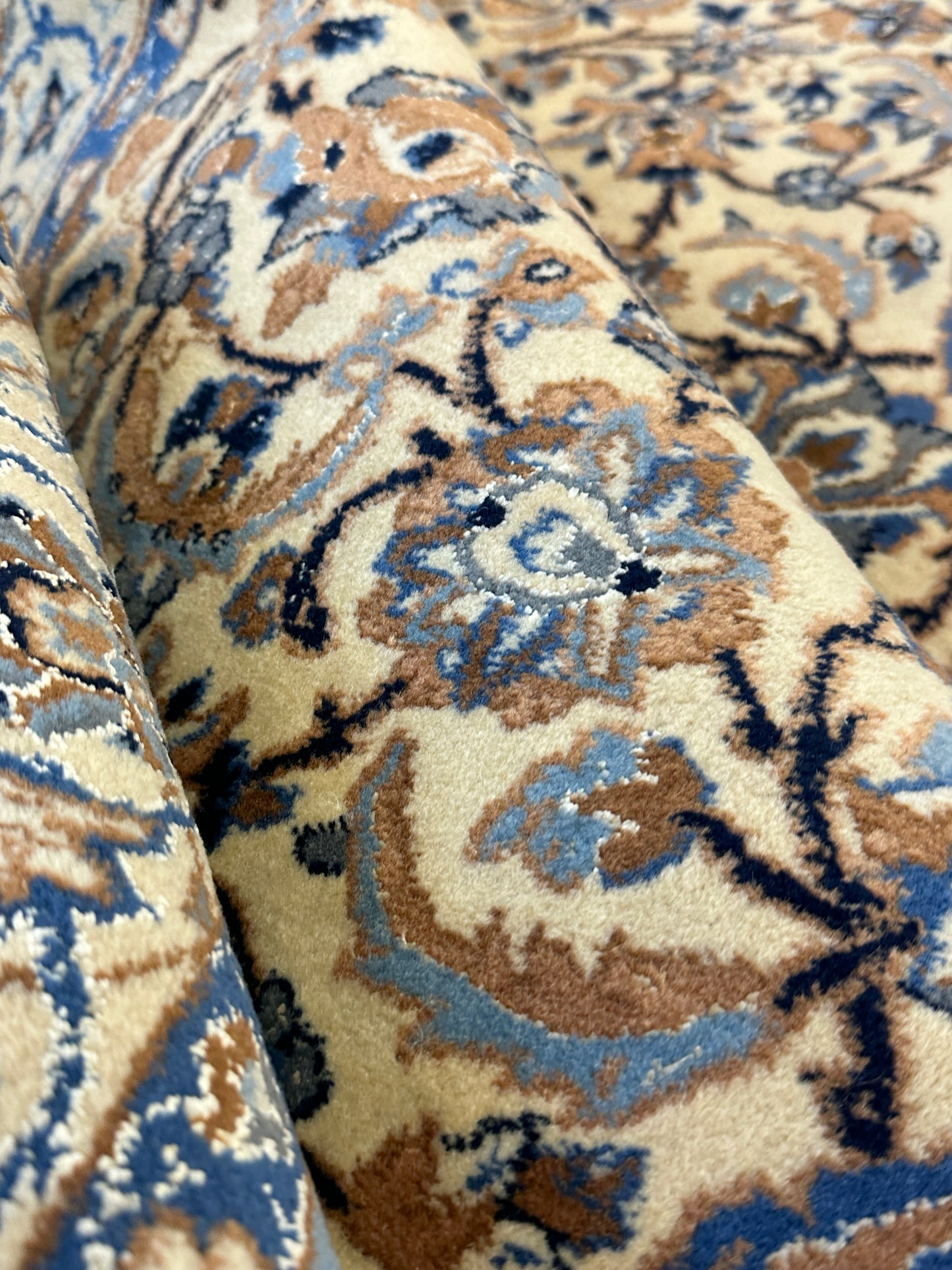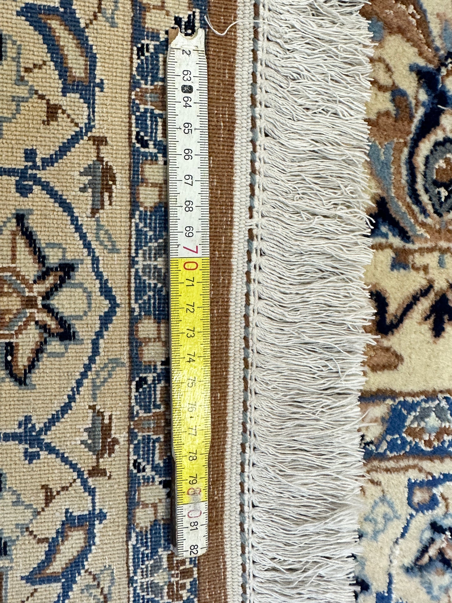 Dieser Nain-Teppich vereint traditionelle Handwerkskunst mit zeitloser Eleganz. Er ist nicht nur ein Schmuckstück für Ihr Zuhause, sondern auch eine Investition in die Geschichte und Kunst Persiens. Tauchen Sie ein in die Welt der edlen Teppiche und bereichern Sie Ihr Zuhause mit diesem beeindruckenden Perser Orientteppich.