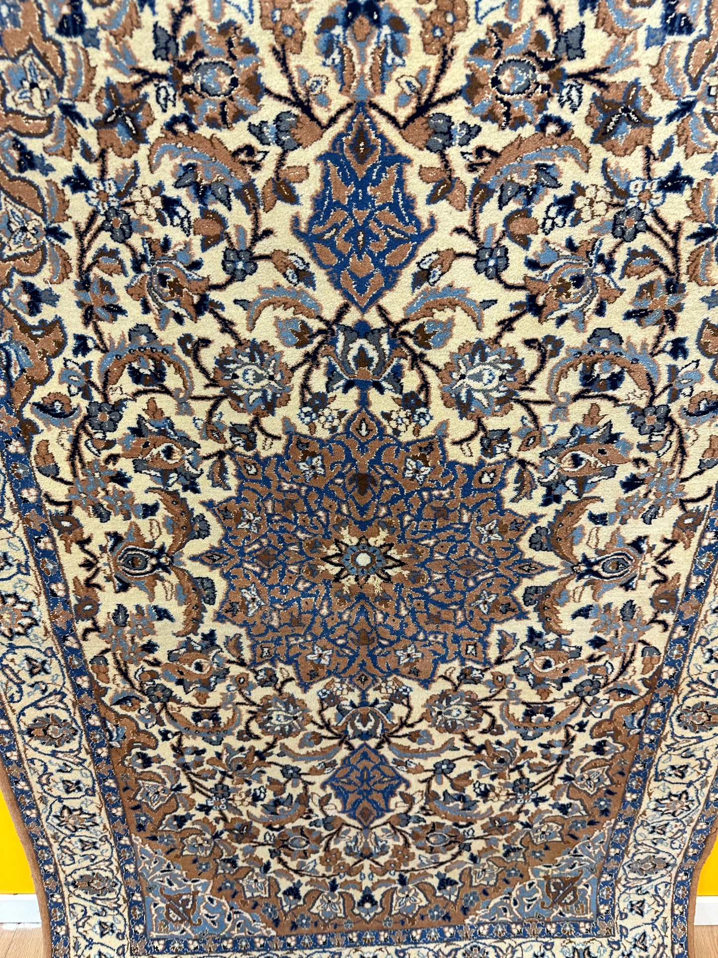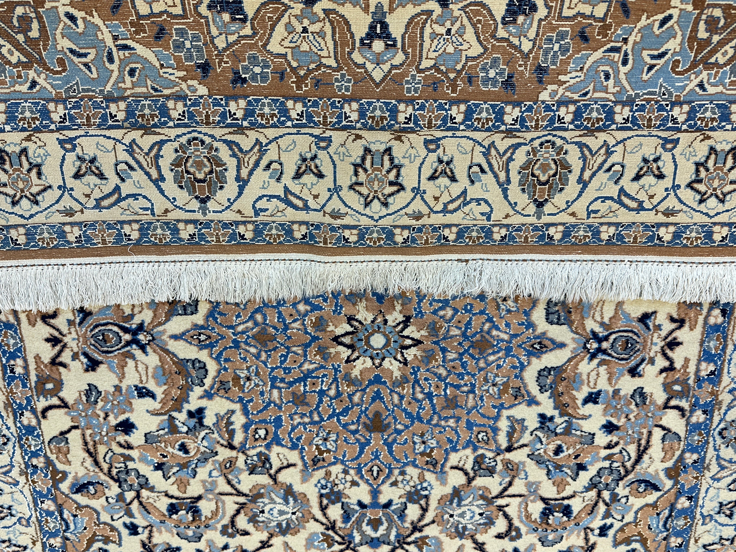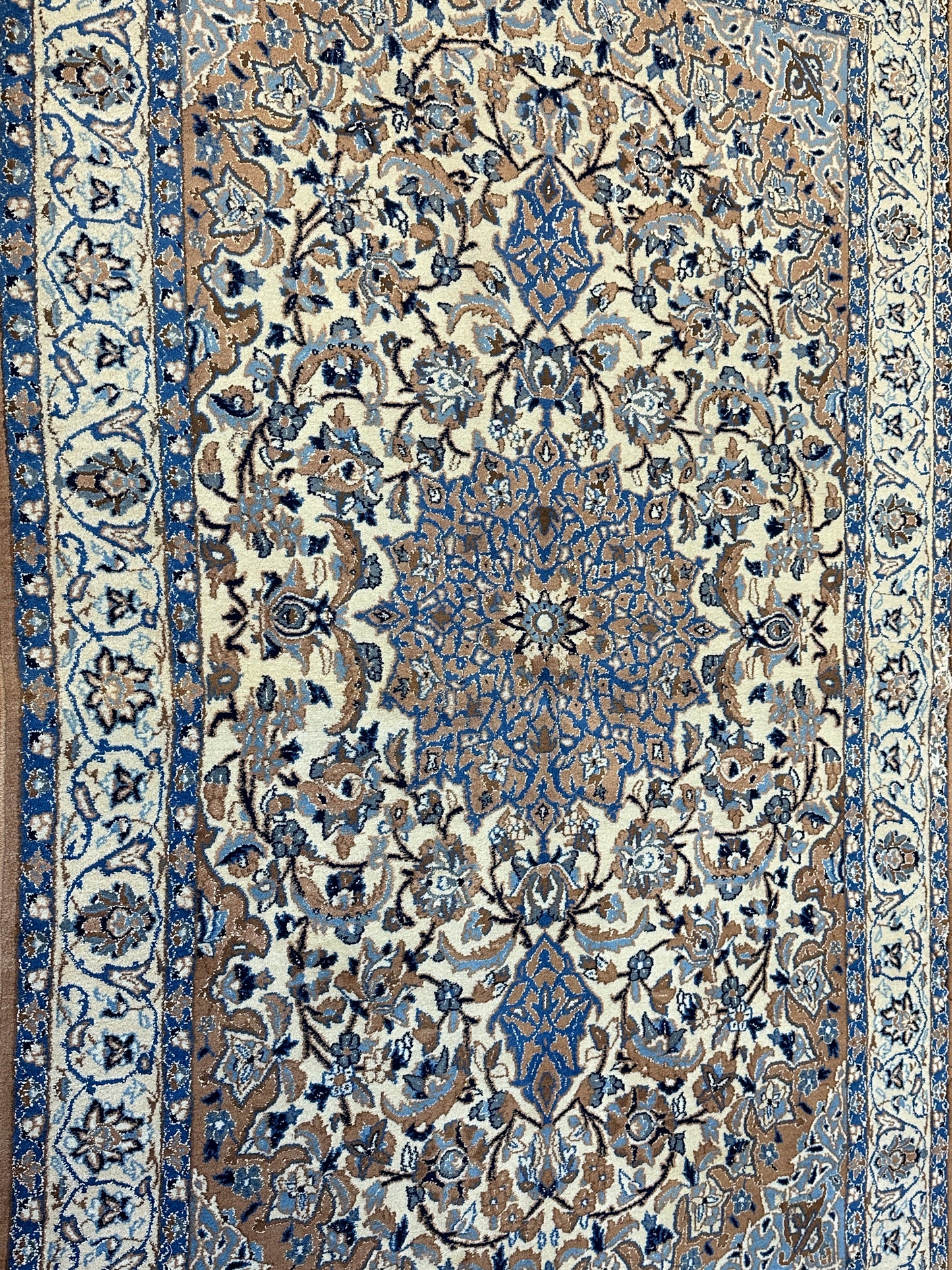 Dieser Nain-Teppich vereint traditionelle Handwerkskunst mit zeitloser Eleganz. Er ist nicht nur ein Schmuckstück für Ihr Zuhause, sondern auch eine Investition in die Geschichte und Kunst Persiens. Tauchen Sie ein in die Welt der edlen Teppiche und bereichern Sie Ihr Zuhause mit diesem beeindruckenden Perser Orientteppich.