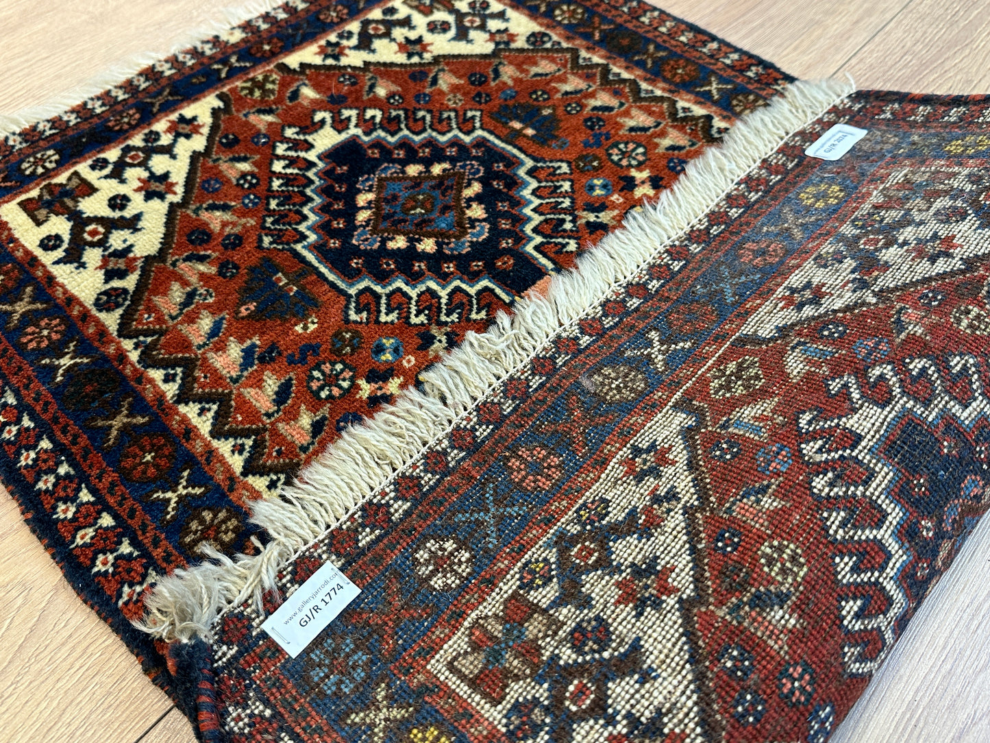 Ein wunderschöner handgeknüpfter Perser Orientteppich im Gaschgai-Stil mit den Maßen 85x53 cm und der Artikelnummer GJ/R 1774, der sich in einem neuen, makellosen Zustand befindet.