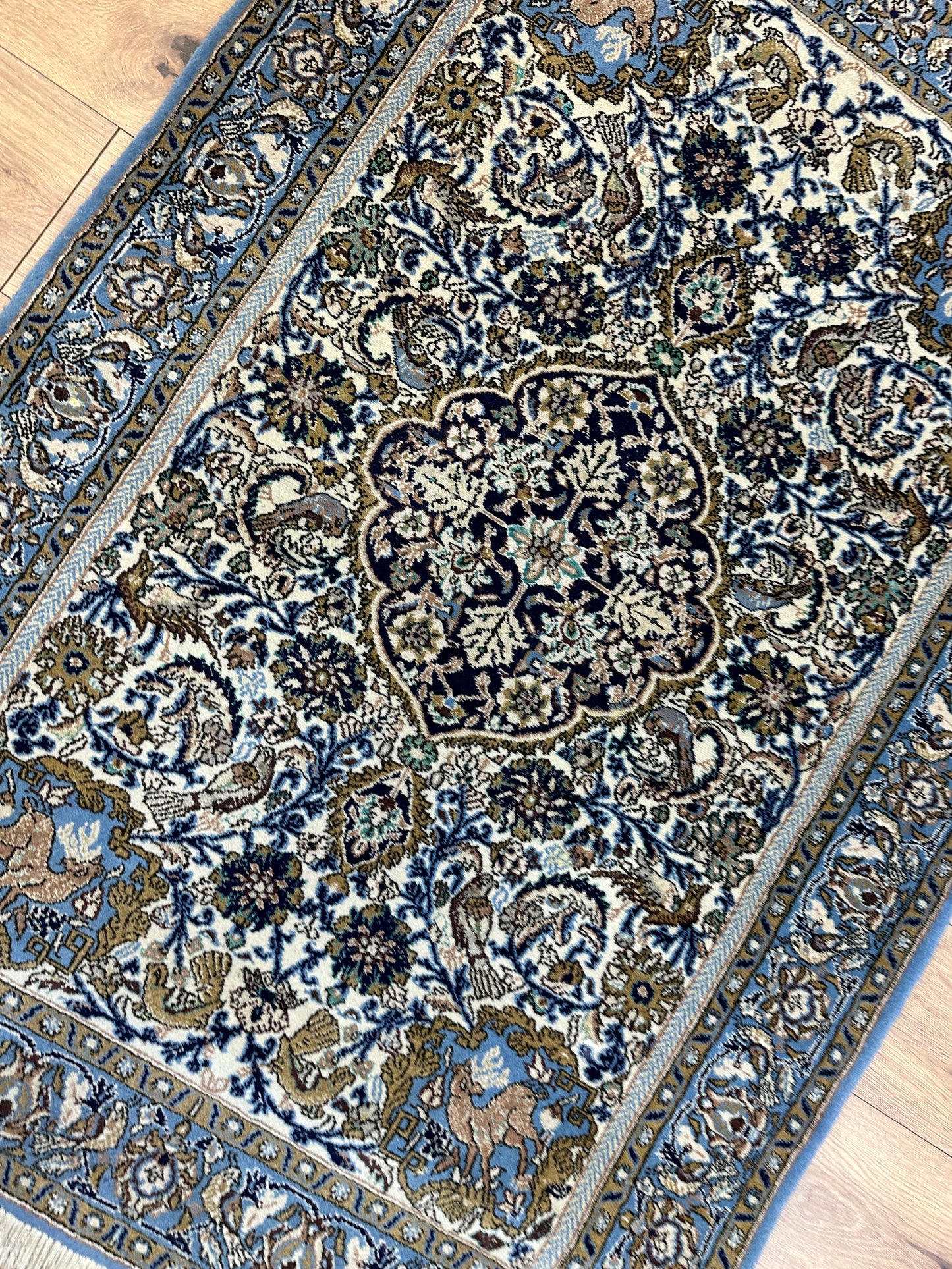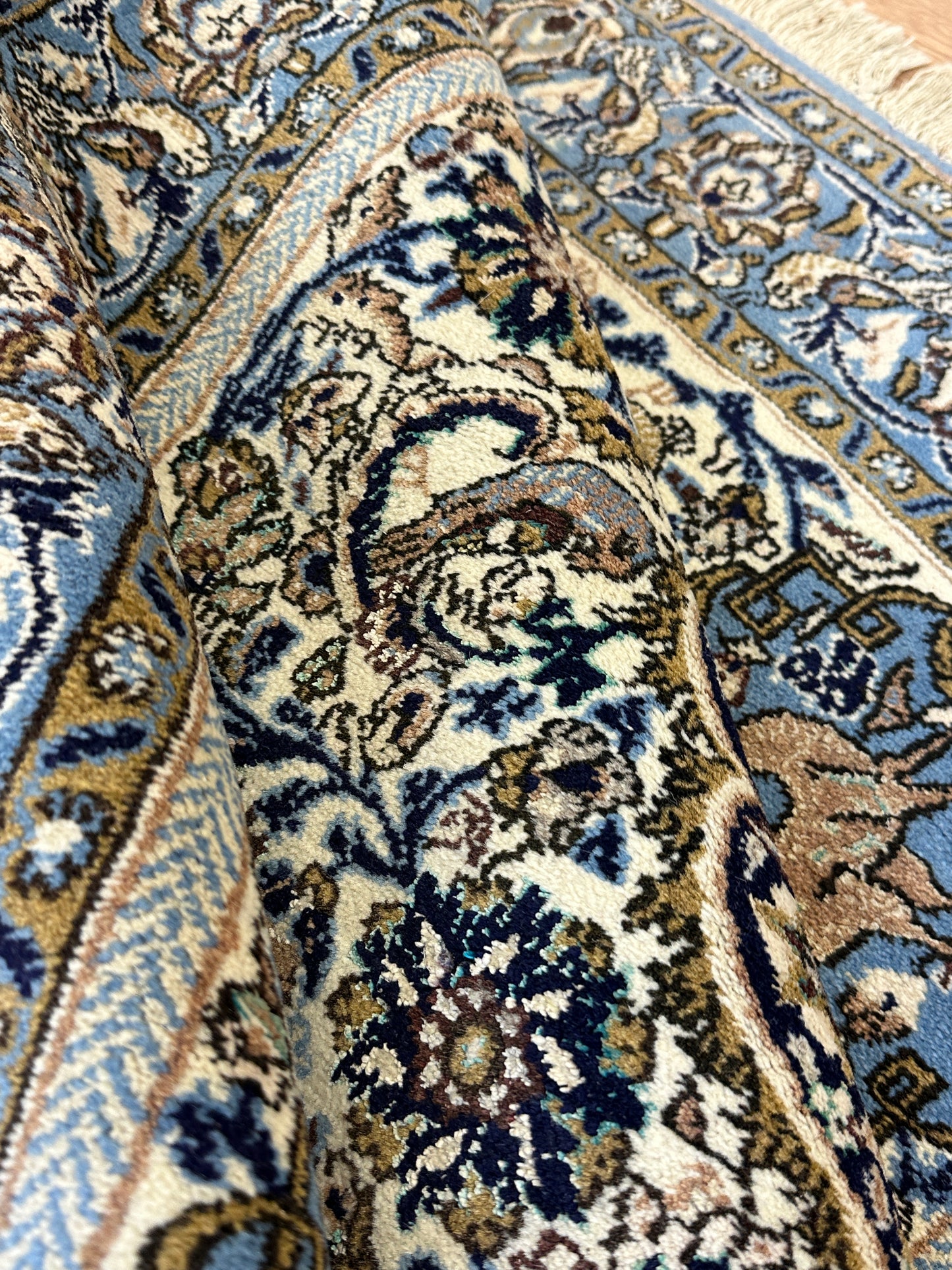 • Traditionelles Ghom-Design: Das Design dieses Teppichs ist von der Ghom-Region im Iran inspiriert und zeichnet sich durch traditionelle Muster und Motive aus.