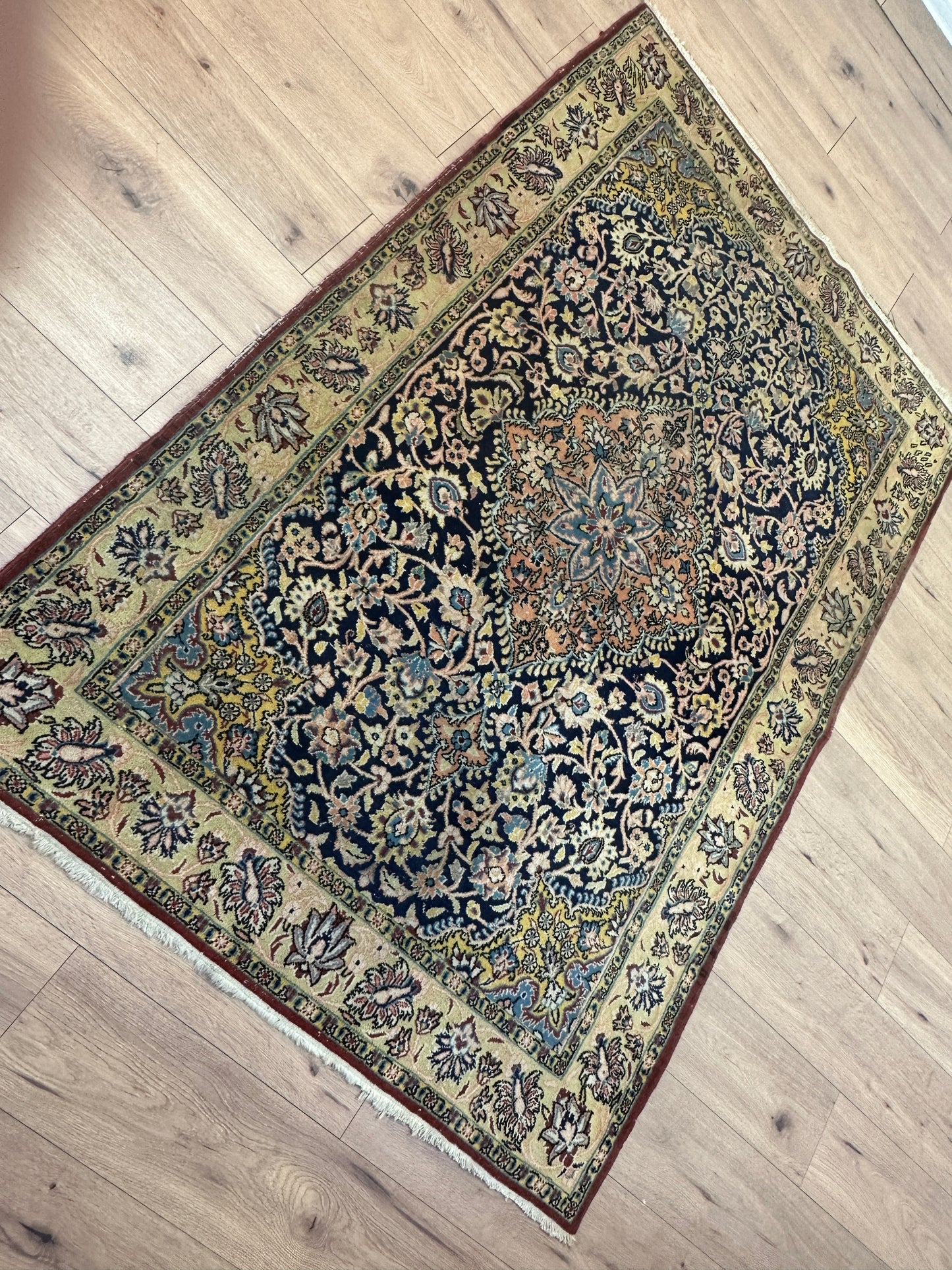 • Sehr guter Zustand: Dieser Teppich befindet sich in einem außergewöhnlich guten Zustand und wurde sorgfältig gereinigt, um seine Schönheit zu bewahren.