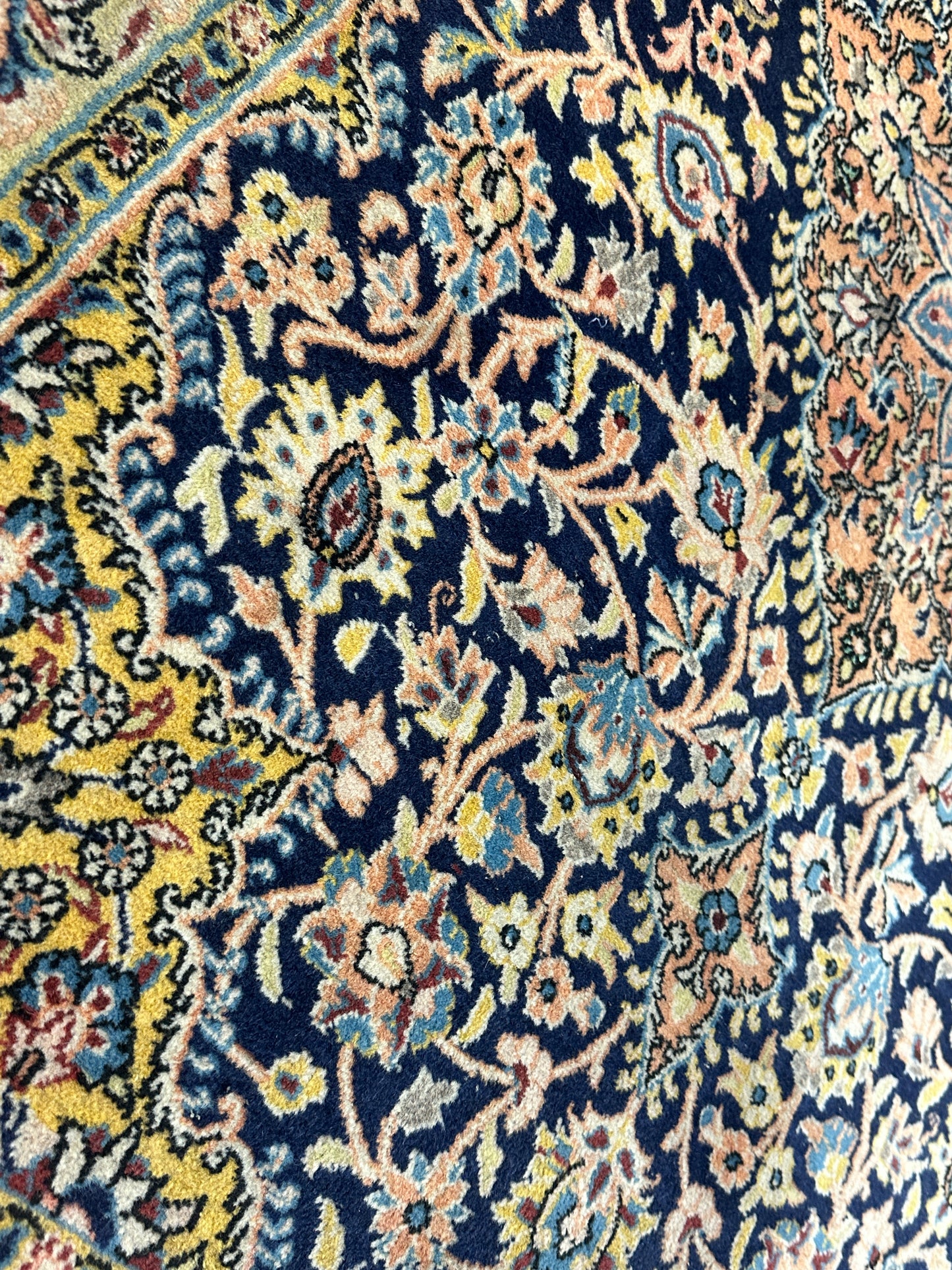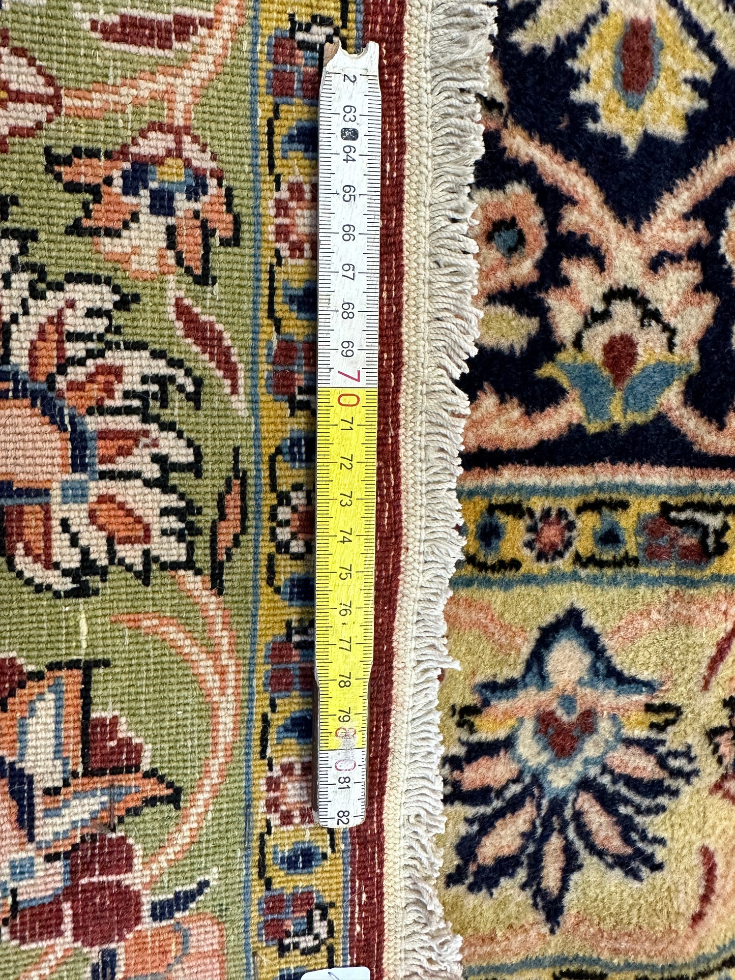 • Hochwertige Seide: Dieser Teppich besteht aus edler Seide, die ihm nicht nur Glanz verleiht, sondern auch für Langlebigkeit sorgt.