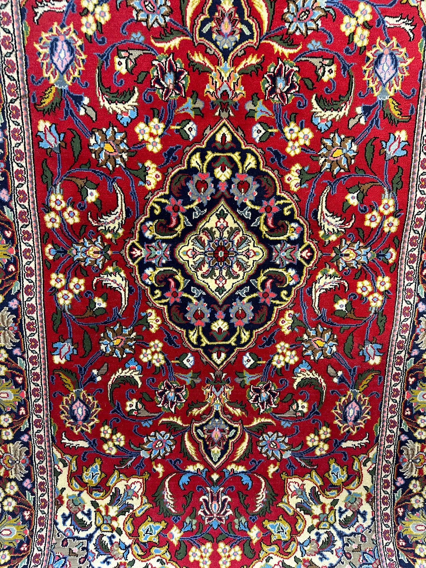 • Ghom-Tradition: Dieser Teppich repräsentiert die reiche Tradition der Stadt Ghom im Iran, die für ihre hochwertigen Teppiche weltweit bekannt ist.