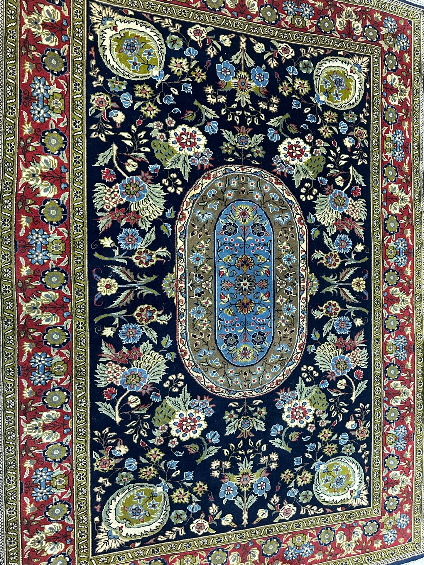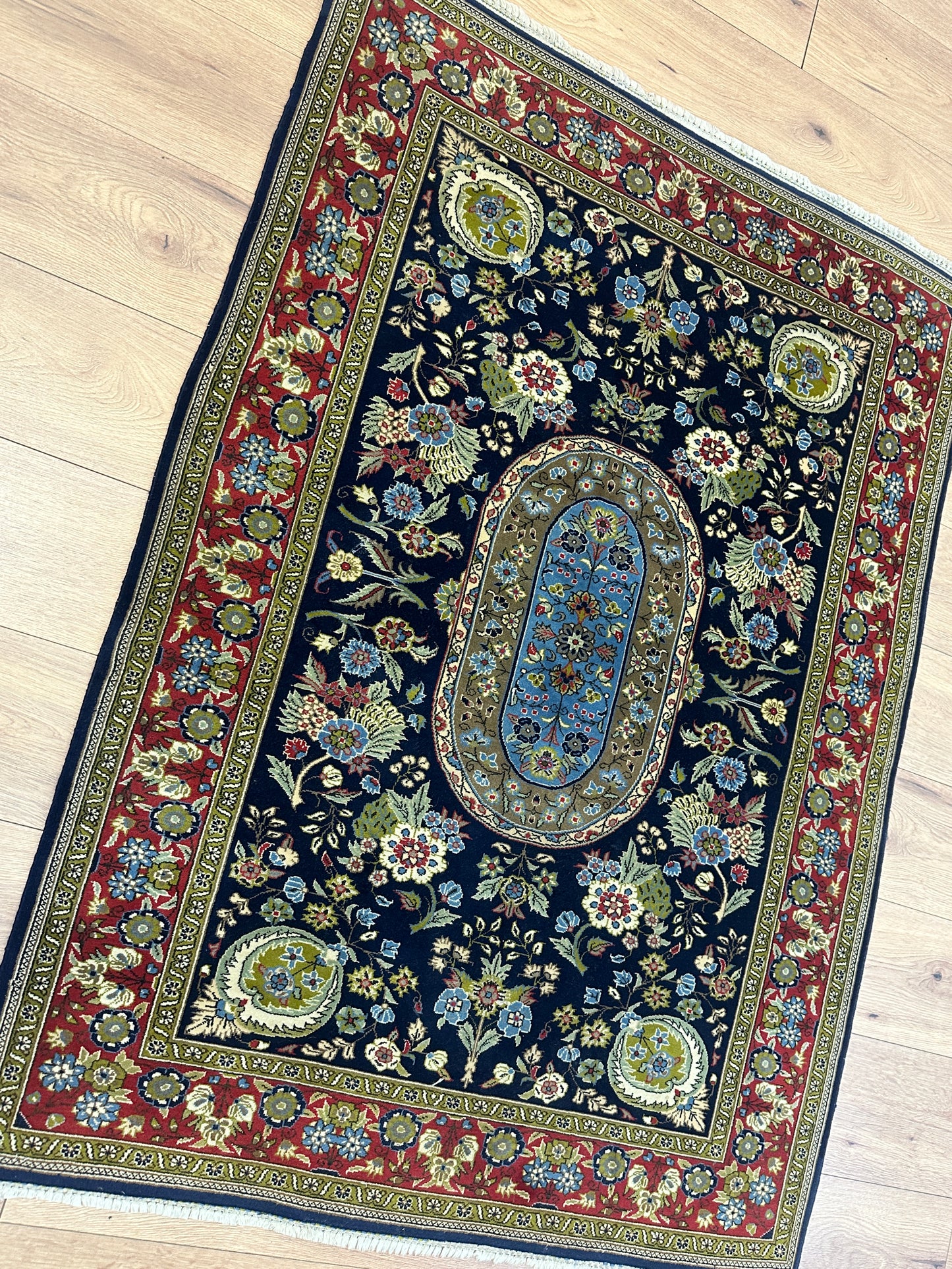Titel: Handgeknüpfter Perser Orientteppich Ghom Medaillon - (150x110 cm)