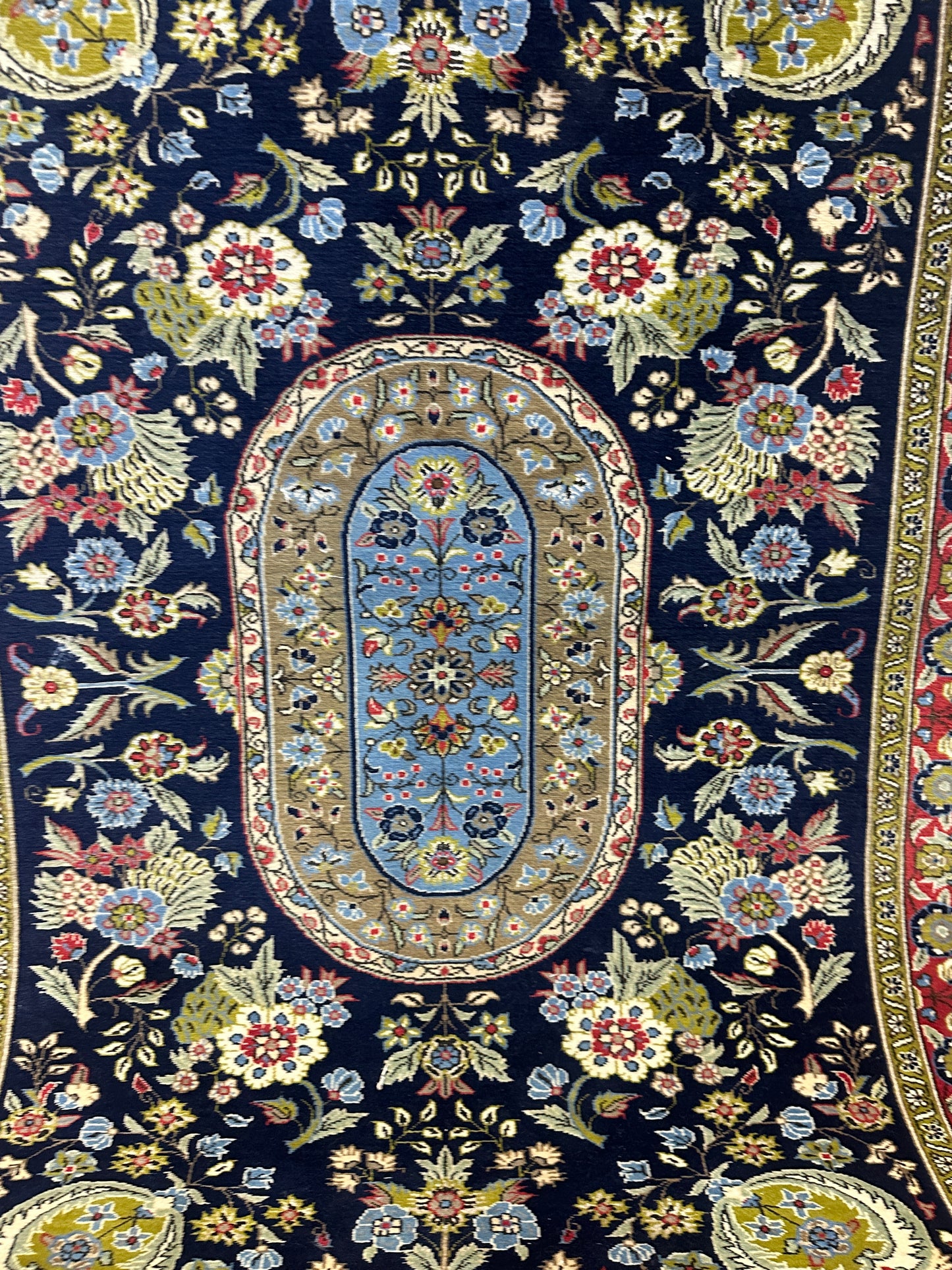 • Exquisites Medaillonmuster: Das Ghom Medaillonmuster verkörpert Tradition und Raffinesse, mit kunstvollen Details und einem faszinierenden Zentrum.