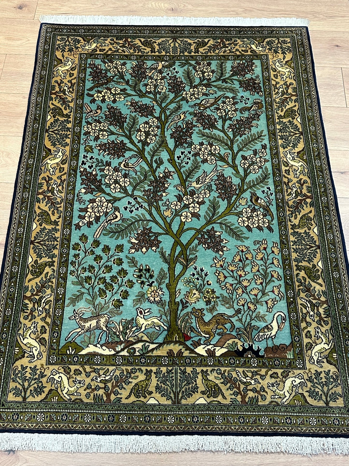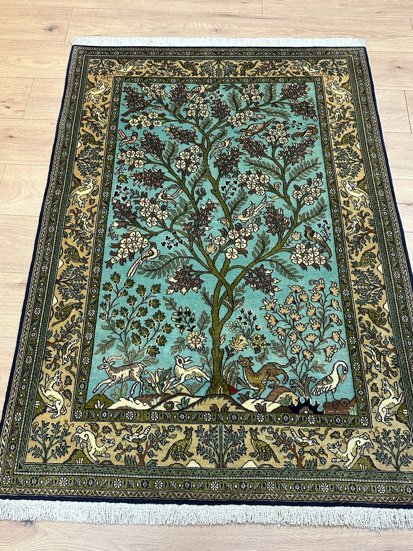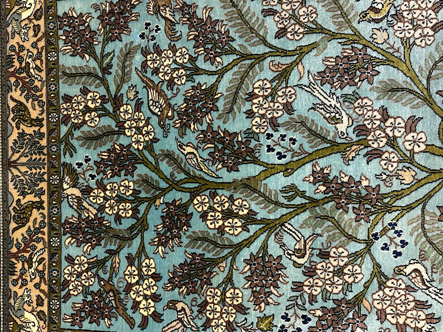 • Artikel: Handgeknüpfter Perserteppich Ghom Wolle auf Seide mit Lebensbaum Muster