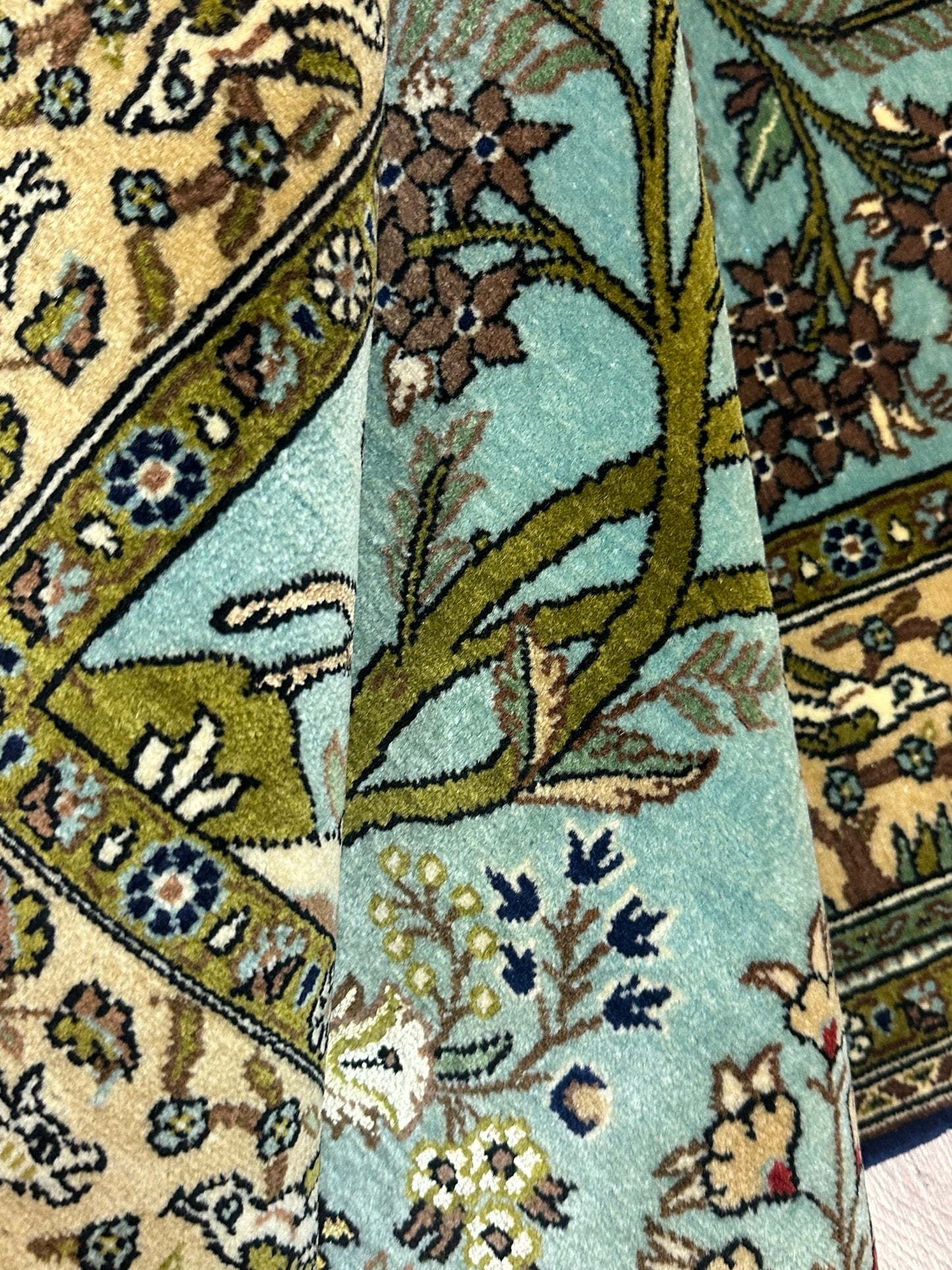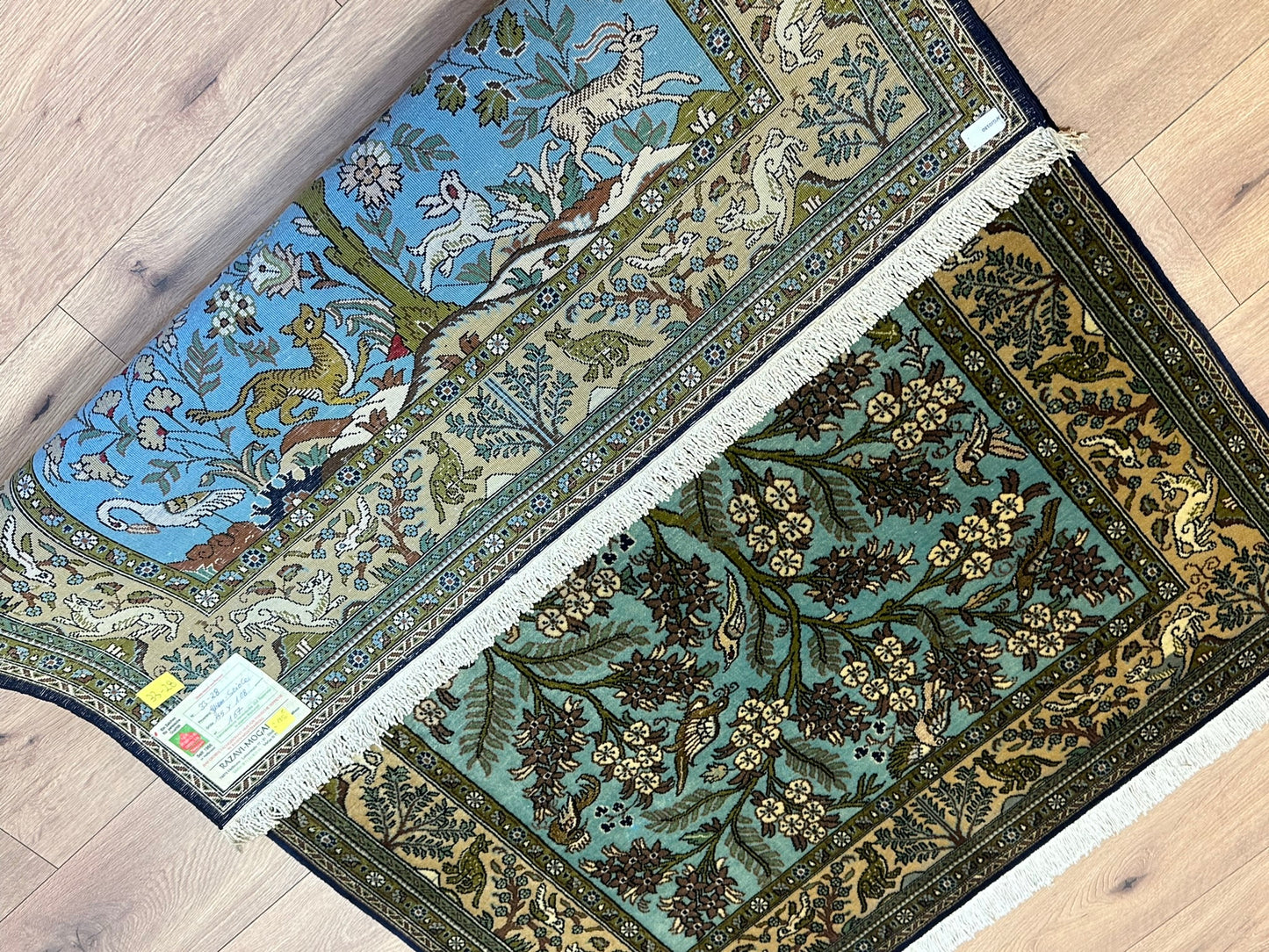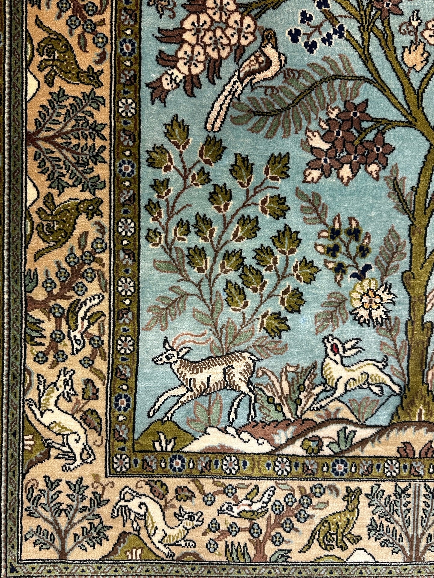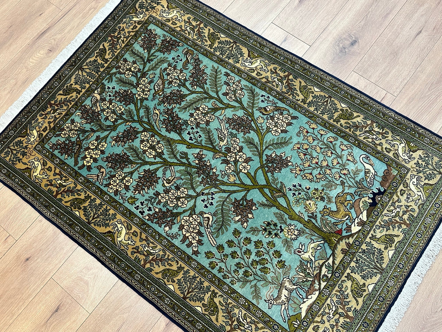 • Artikel: Handgeknüpfter Perserteppich Ghom Wolle auf Seide mit Lebensbaum Muster