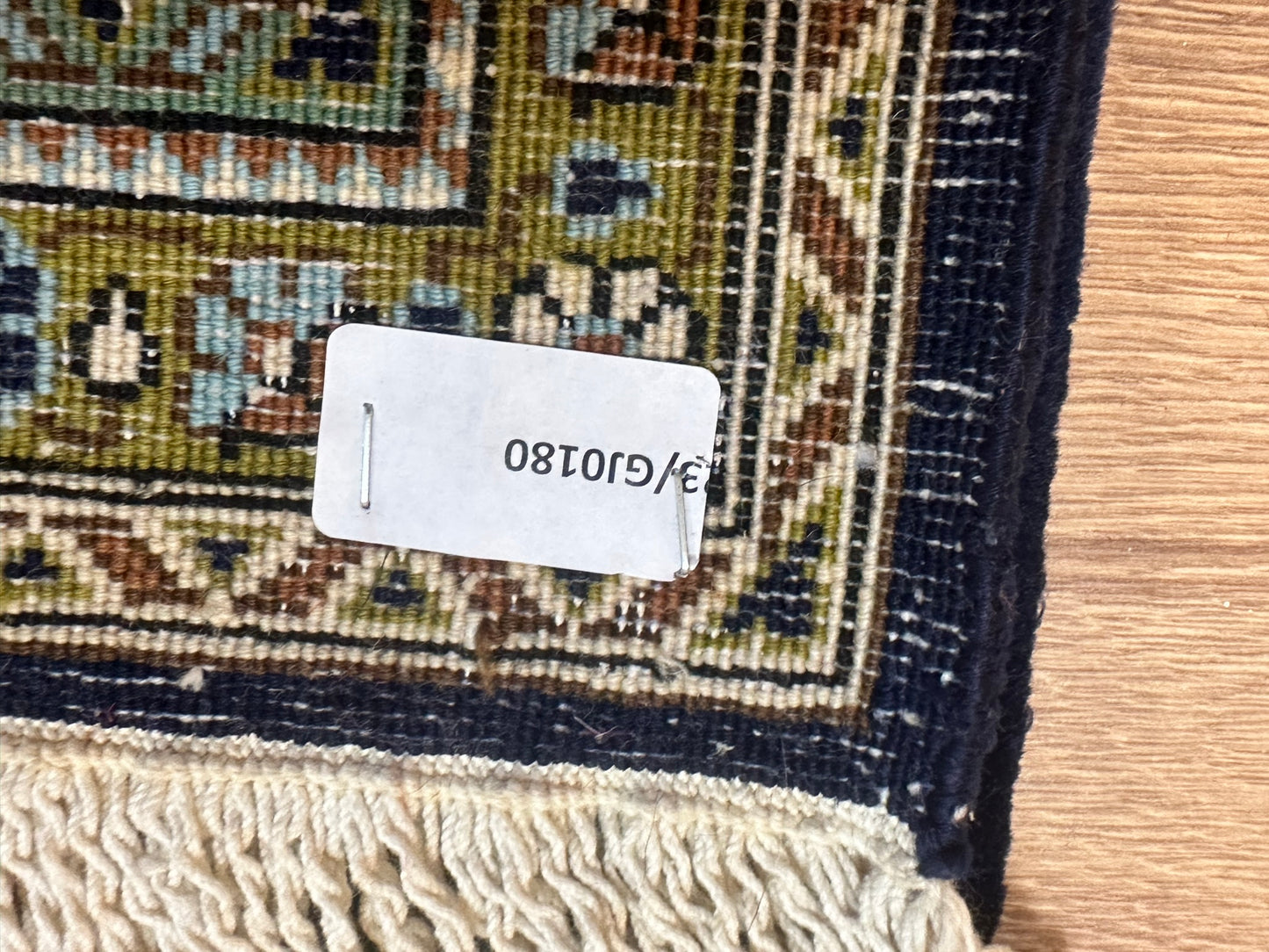 In unserem Onlineshop präsentieren wir Ihnen einen außergewöhnlichen handgeknüpften Perserteppich aus Ghom, gefertigt aus Wolle auf Seide und mit einem kunstvollen Lebensbaum-Muster. Dieser hochwertige Teppich befindet sich in einem brandneuen Zustand und misst 155x110cm. Die Artikelnummer dieses Kunstwerks lautet GJ0180.