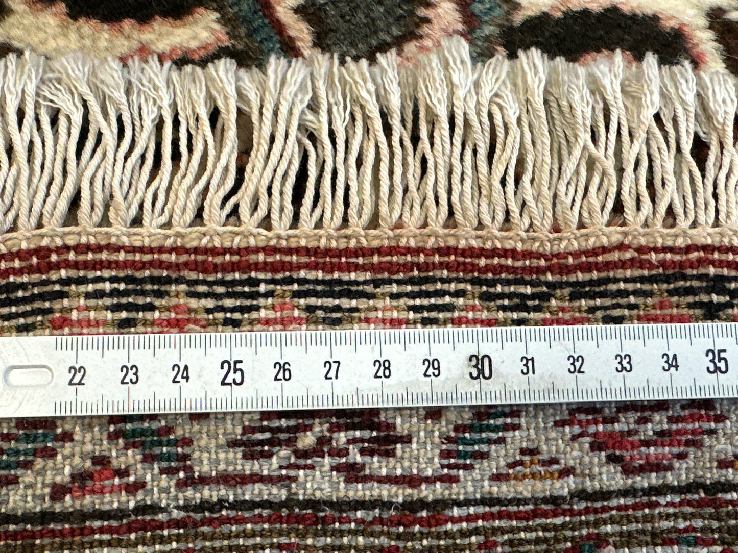 • Handgeknüpfte Präzision: Jeder Knoten dieses Teppichs wurde von erfahrenen Kunsthandwerkern in aufwendiger Handarbeit gefertigt, was seine Einzigartigkeit und Qualität unterstreicht.
