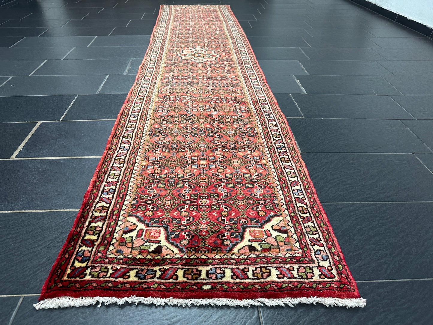 Handgeknüpfter Perser Orientteppich: Hamadan Läufer 384x82cm