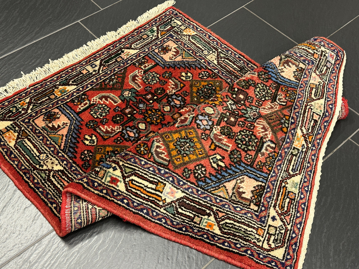 Hinweis: Jeder handgeknüpfte Teppich ist ein Unikat, daher können geringfügige Abweichungen im Muster, der Farbe und der Größe auftreten.