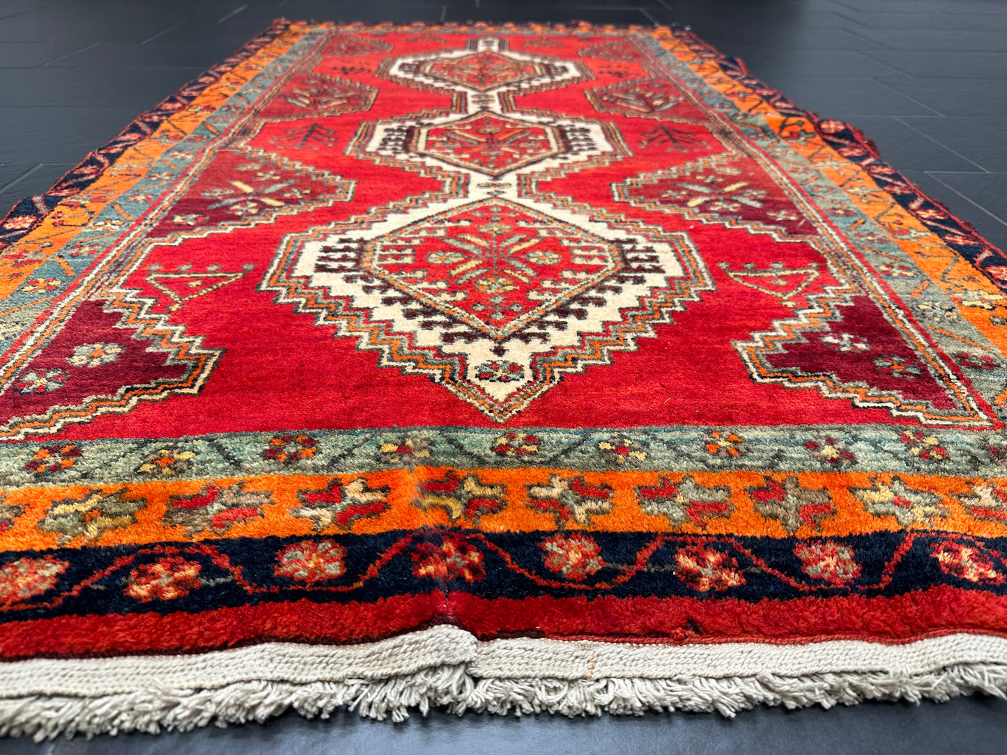 • Gebraucht, aber gut erhalten: Der Teppich befindet sich in einem gebrauchten, jedoch sehr gut erhaltenen Zustand. Die hochwertige Schurwolle sorgt nicht nur für eine angenehme Haptik, sondern auch für Langlebigkeit.