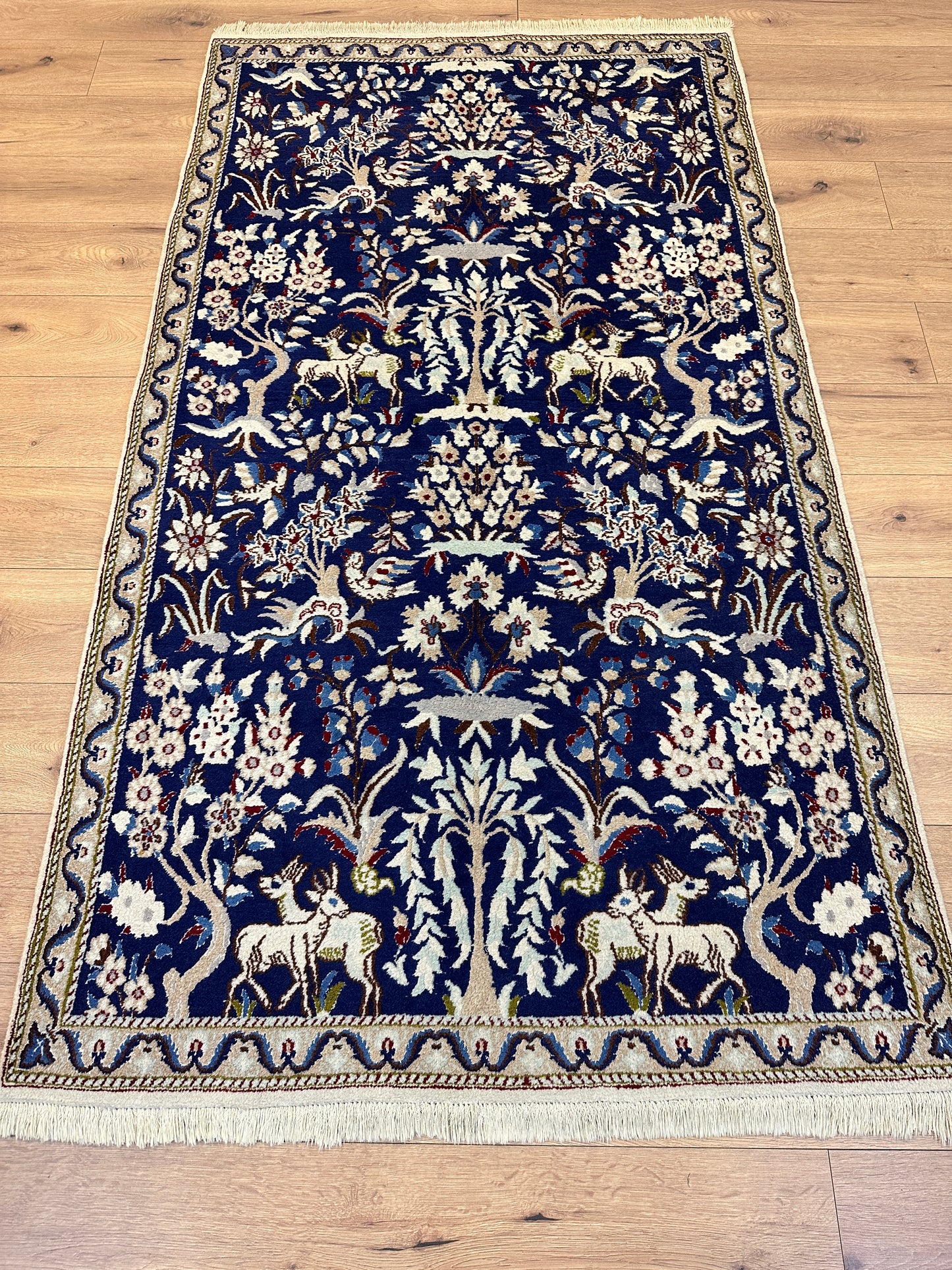 Handgeknüpfter Perser Orientteppich Nain mit Seide Lebensbaum 210x120 cm