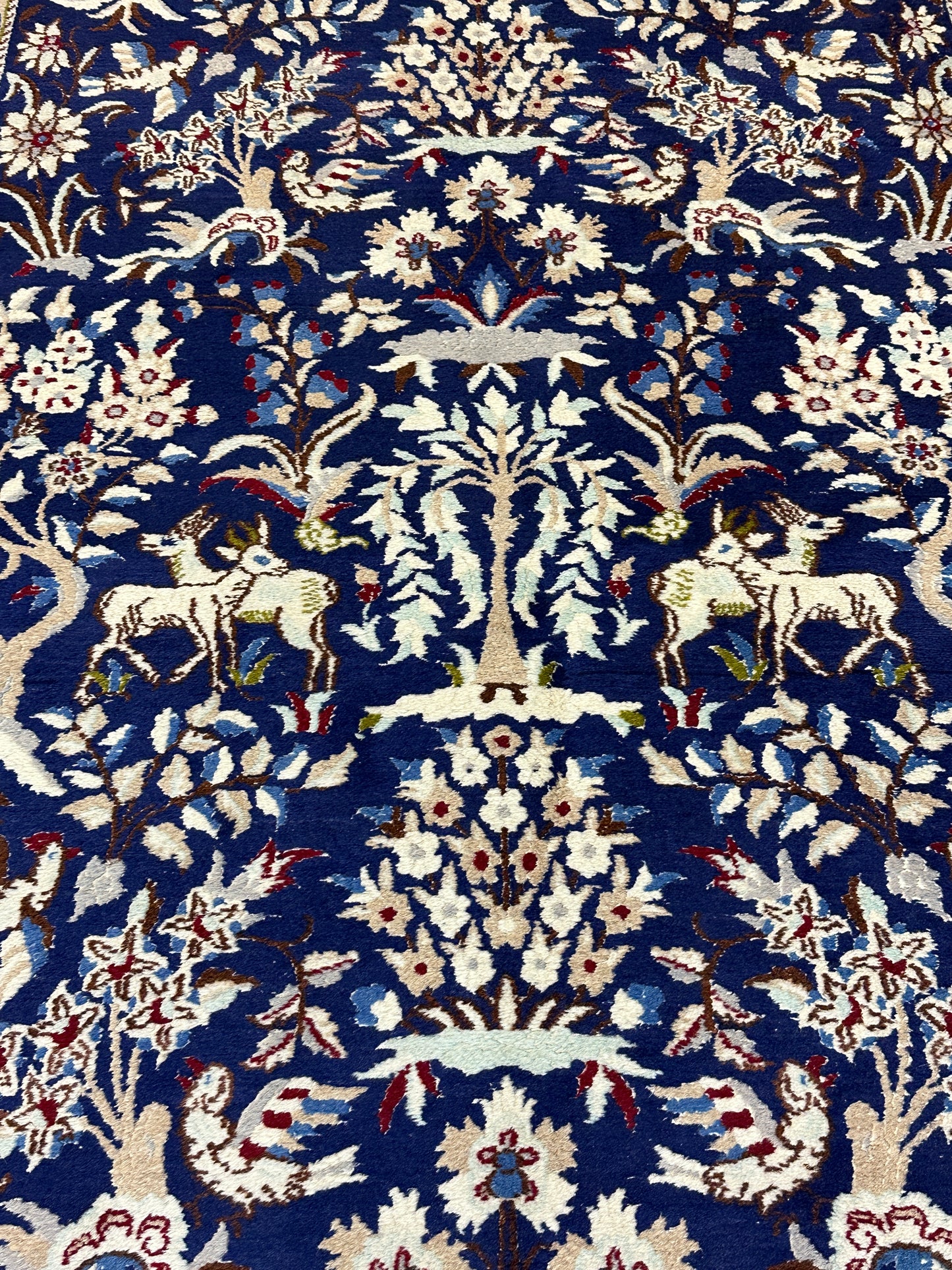 • Präzise Handarbeit: Jeder Knoten dieses Teppichs wurde von erfahrenen Handwerkern sorgfältig platziert, um die feinen Details des Lebensbaum-Musters zur Geltung zu bringen.