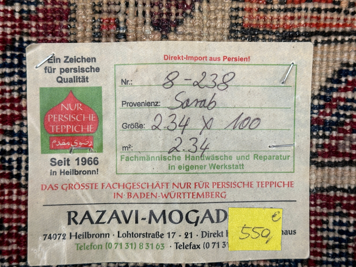 Handgeknüpfter Perser Orientteppich - Sarab Läufer 235x100cm
