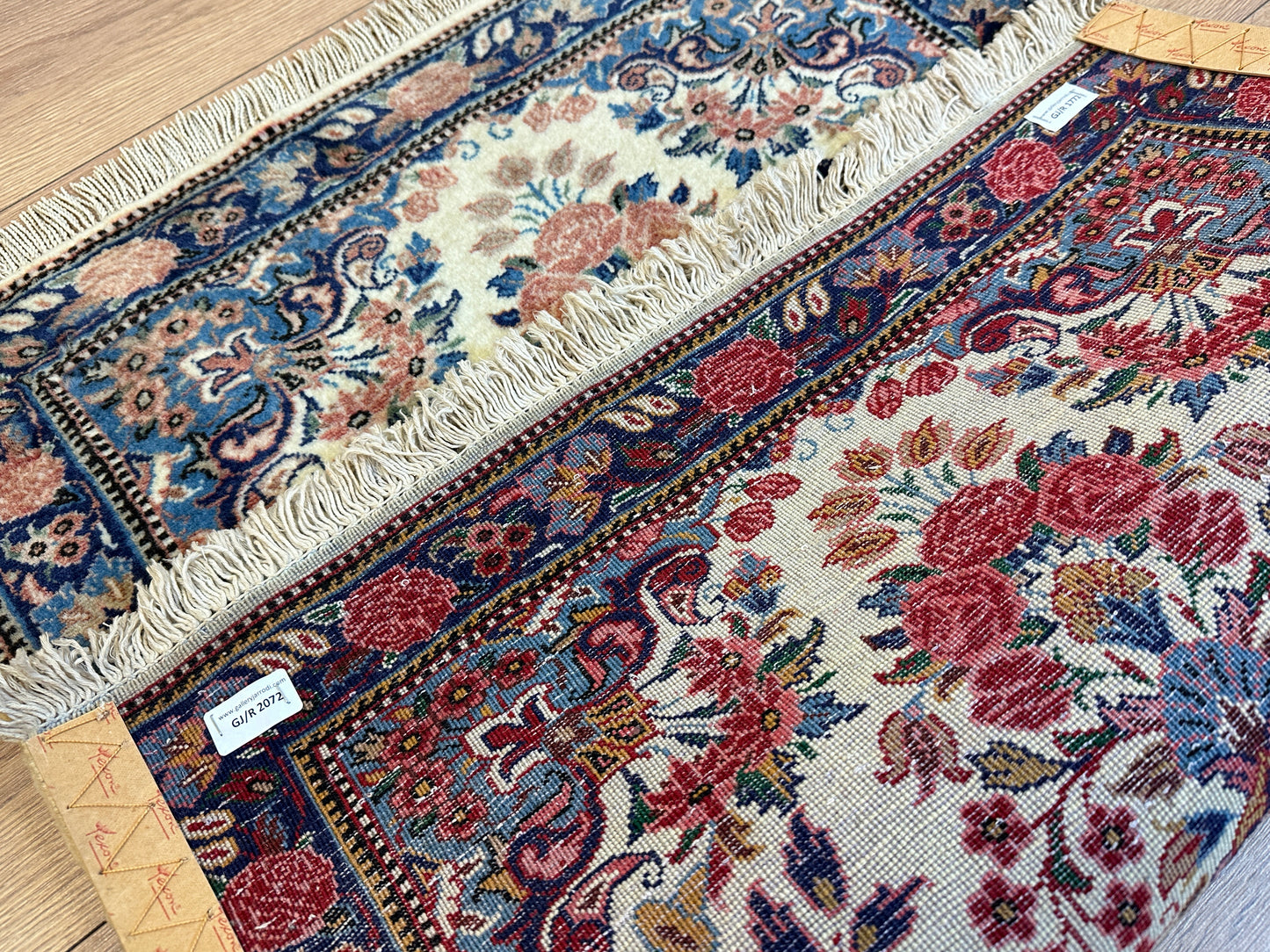 Dieser exzellent handgeknüpfte Perser Orientteppich mit den Maßen 99x68 cm und der Artikelnummer GJ/R 1772 ist in einem makellosen, neuen Zustand.