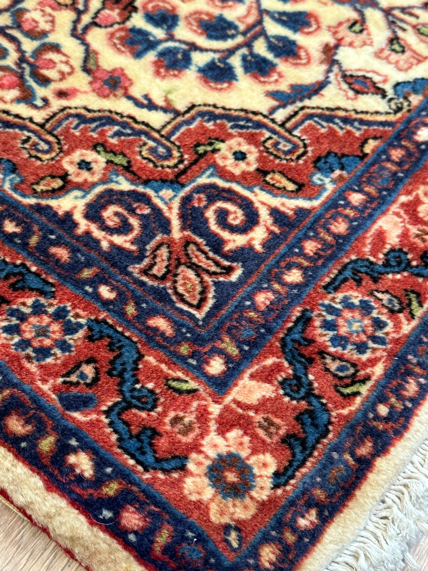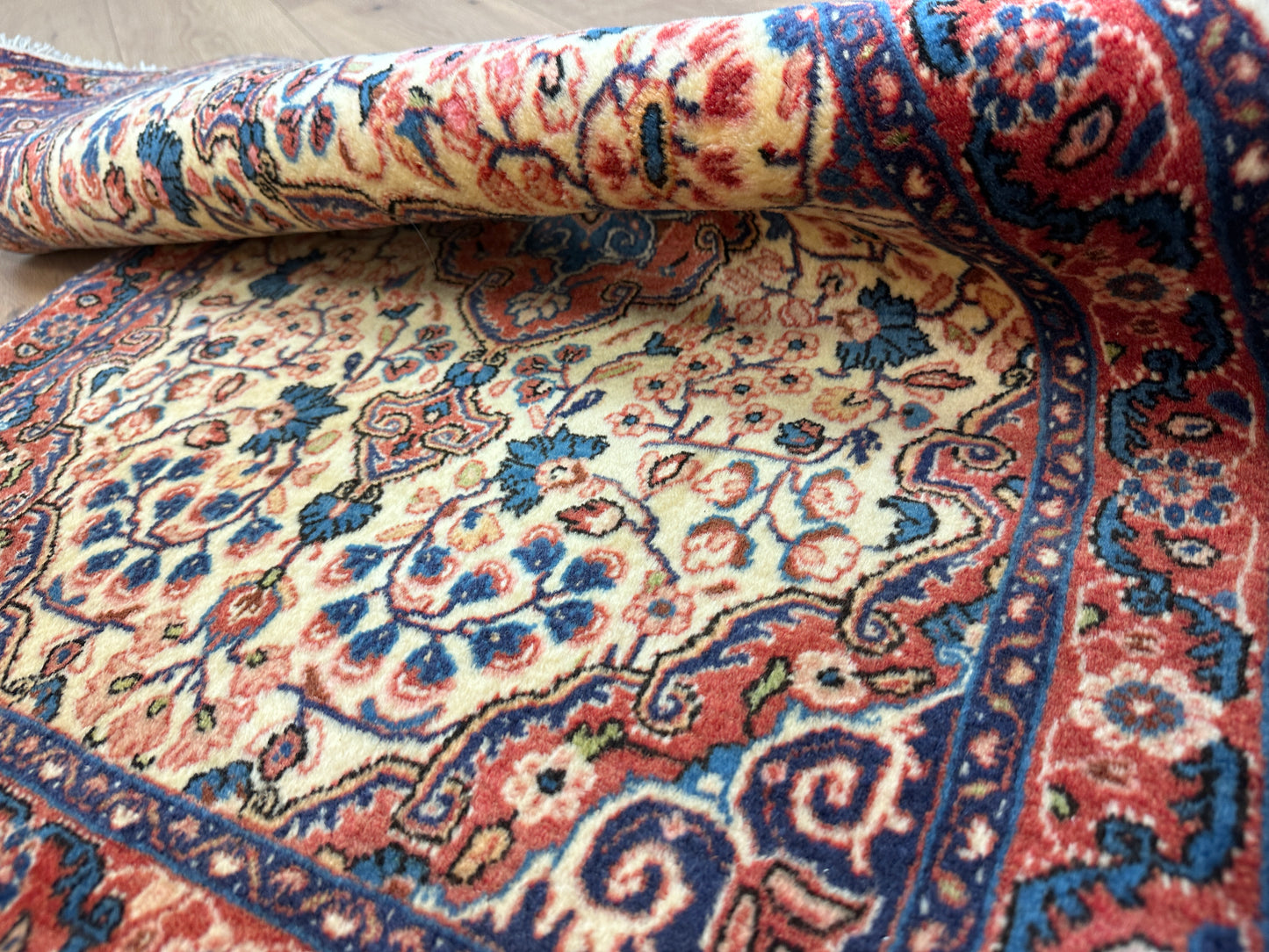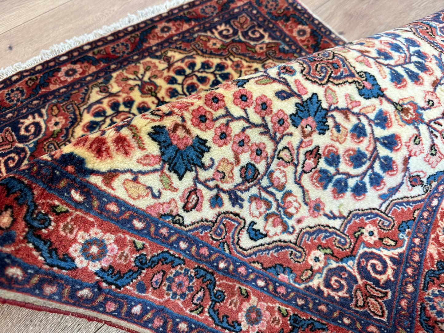 Hinweis: Aufgrund der Handarbeit kann es zu minimalen Variationen in Farbe und Muster kommen, was die Einzigartigkeit jedes Teppichs unterstreicht.