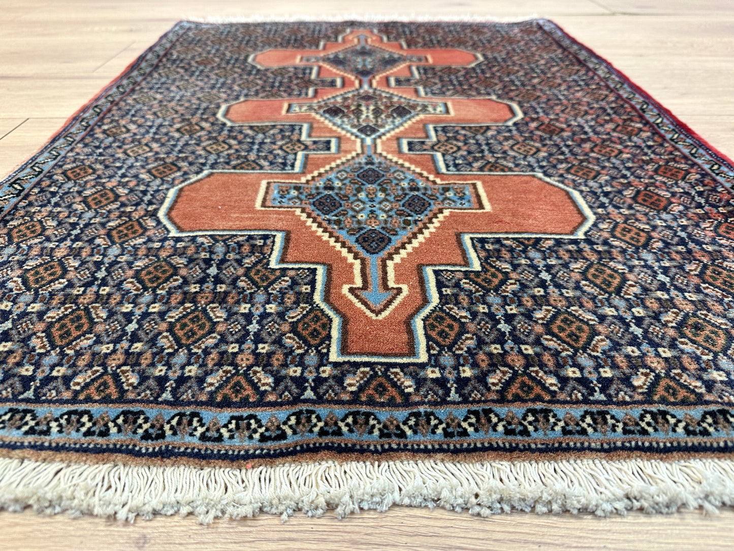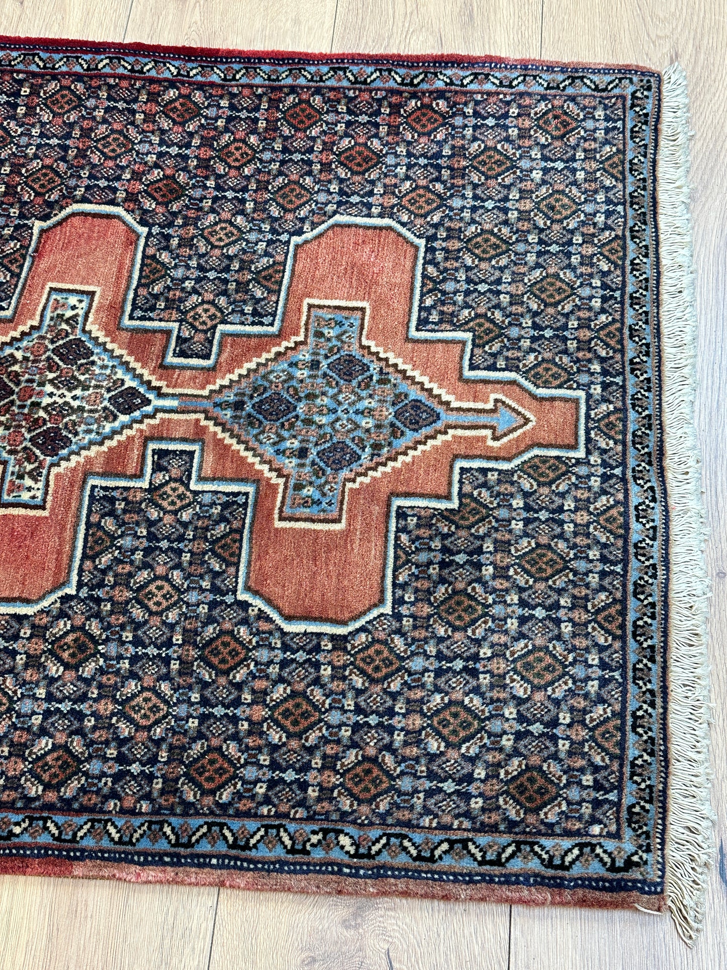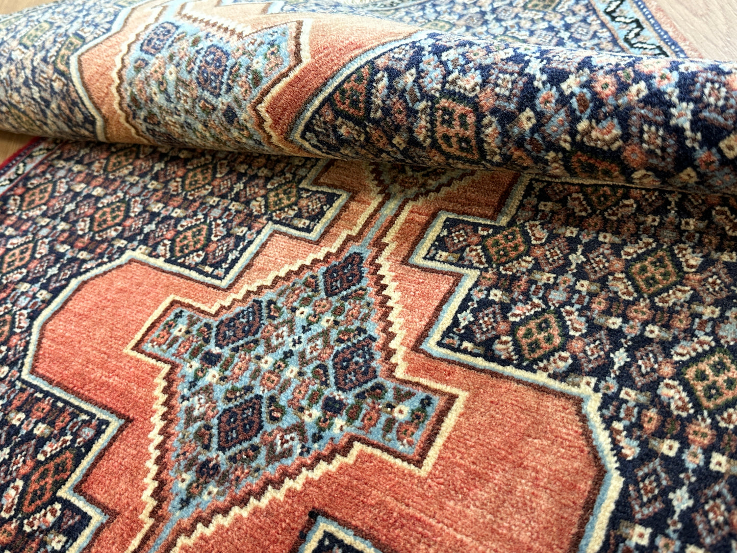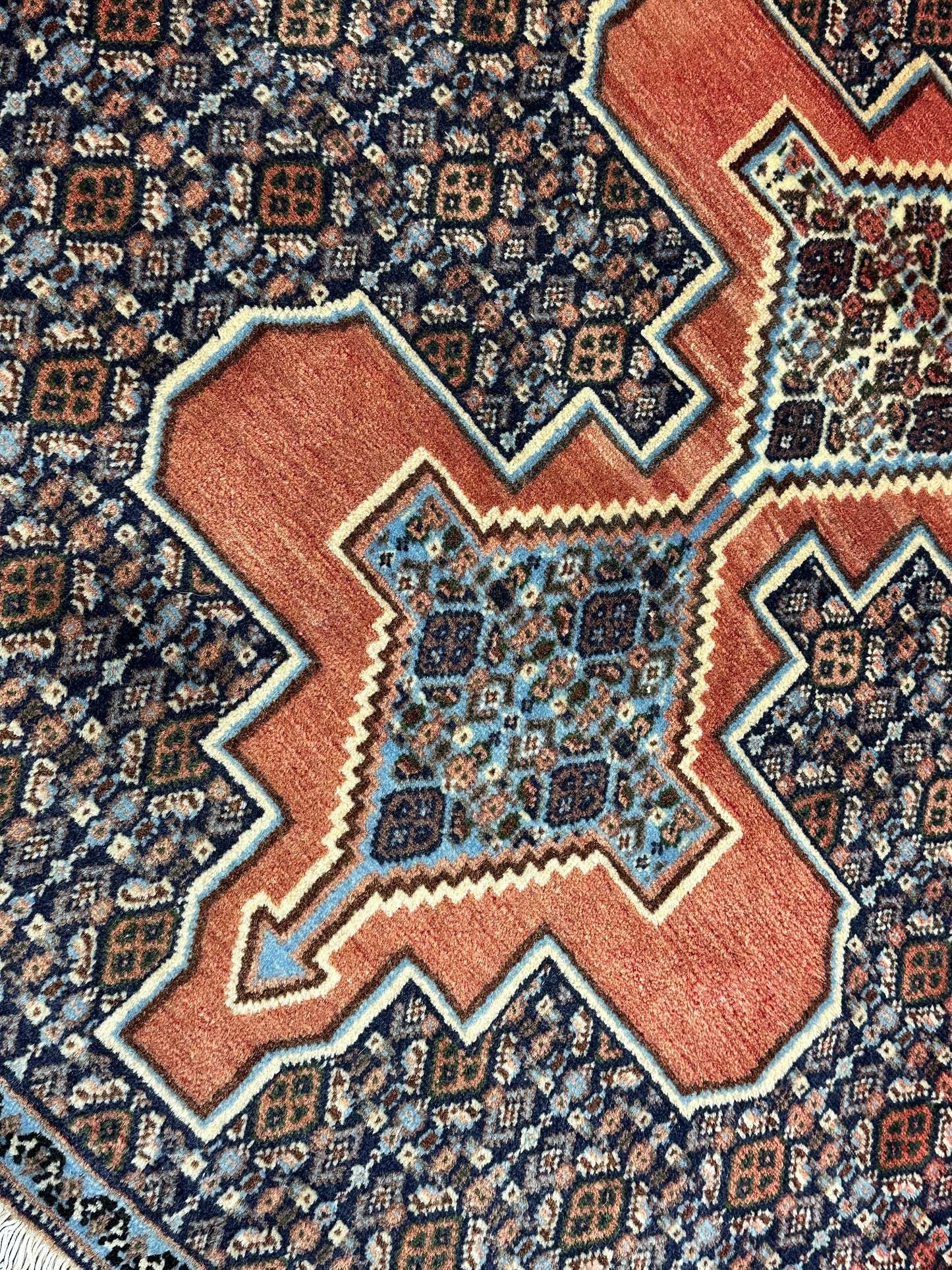 Handgeknüpfter Perser Orientteppich Senneh Bidjar Art Deco Naturfarben97x73 cm