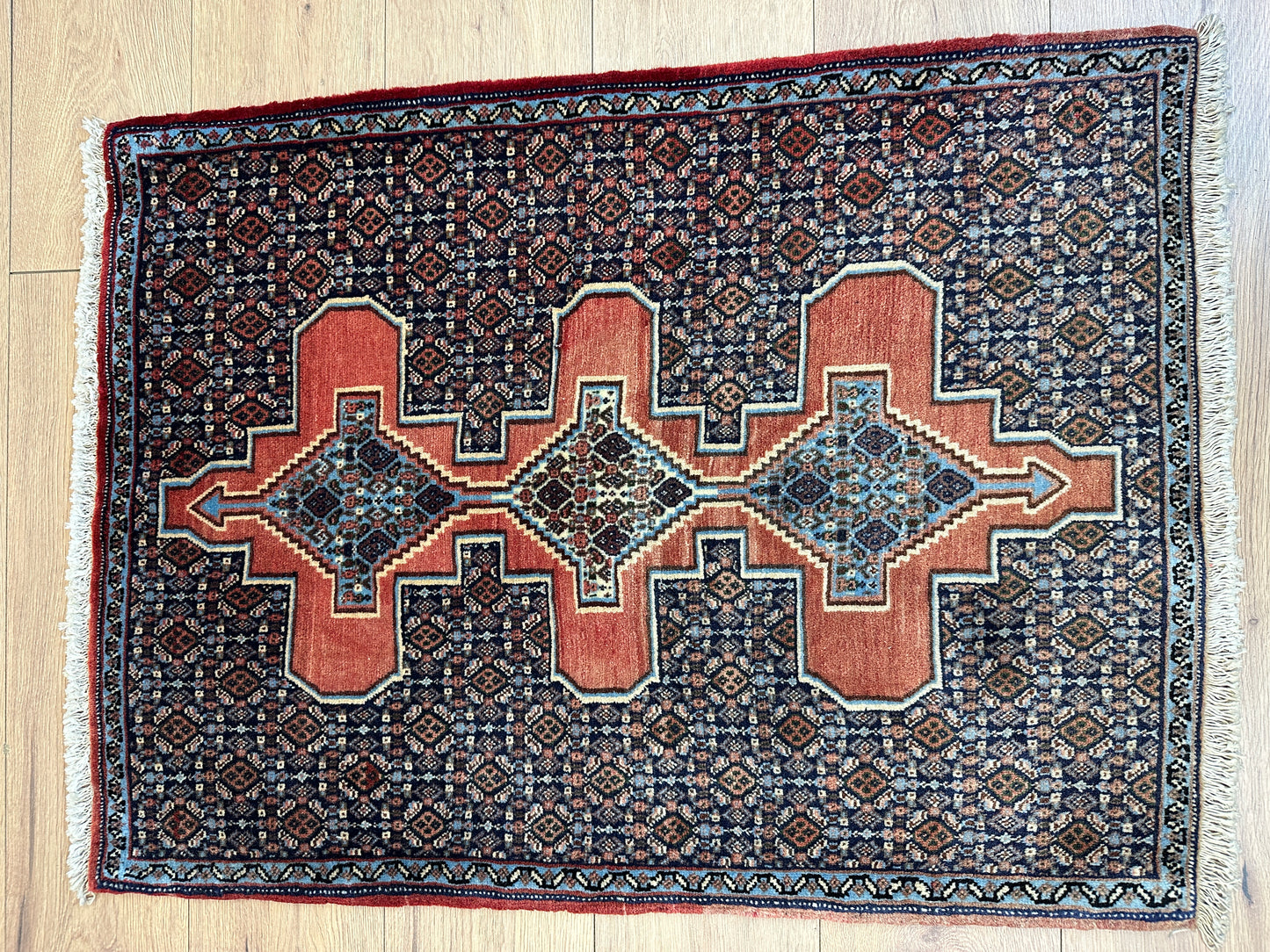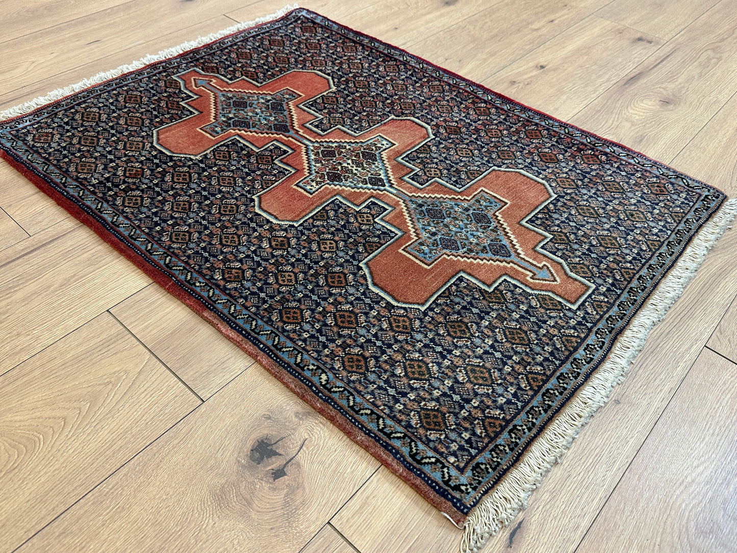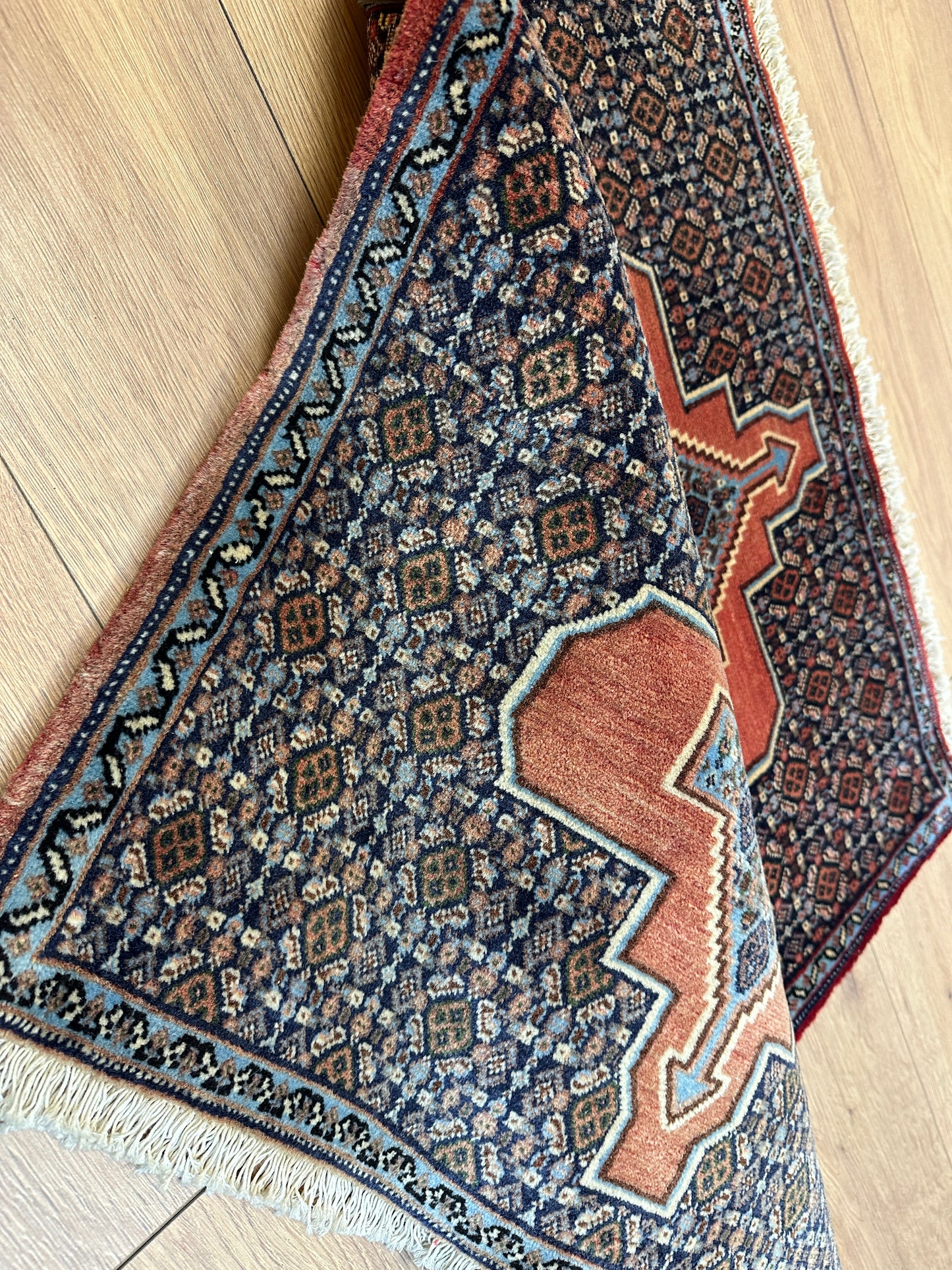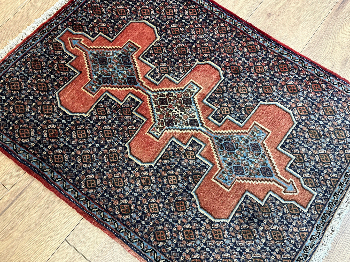 Handgeknüpfter Perser Orientteppich Senneh Bidjar Art Deco Naturfarben97x73 cm