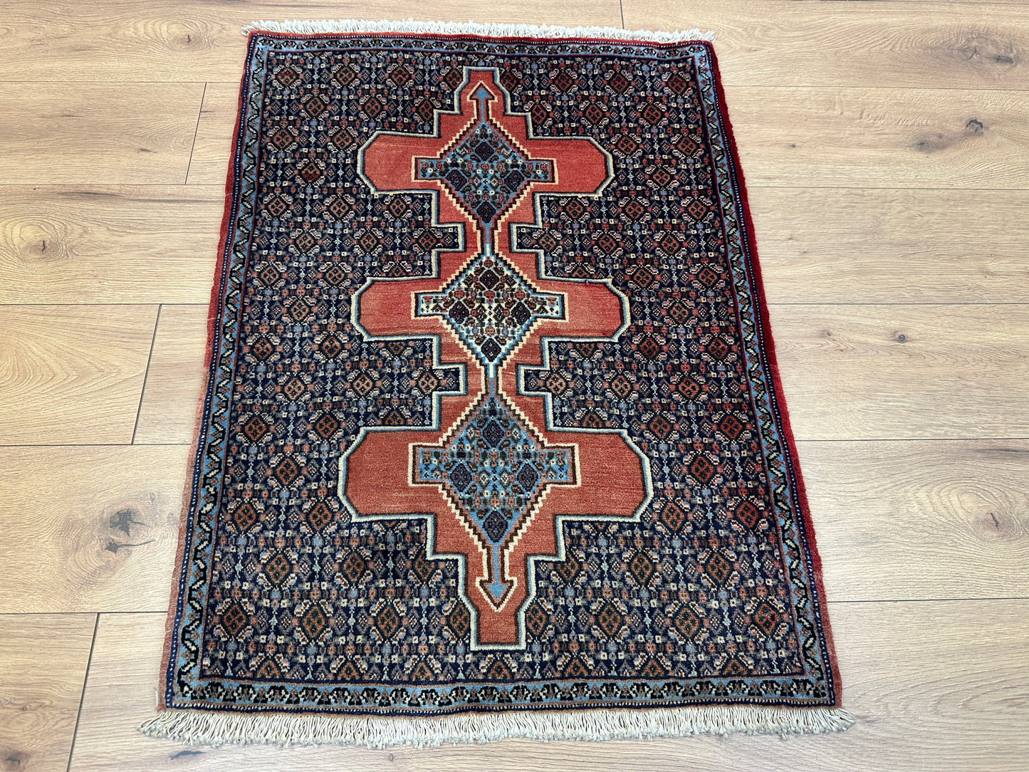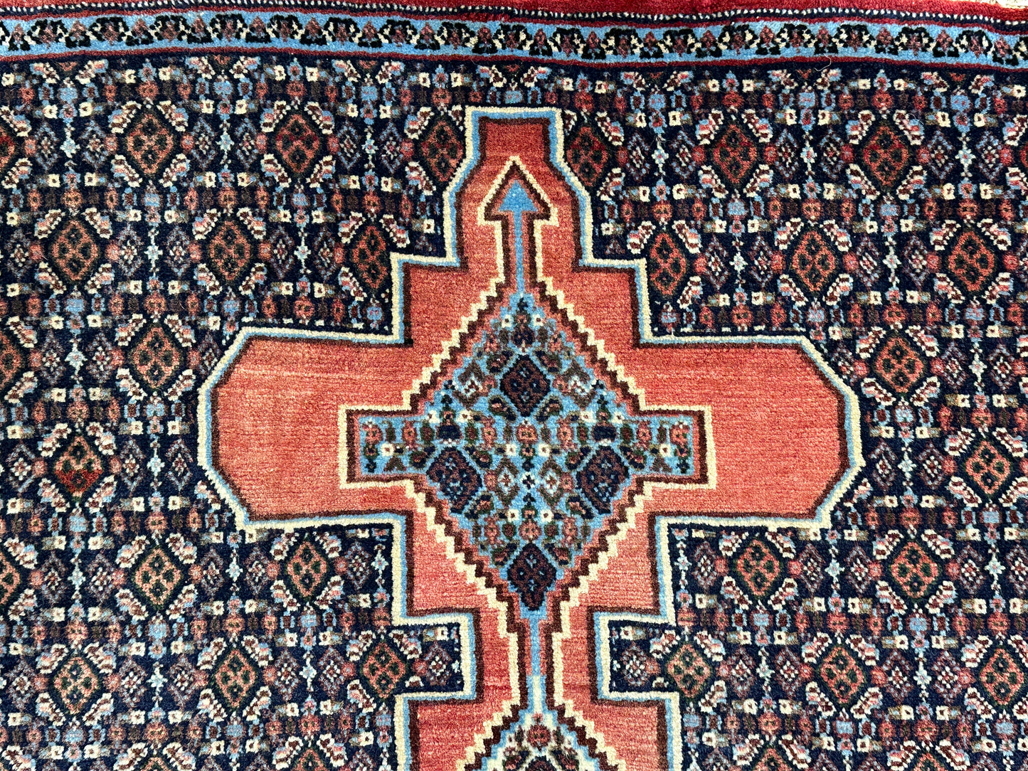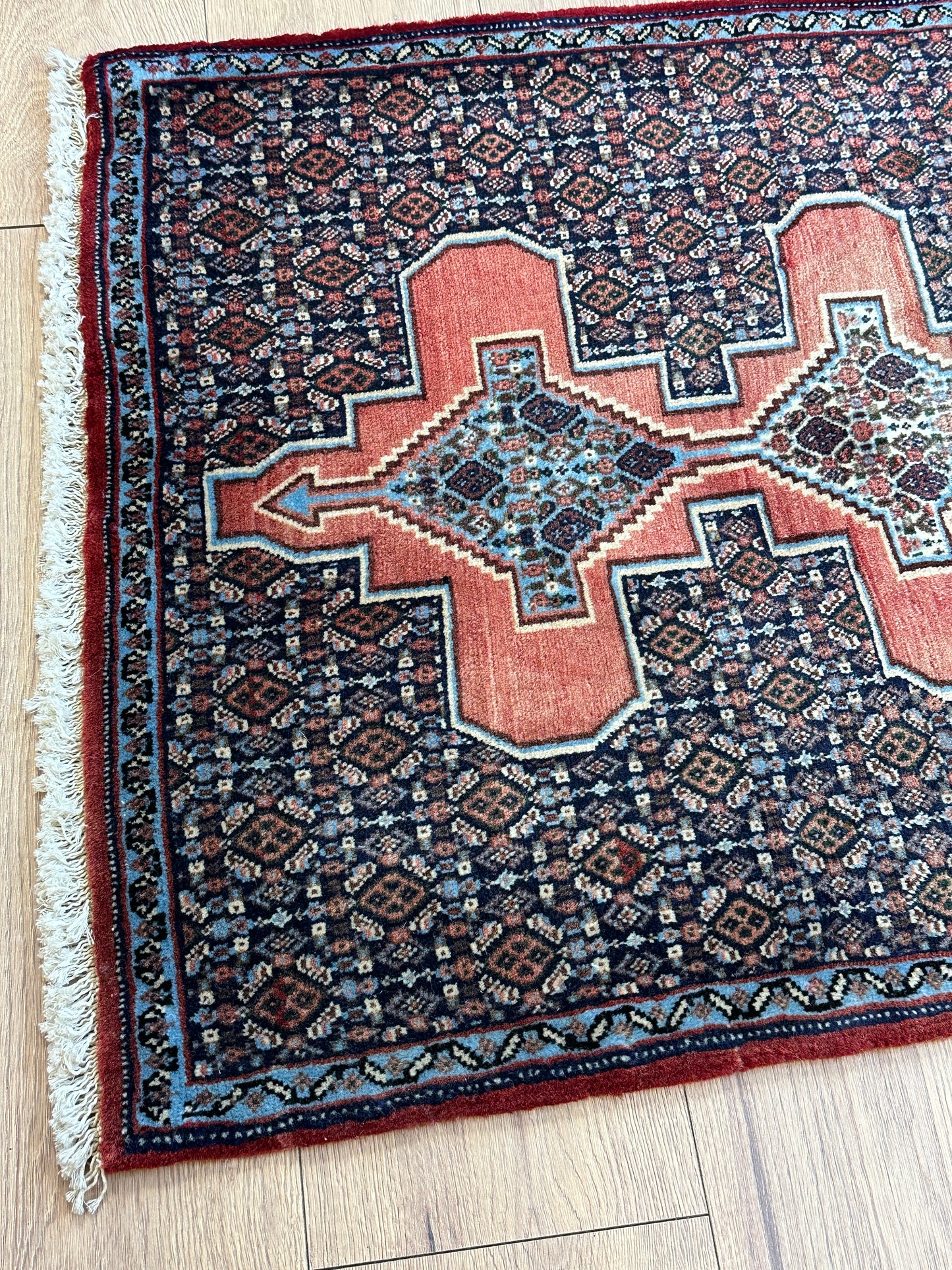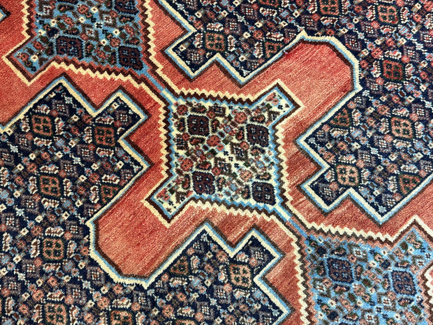 Handgeknüpfter Perser Orientteppich Senneh Bidjar Art Deco Naturfarben97x73 cm