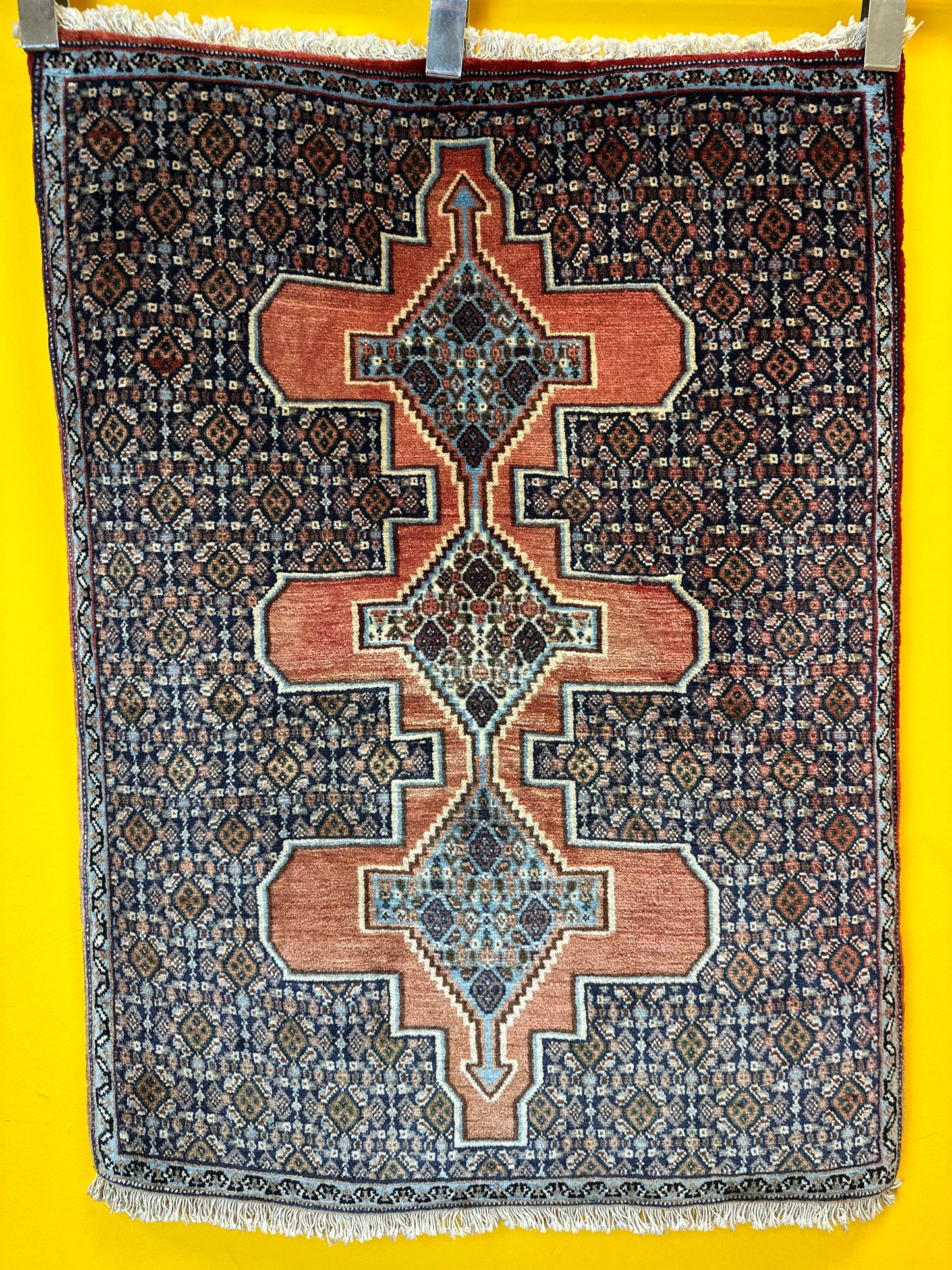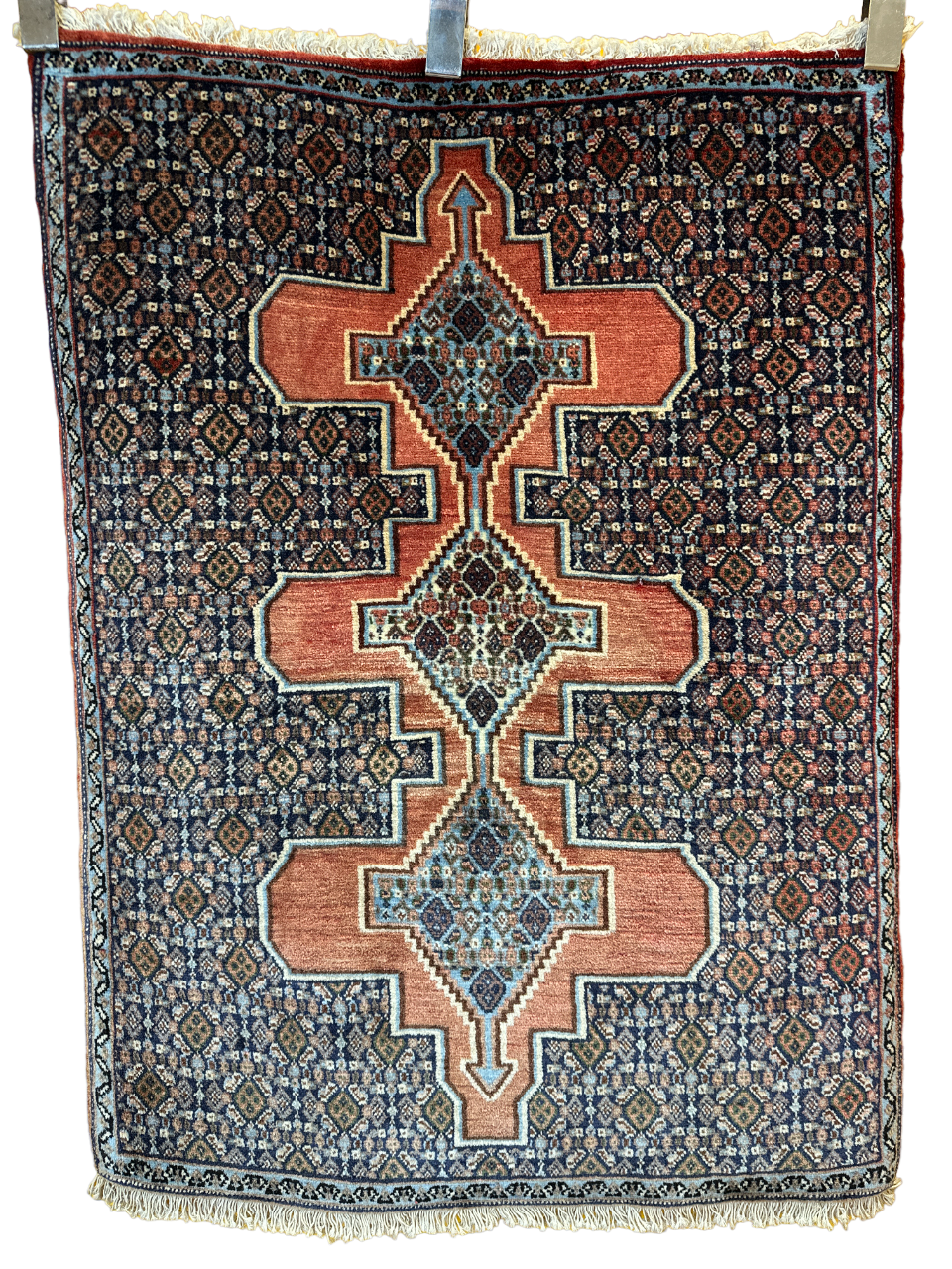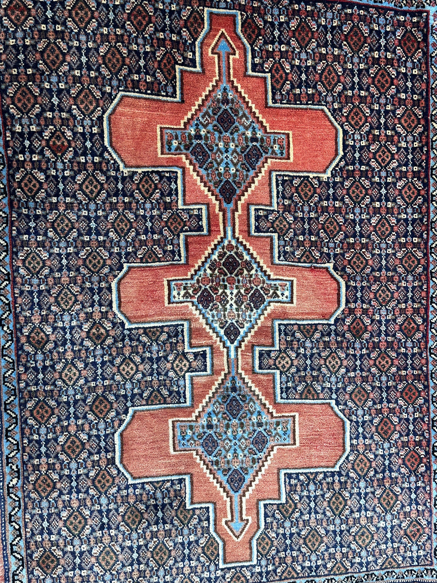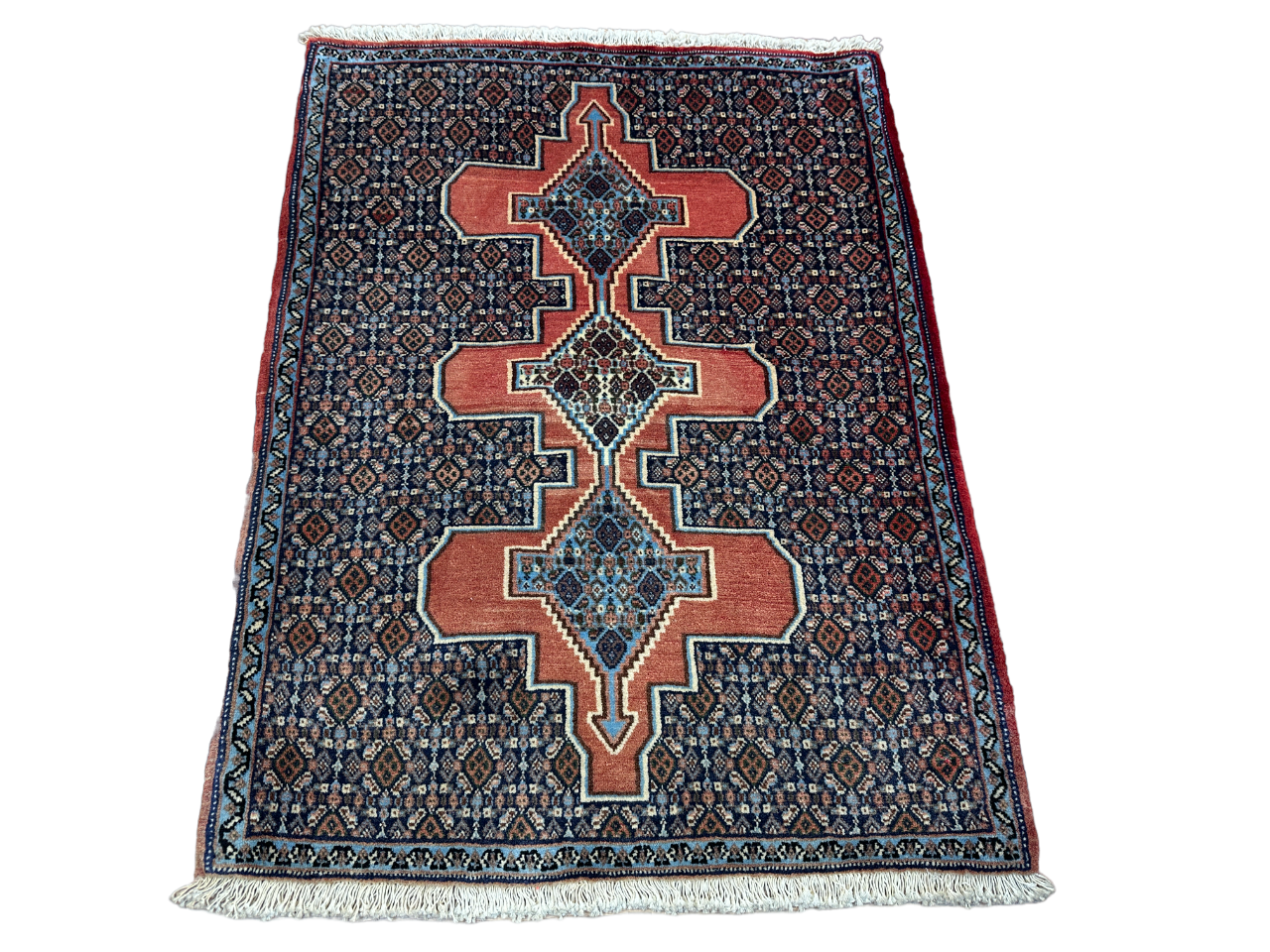 Handgeknüpfter Perser Orientteppich Senneh Bidjar Art Deco Naturfarben97x73 cm