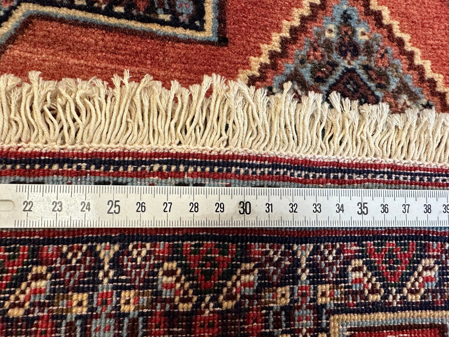 Hinweis: Aufgrund der Handarbeit kann es zu minimalen Variationen in Farbe und Muster kommen, was die Einzigartigkeit jedes Teppichs unterstreicht.