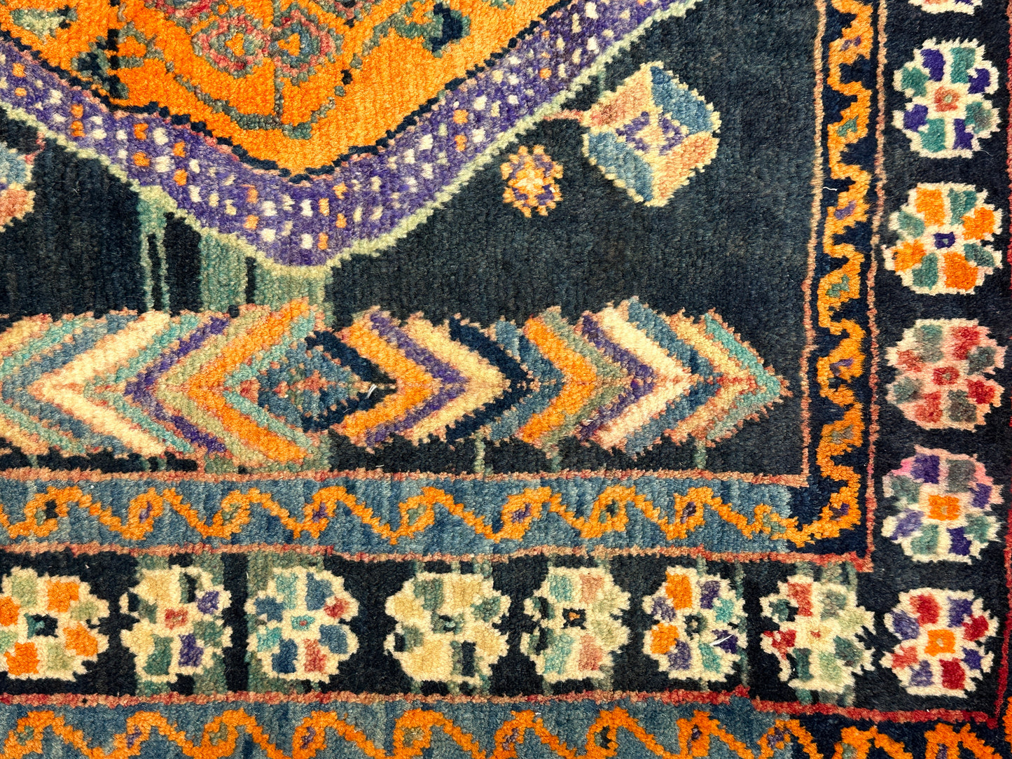 • Shiraz Bachtiar Kazak Design: Die kraftvollen Muster und die lebendige Farbpalette dieses Teppichs spiegeln das traditionelle Shiraz Bachtiar Kazak-Design wider, das Ihrem Raum einen Hauch von kulturellem Reichtum verleiht.