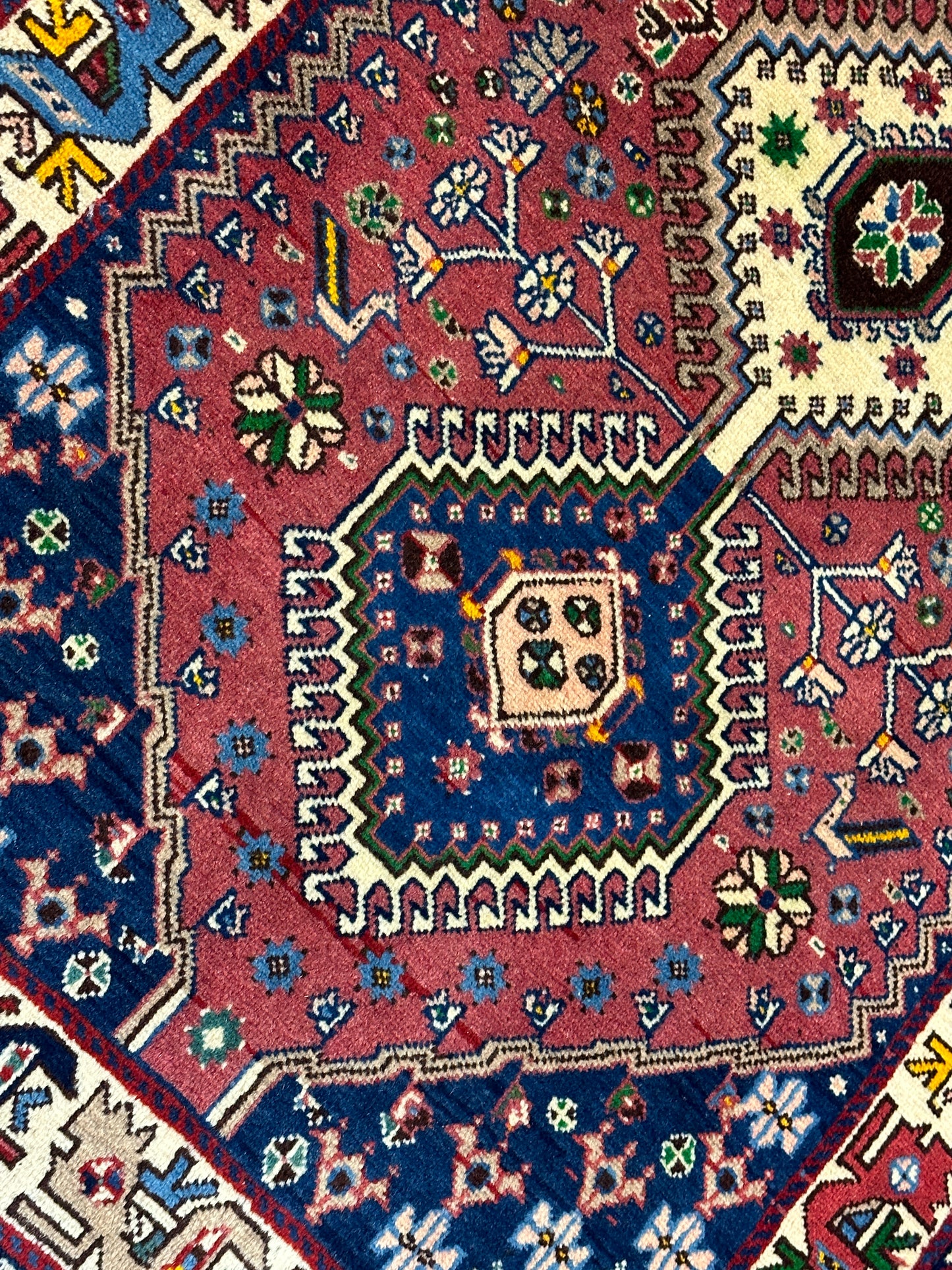 Charakteristisches Yalameh-Design: Die faszinierenden Muster und warmen Farben spiegeln die kulturelle Geschichte und Tradition des Yalameh-Teppichs wider, strahlend in zeitloser Eleganz.