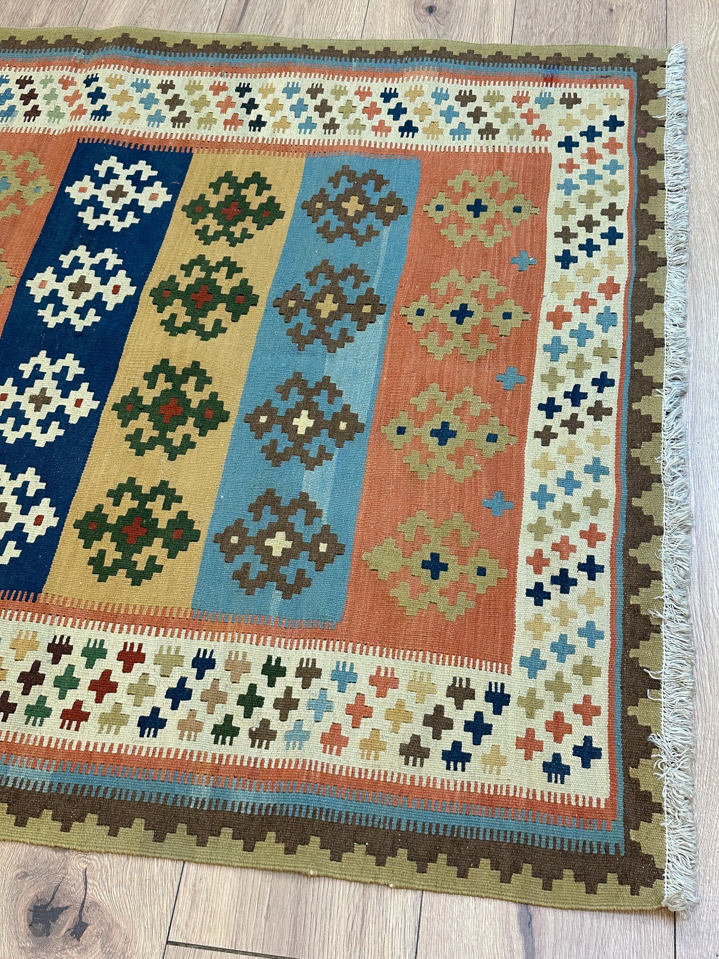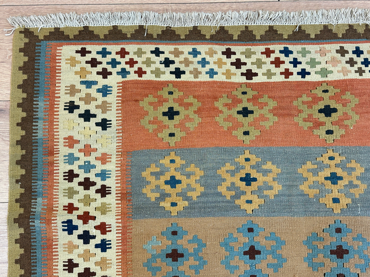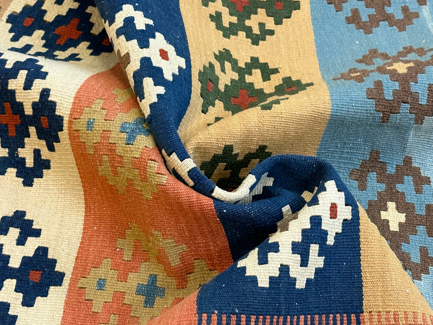 Erleben Sie die Faszination der persischen Teppichkunst mit diesem einzigartigen Gaschgai Kelim. Bestellen Sie noch heute und lassen Sie sich von der zeitlosen Schönheit dieses Kunstwerks begeistern, das nicht nur den Raum schmückt, sondern auch eine Geschichte der Handwerkskunst und Tradition erzählt.