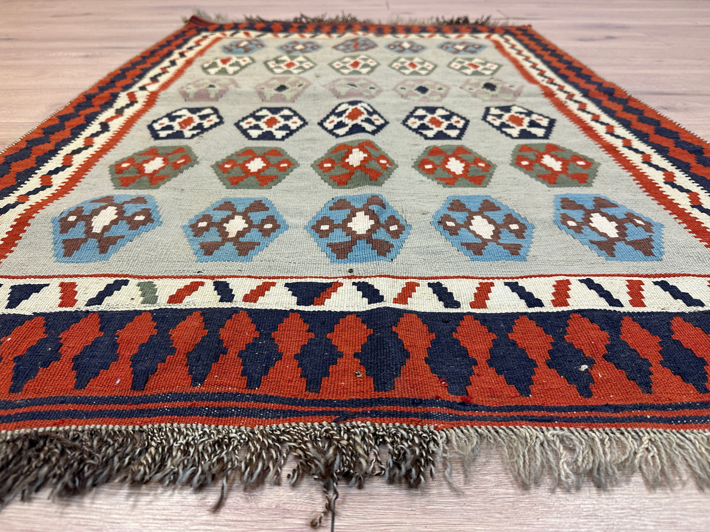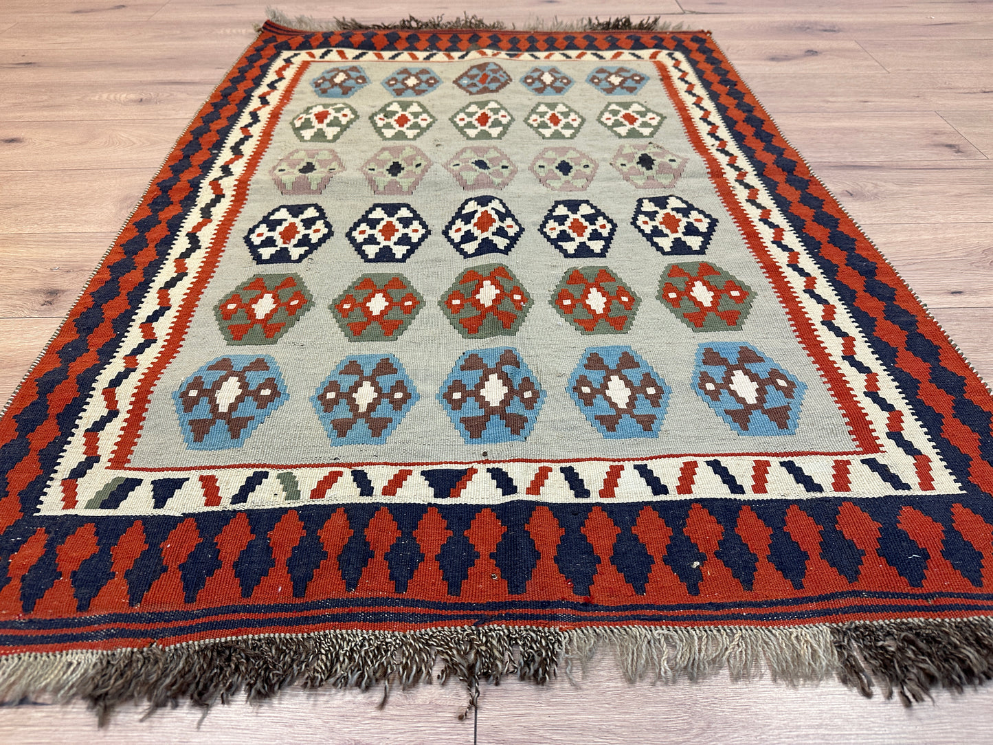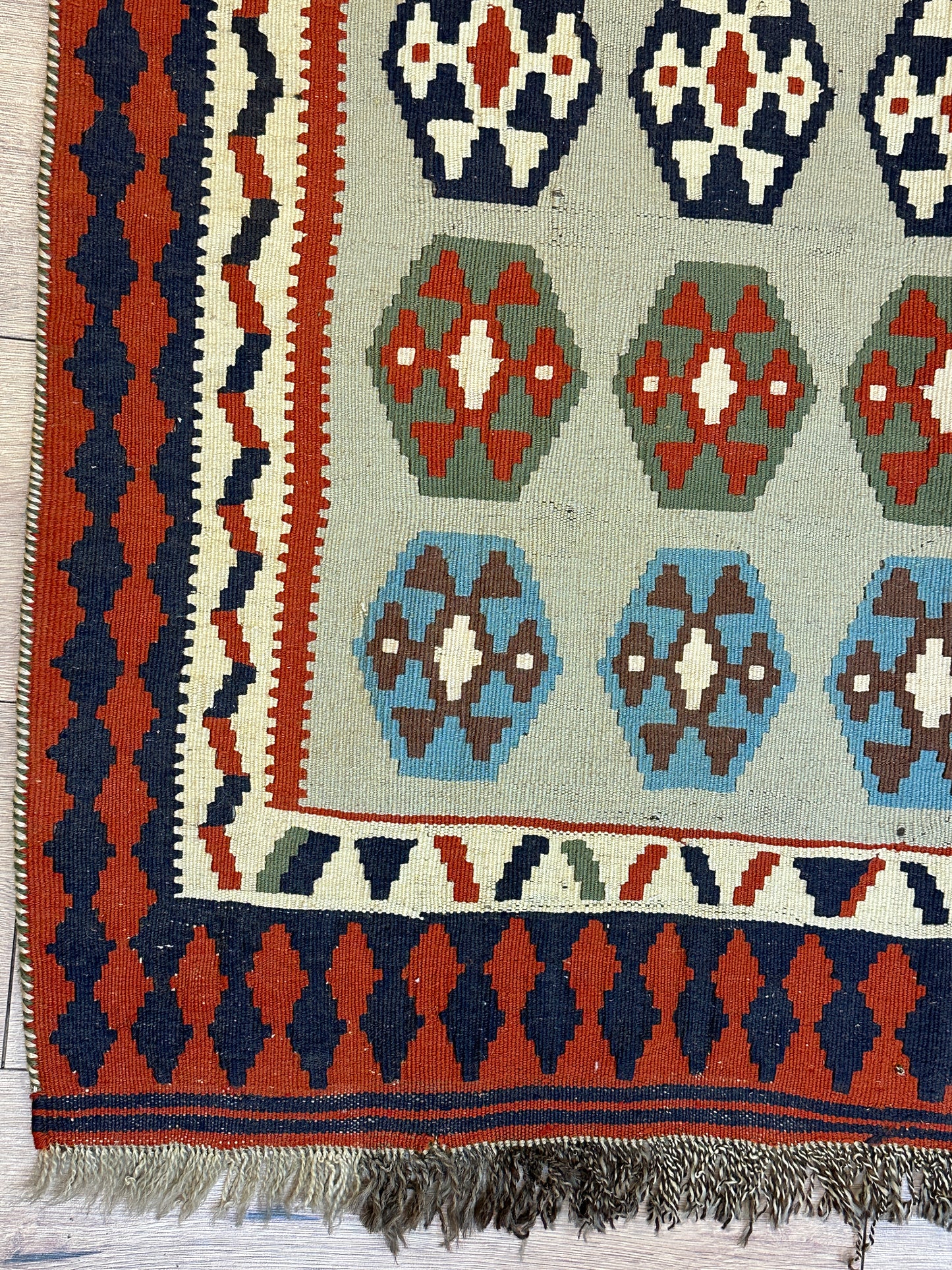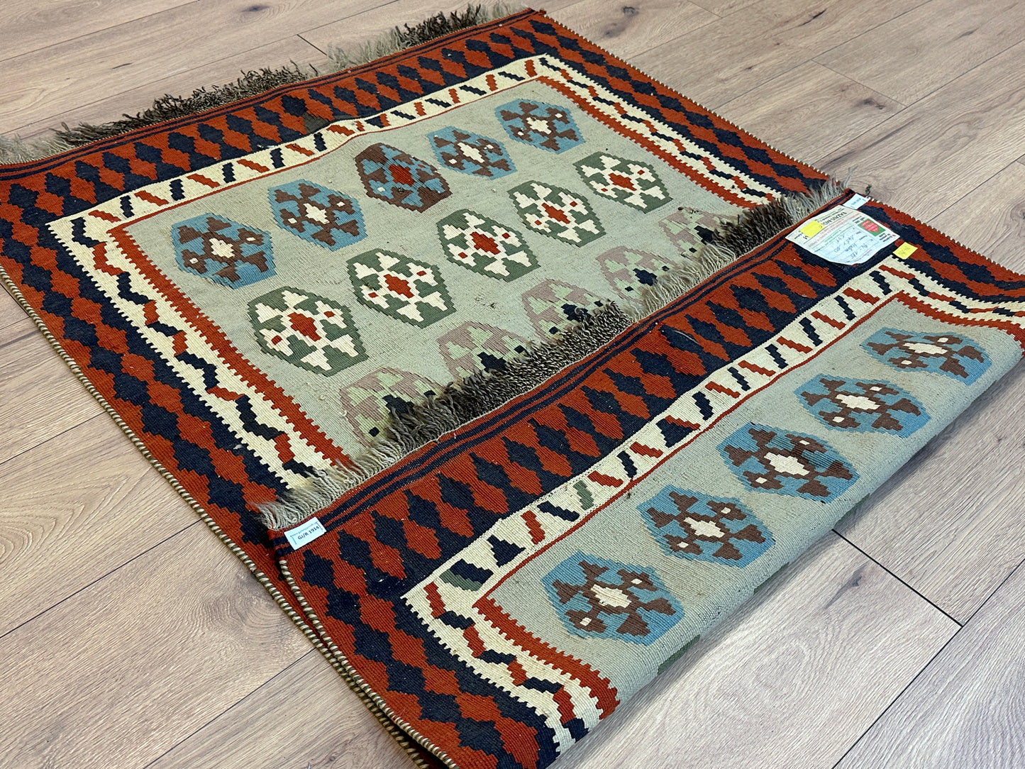 Erleben Sie die Faszination der persischen Teppichkunst mit diesem einzigartigen Gaschgai Kelim. Bestellen Sie noch heute und lassen Sie sich von der zeitlosen Schönheit dieses Kunstwerks begeistern, das nicht nur den Raum schmückt, sondern auch eine Geschichte der Handwerkskunst und Tradition erzählt.