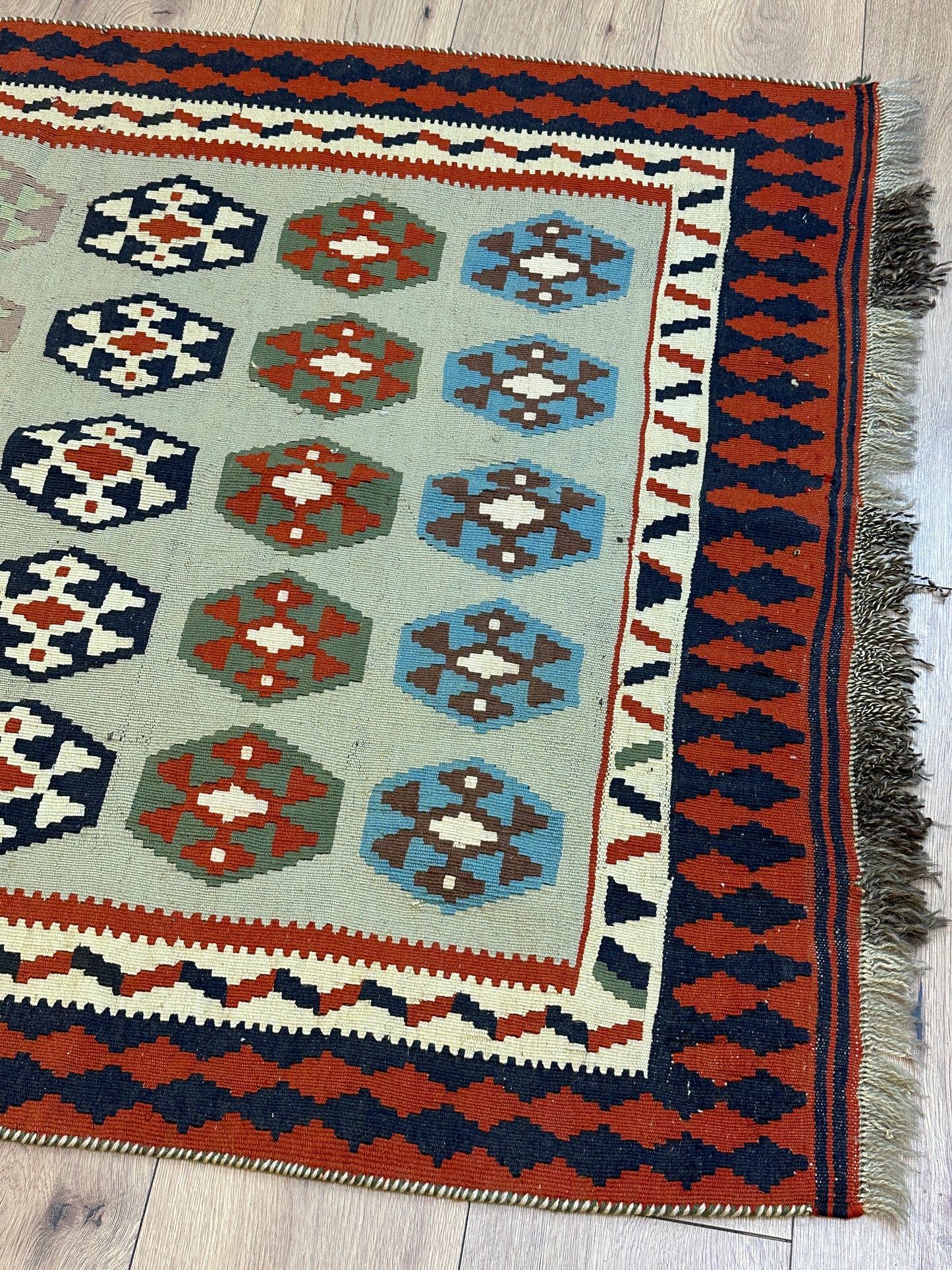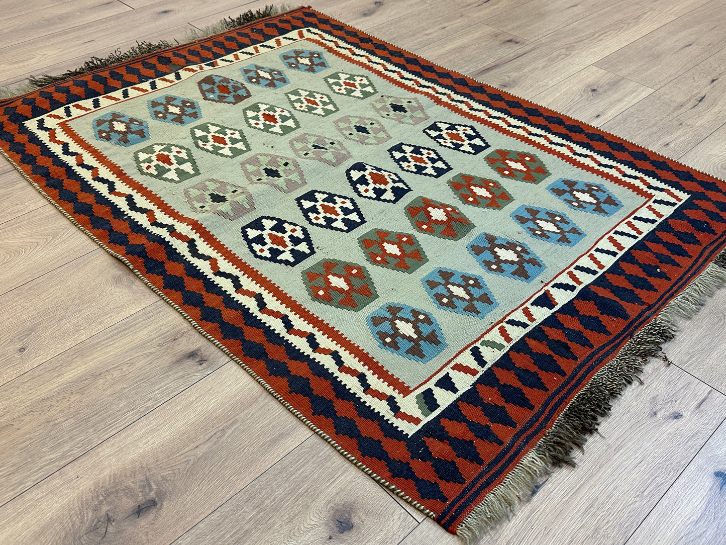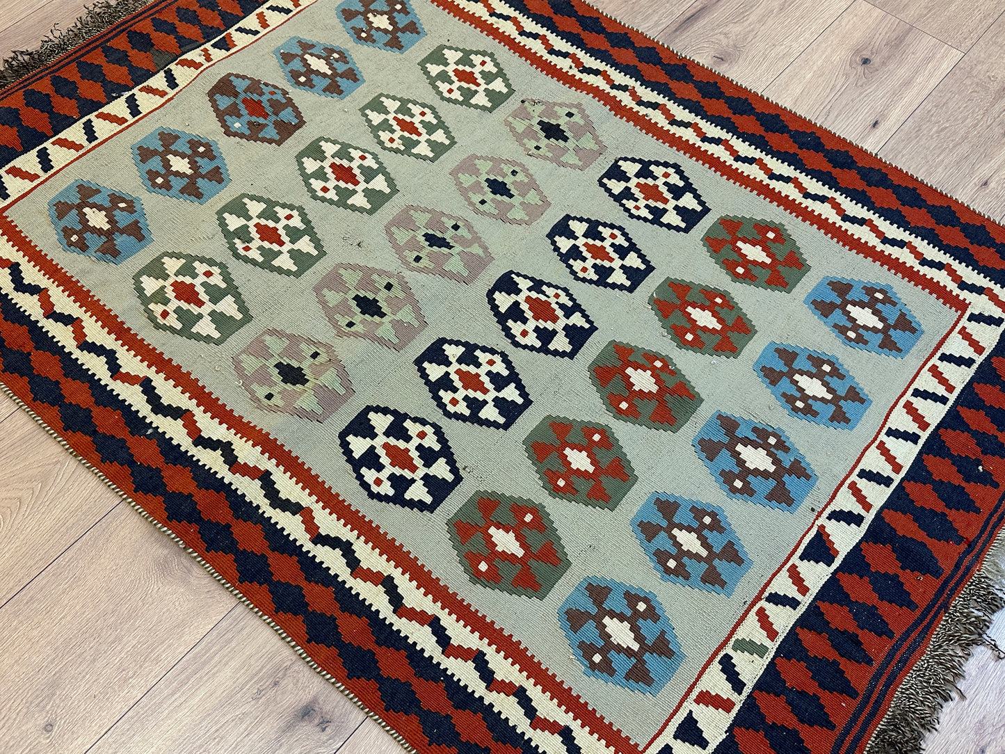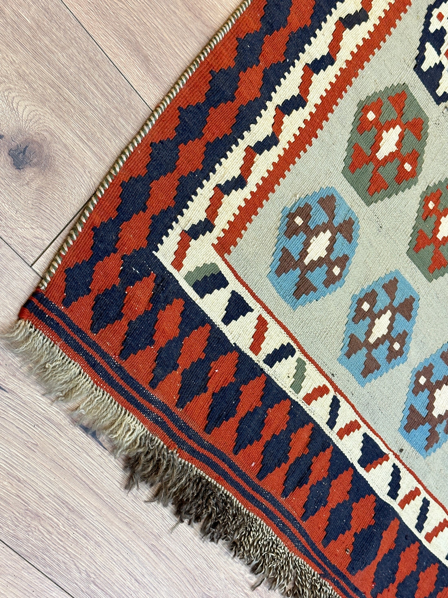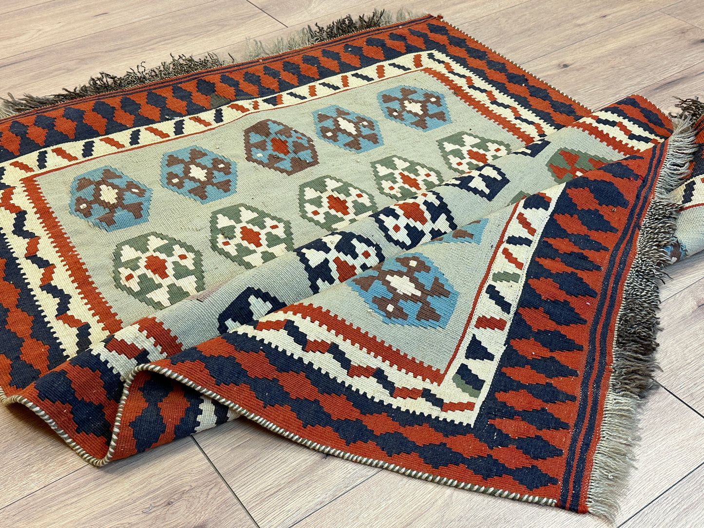Erleben Sie die Faszination der persischen Teppichkunst mit diesem einzigartigen Gaschgai Kelim. Bestellen Sie noch heute und lassen Sie sich von der zeitlosen Schönheit dieses Kunstwerks begeistern, das nicht nur den Raum schmückt, sondern auch eine Geschichte der Handwerkskunst und Tradition erzählt.