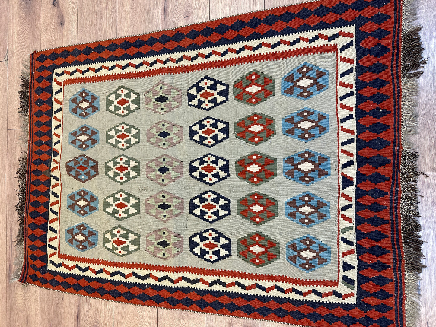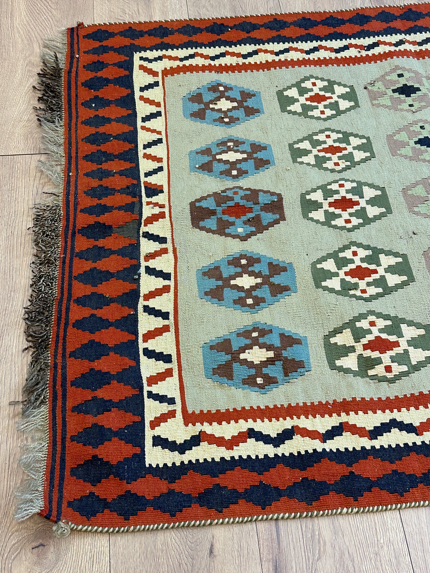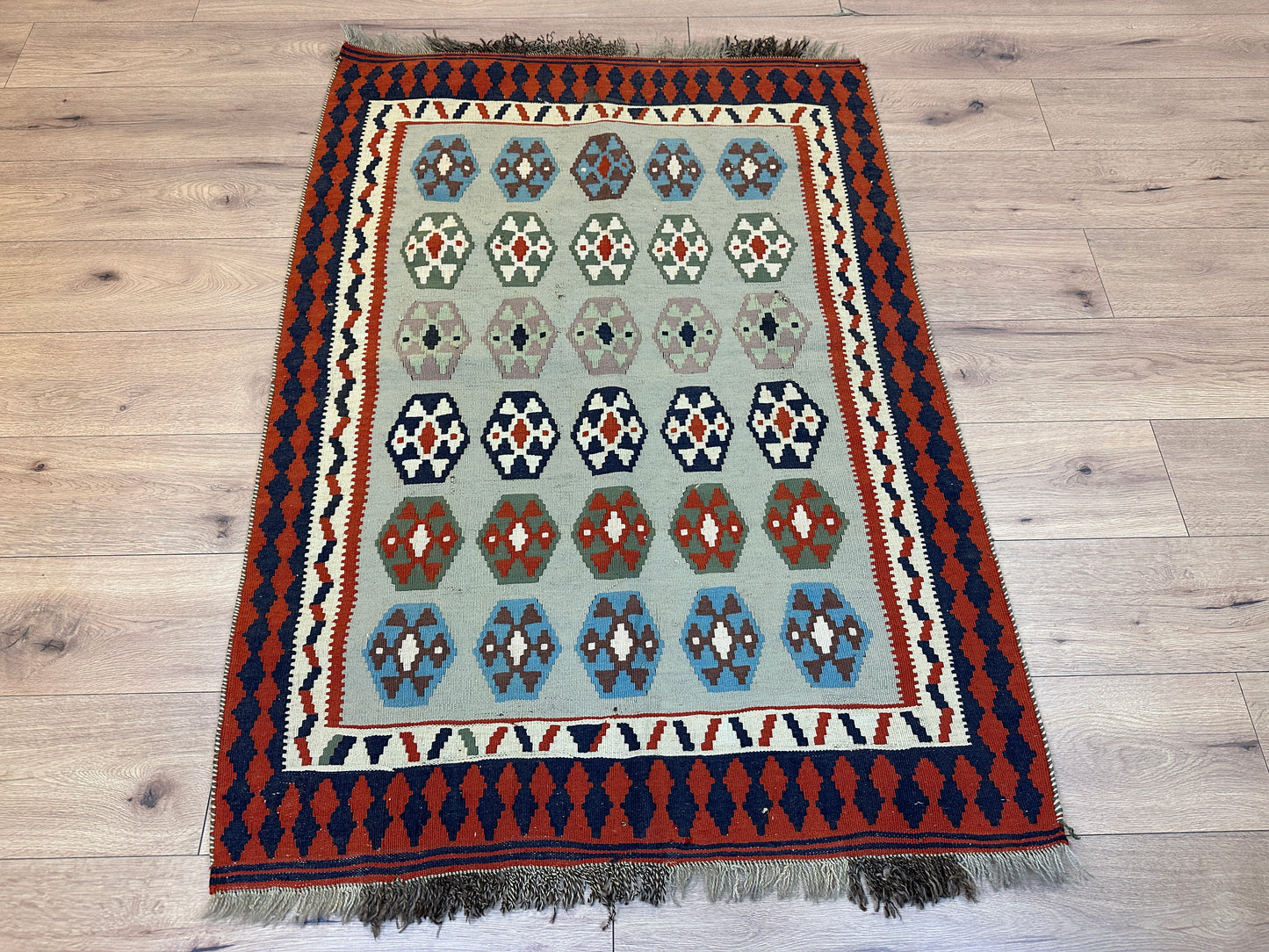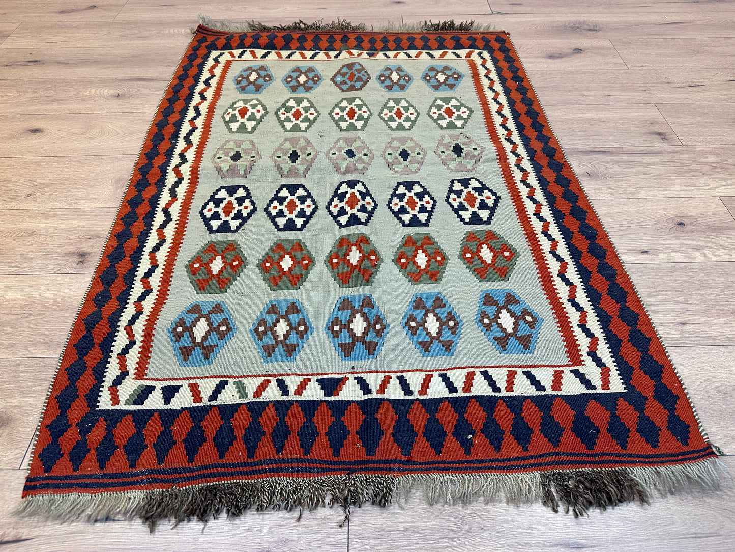 Erleben Sie die Faszination der persischen Teppichkunst mit diesem einzigartigen Gaschgai Kelim. Bestellen Sie noch heute und lassen Sie sich von der zeitlosen Schönheit dieses Kunstwerks begeistern, das nicht nur den Raum schmückt, sondern auch eine Geschichte der Handwerkskunst und Tradition erzählt.