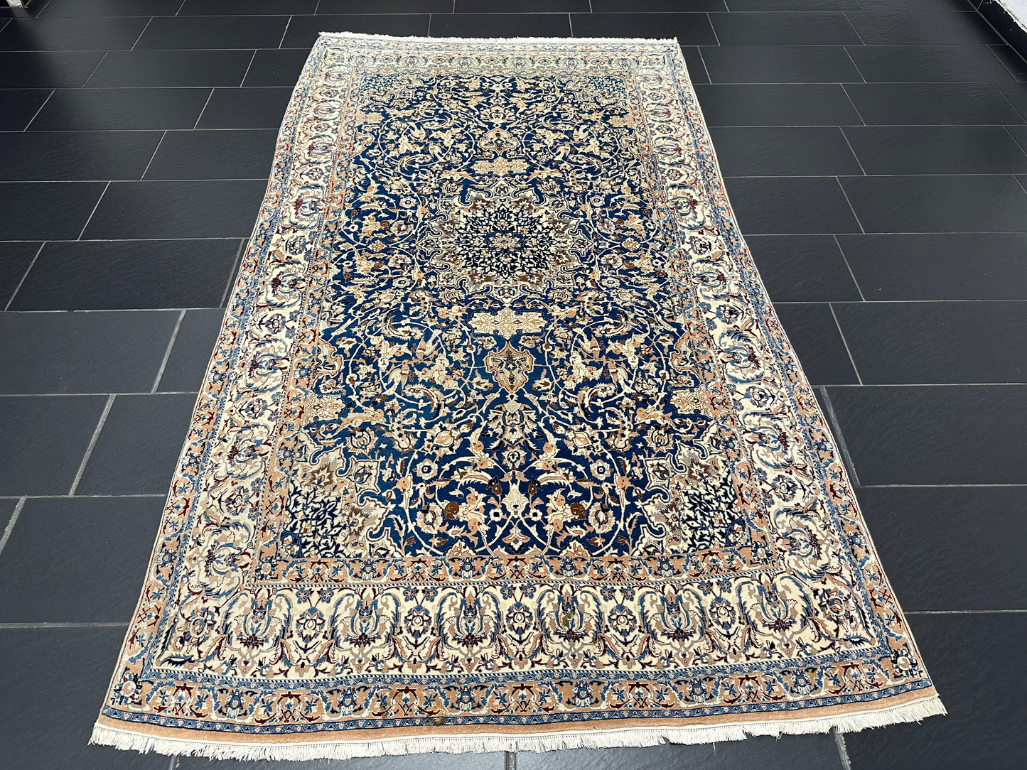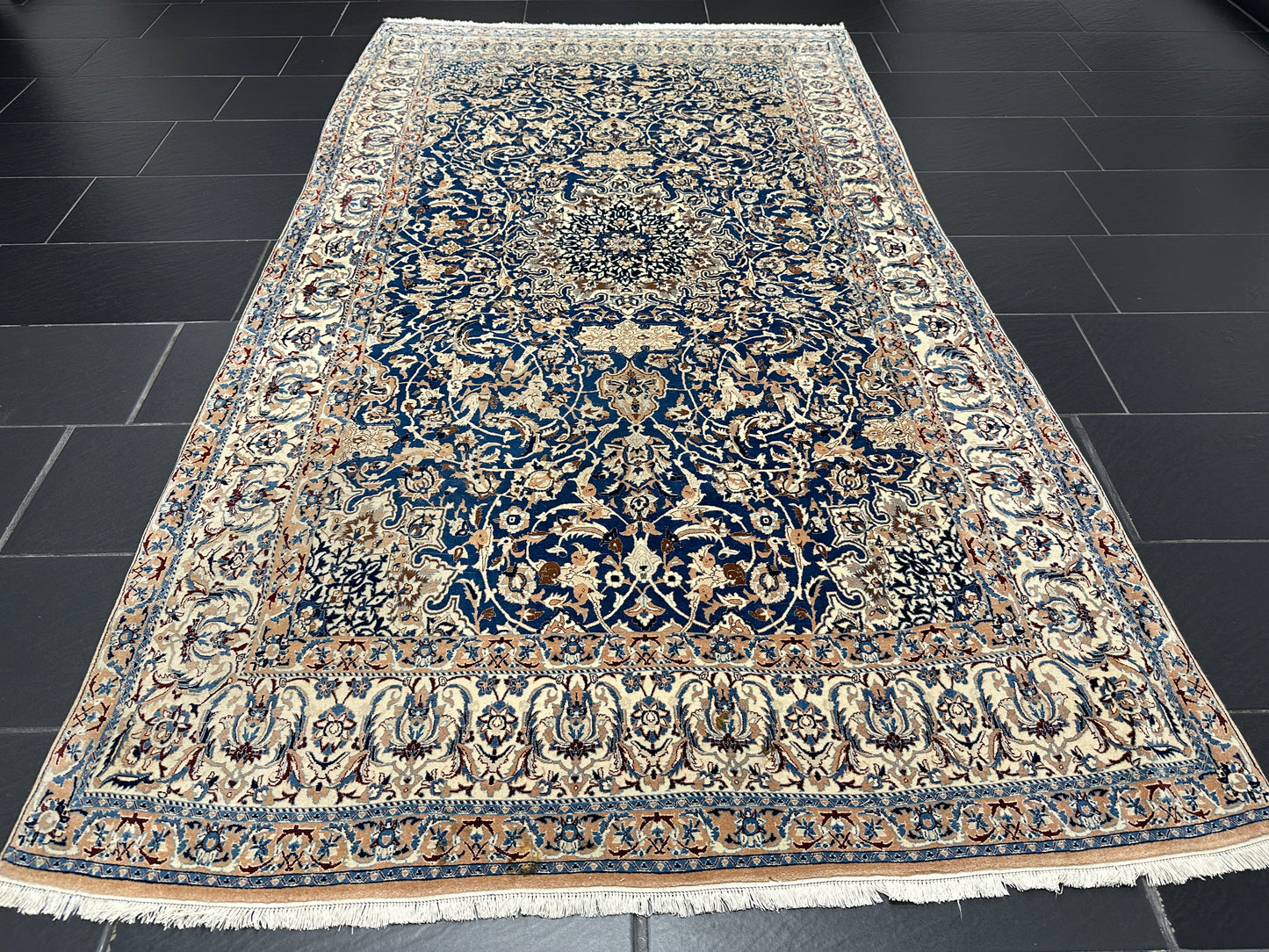 Sichern Sie sich heute diesen eindrucksvollen handgeknüpften Perserteppich aus Nain mit Kork auf Seide in gutem, gebrauchtem Zustand und verleihen Sie Ihrem Zuhause eine Prise orientalischer Raffinesse. Bestellen Sie jetzt, um die Schönheit und den Charme dieses Teppichs zu erleben.