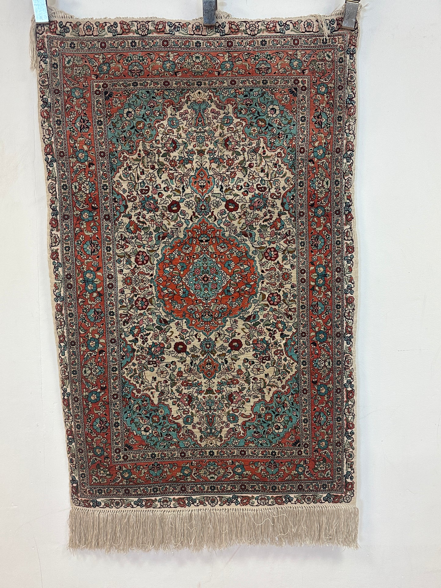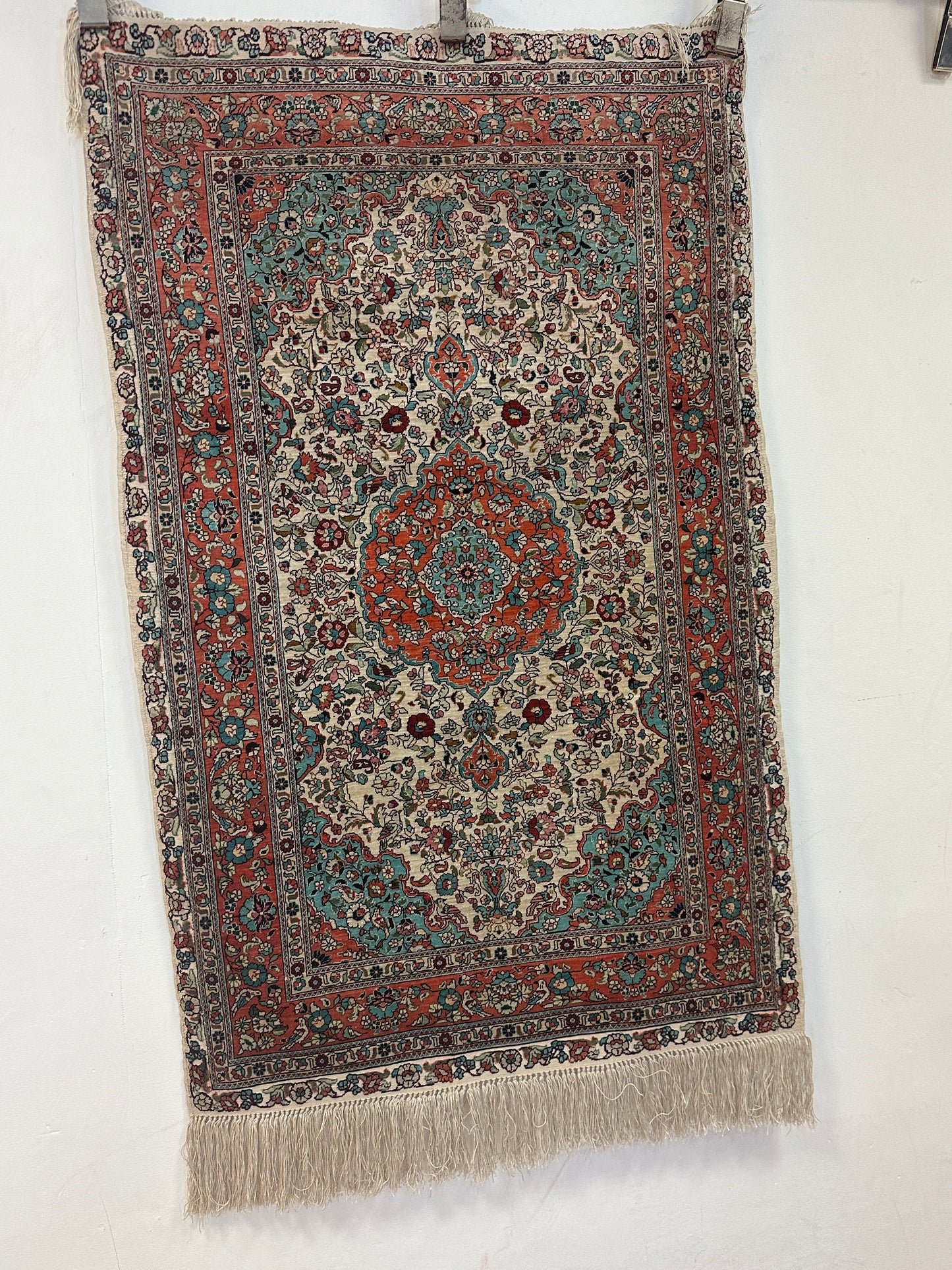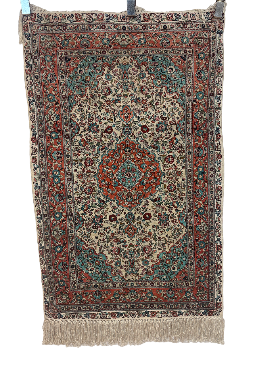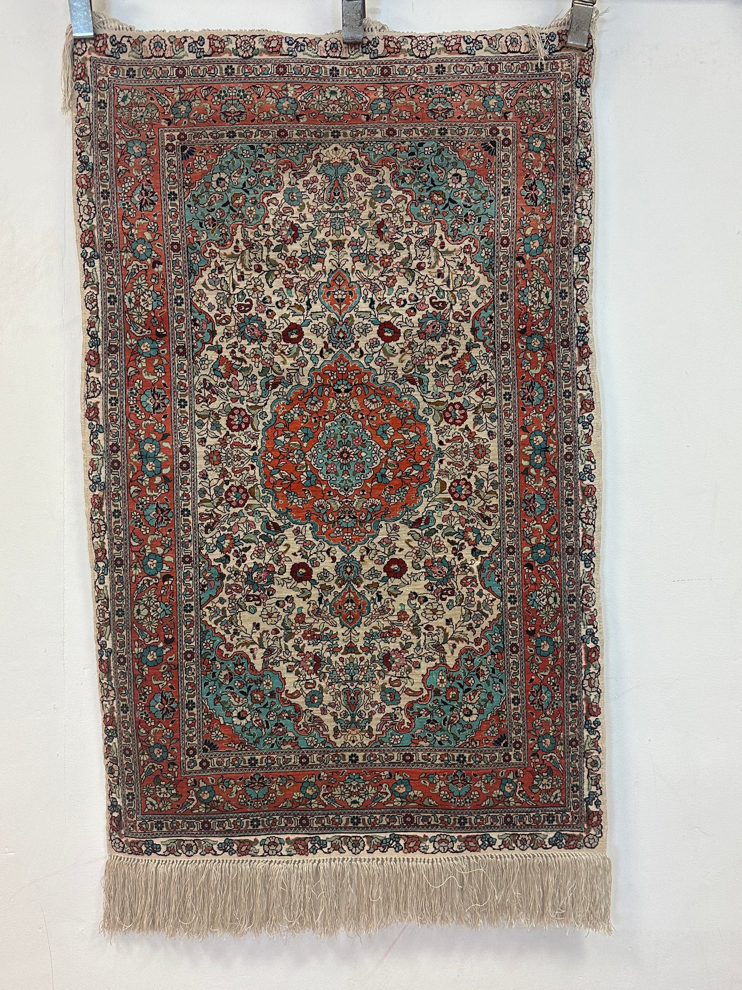• Seidenmaterial: Die Verwendung von Seide in der Herstellung verleiht dem Teppich einen seidigen Glanz, eine luxuriöse Textur und eine bemerkenswerte Haltbarkeit.