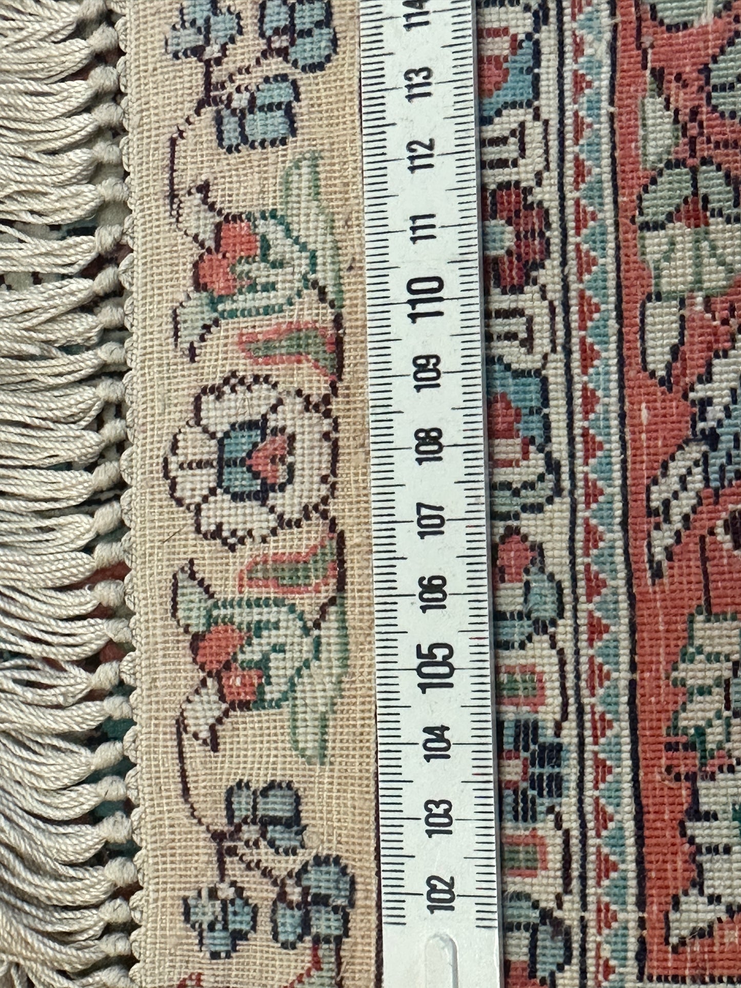 • Zustand "gut": Trotz seines Alters weist der Teppich nur minimale Gebrauchsspuren auf und ist frei von größeren Mängeln, was seine Qualität und Langlebigkeit unterstreicht.