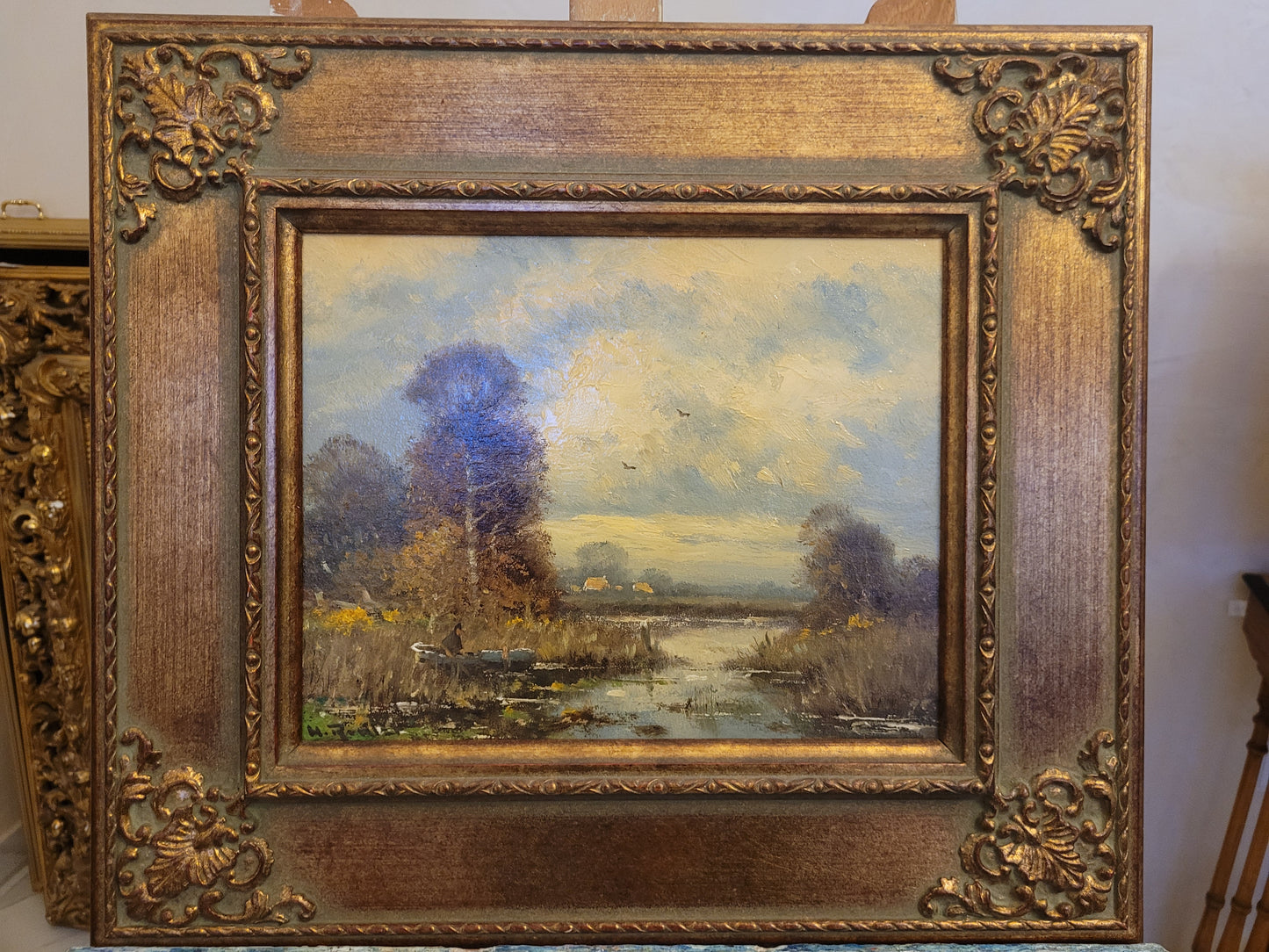 Die harmonische Komposition und die sorgfältige Farbwahl lassen die Natur in ihrer friedlichen Stille erstrahlen. Die Maße mit Rahmen von 43x49cm und ohne Rahmen von 22x29cm machen dieses Gemälde zu einem eleganten und doch unaufdringlichen Kunstwerk, das sich ideal in verschiedenste Wohn- oder Arbeitsräume einfügt.
