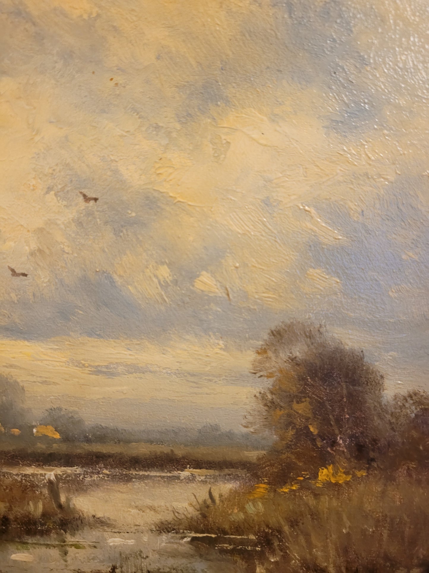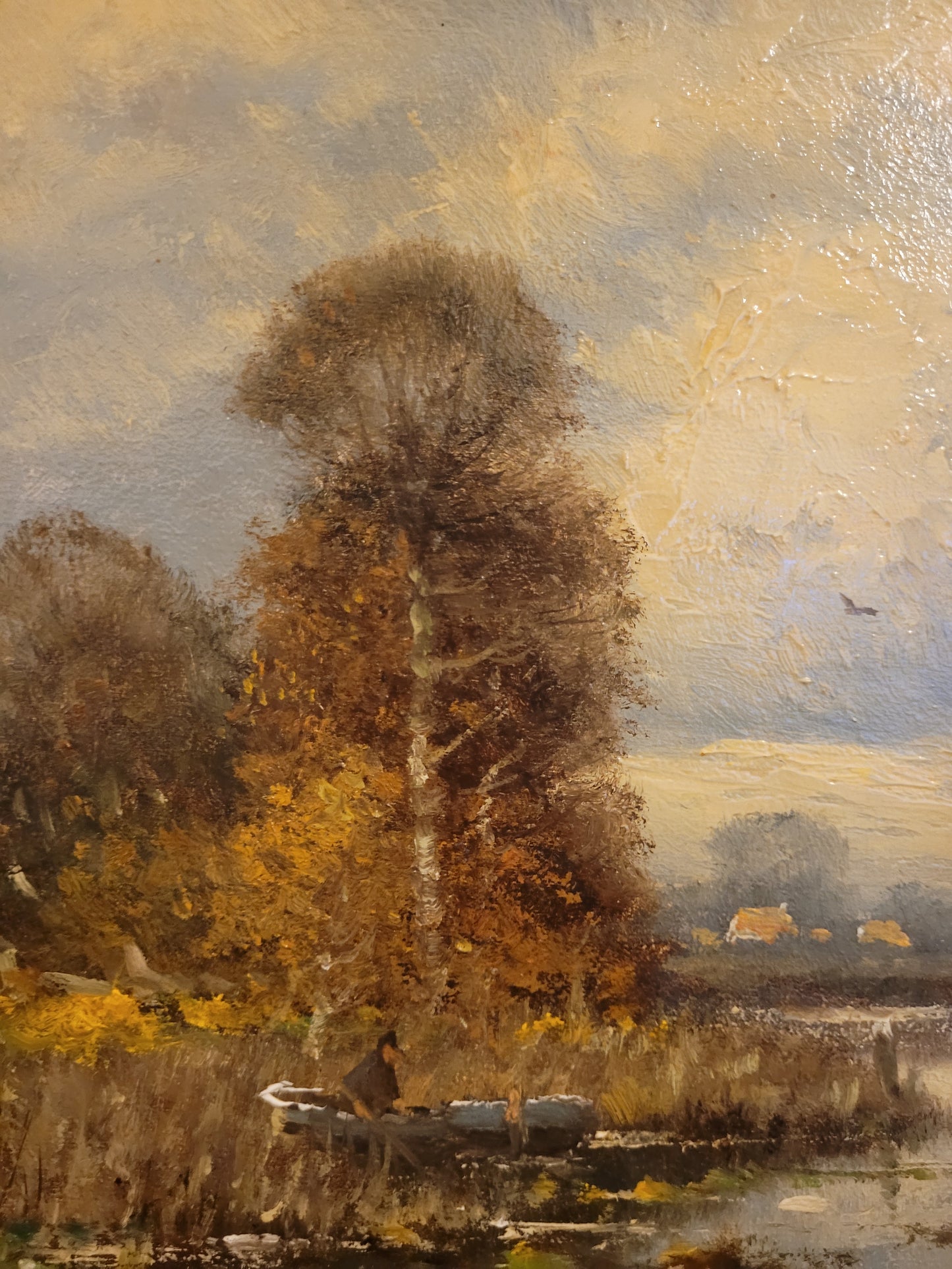 Dieses bezaubernde Ölgemälde von Helmut Reuter zeigt eine idyllische Landschaft, die die Ruhe und Schönheit der Natur in all ihrer Pracht einfängt. Die meisterhafte Technik der Ölmalerei auf Holz verleiht dem Bild eine besondere Tiefe und Struktur, wodurch die Details der Landschaft besonders lebendig wirken.