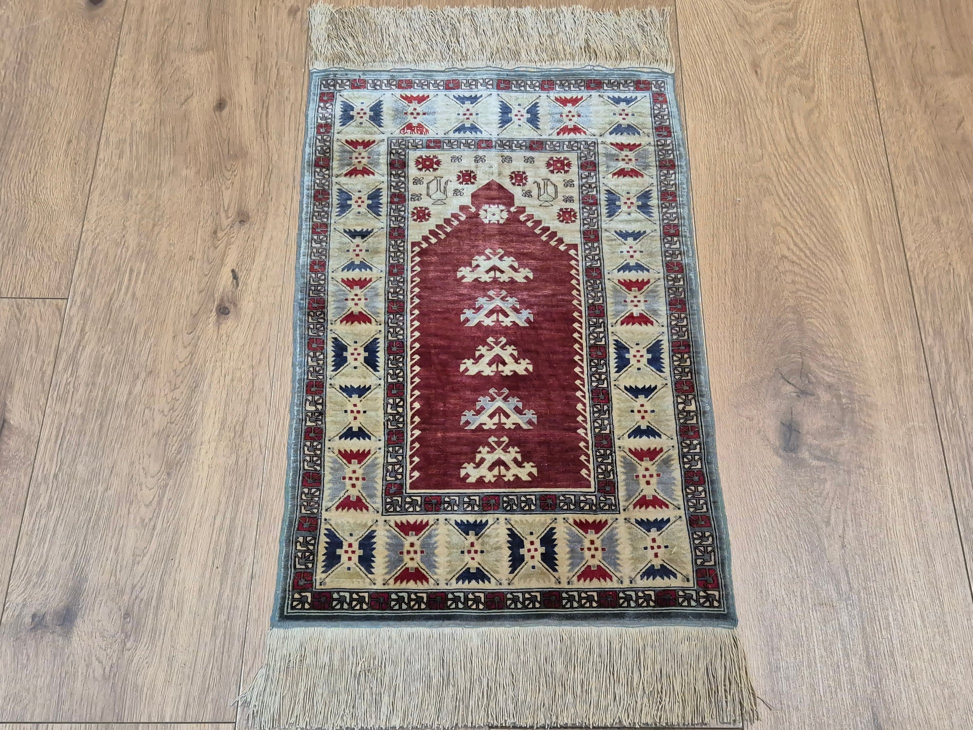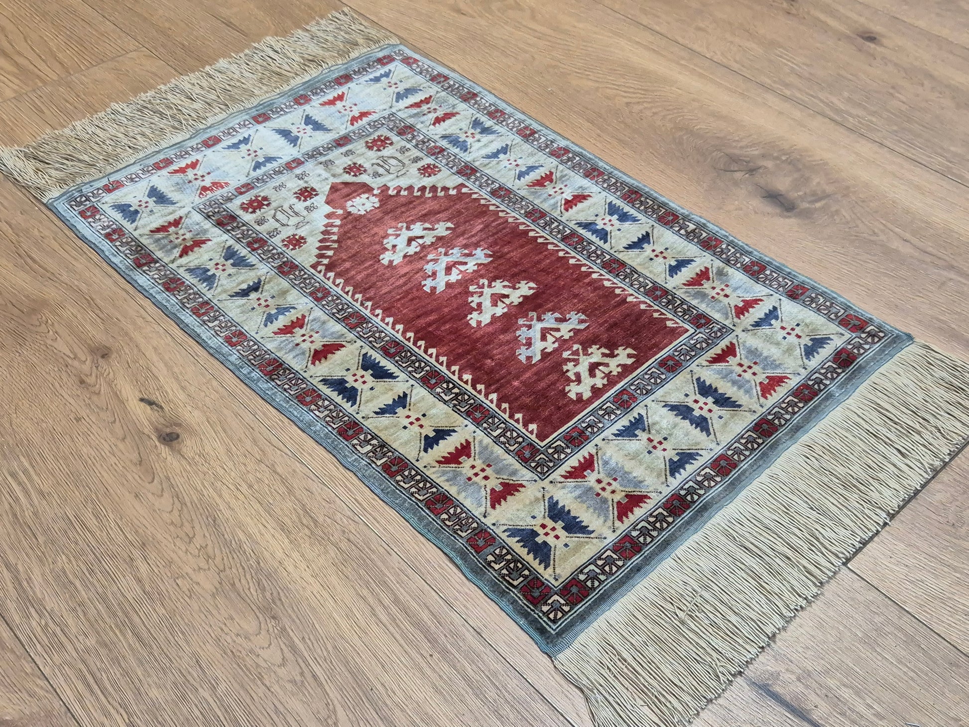 Hereke Seidenteppich Gebetsteppich geometrisches Design fein handgeknüpft