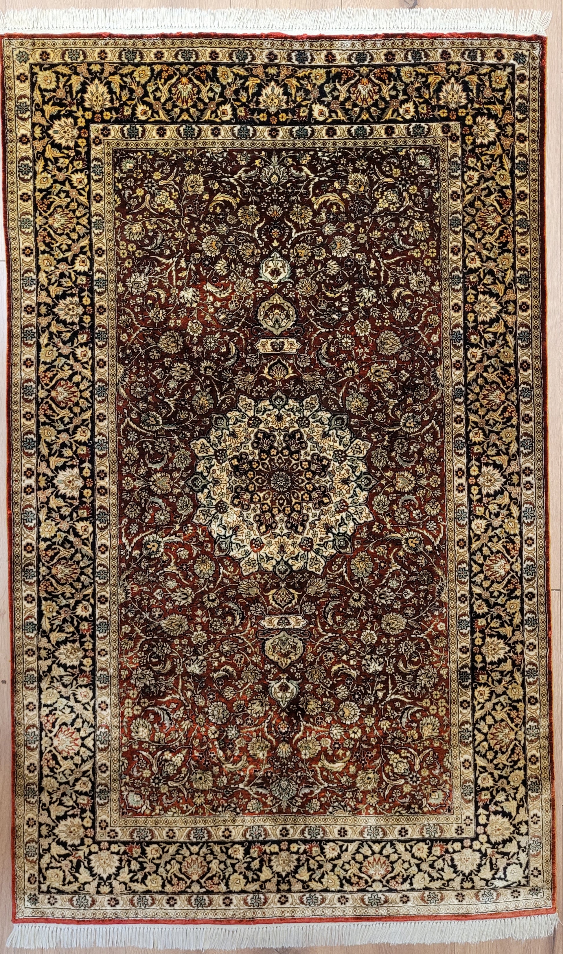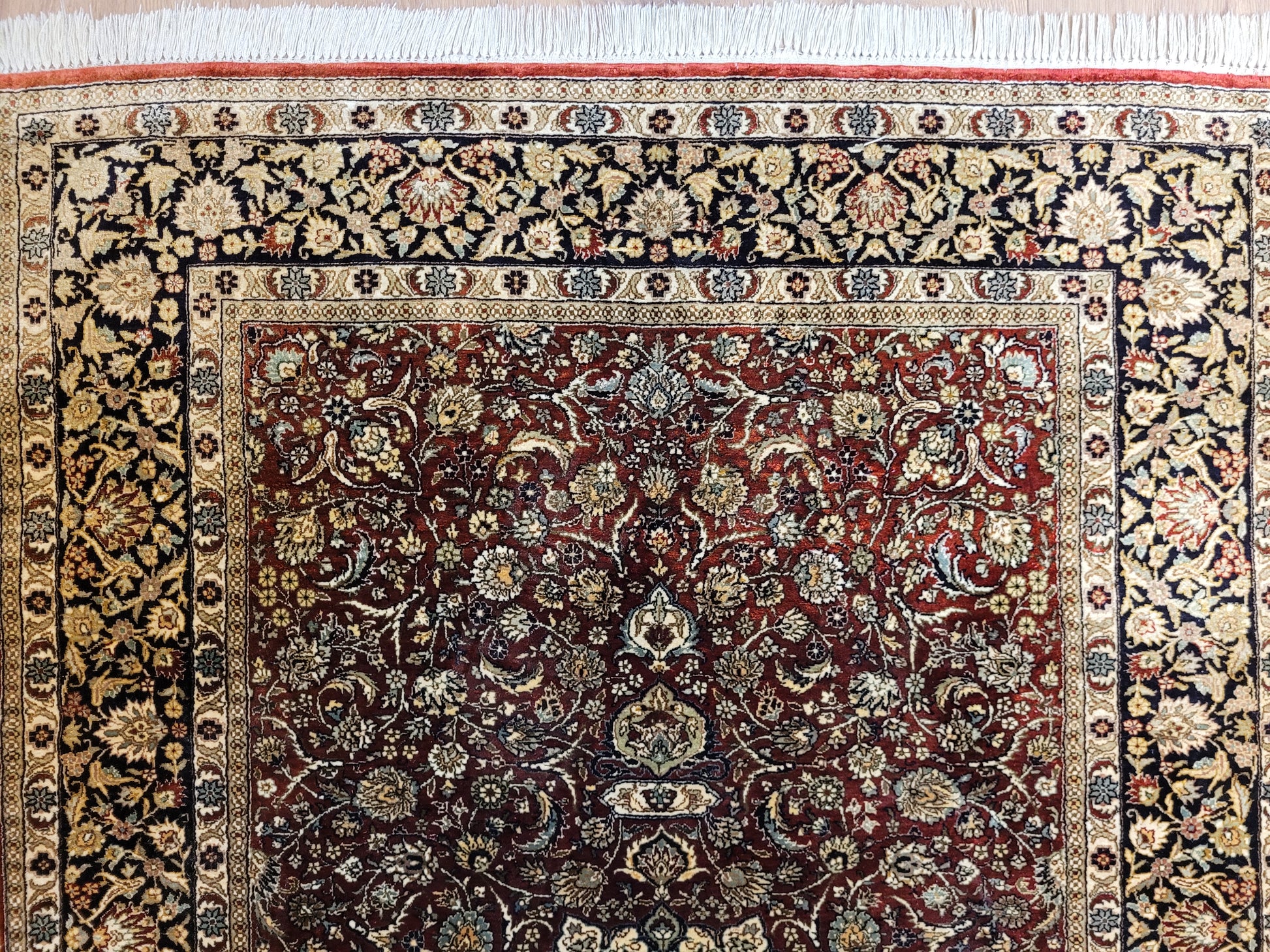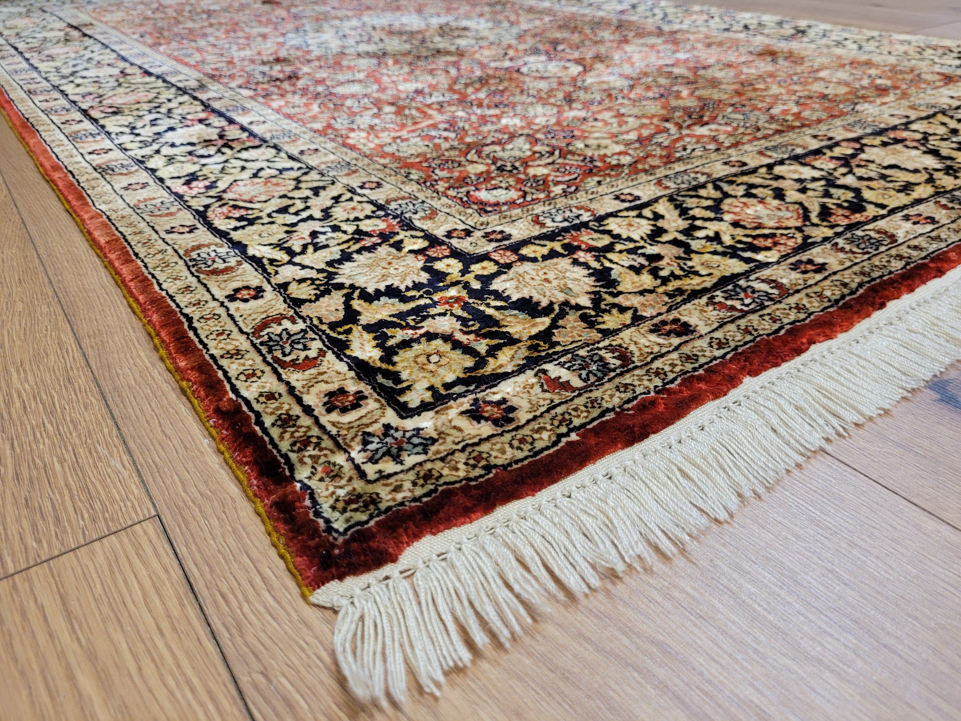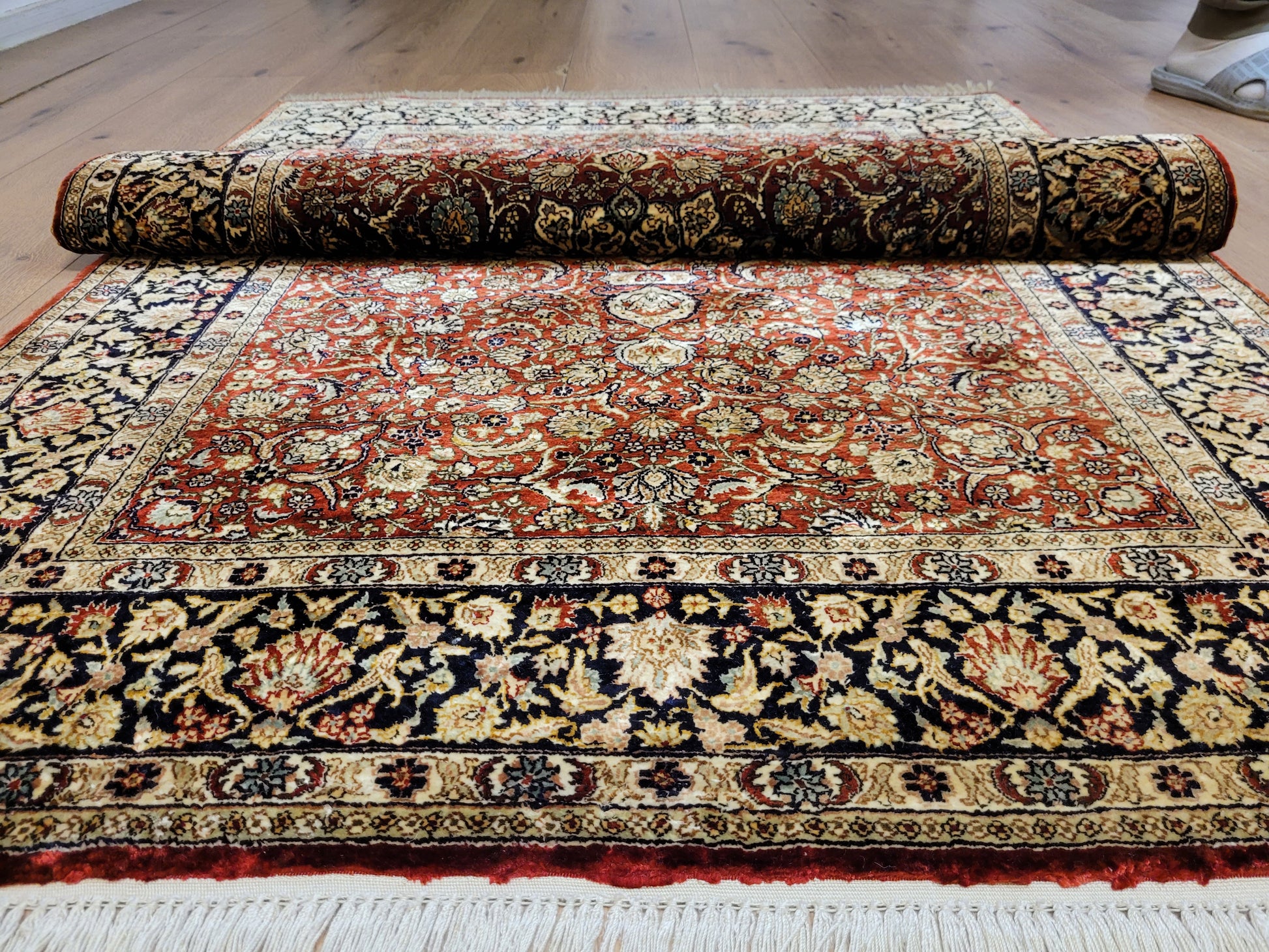 Hereke Teppich Seide auf Seide Medaillon feine Knüpfung