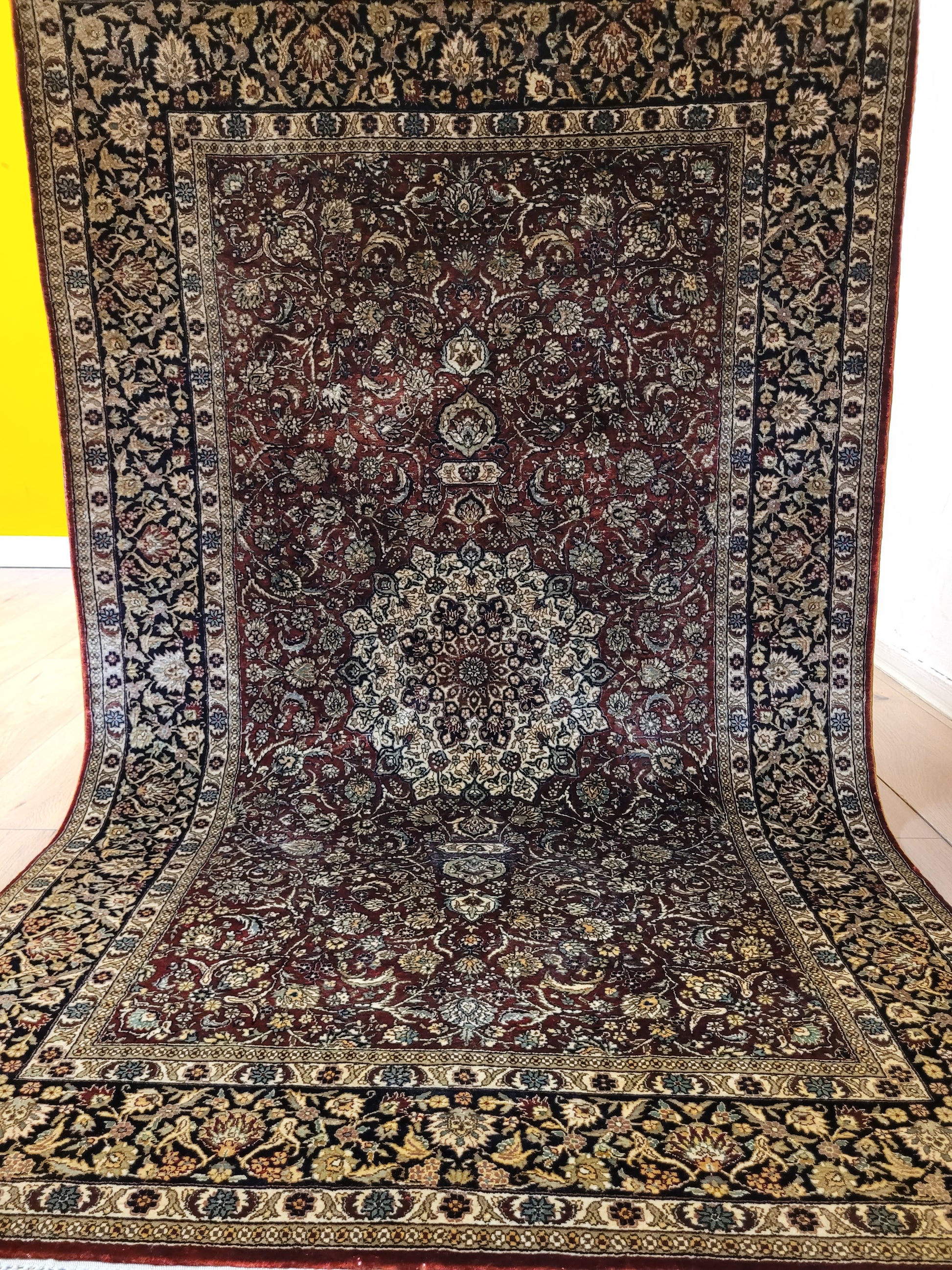 • Verarbeitung: höchste Präzision in der Knüpfung, edler Glanz der Seide, feine Farbnuancen mit Tiefe und Brillanz